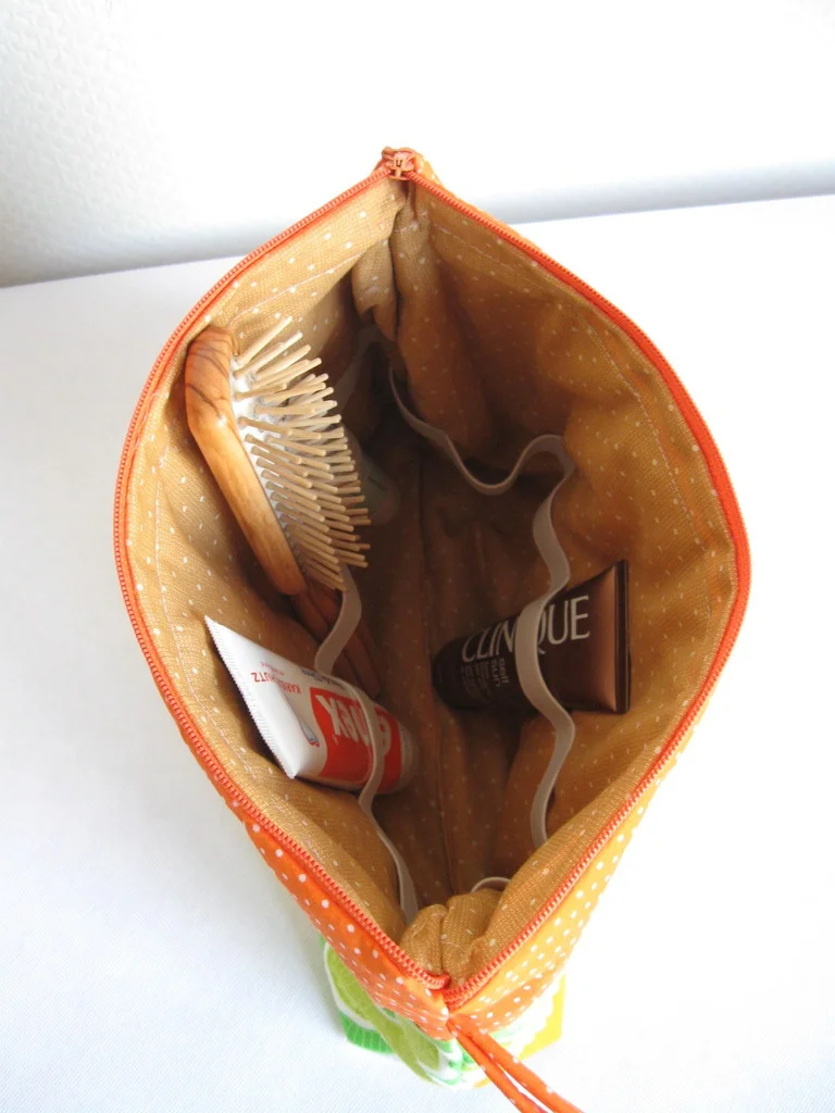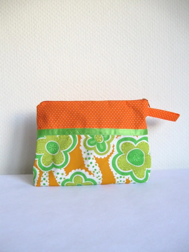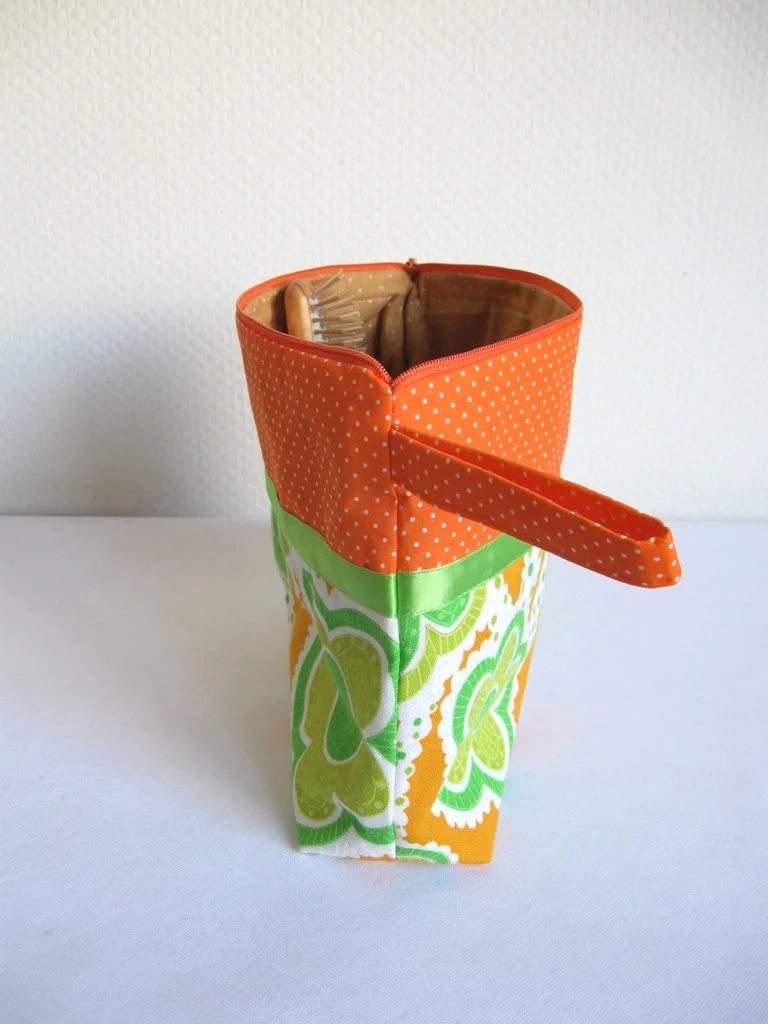 Trendiger Kulturbeutel aus original 70er-Jahre-Stoff und modernen Geweben.