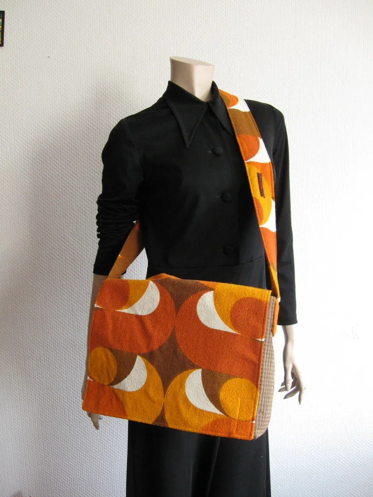 Trendige Umhängetasche aus original 70er-Jahre-Stoff in zeittypischem Design