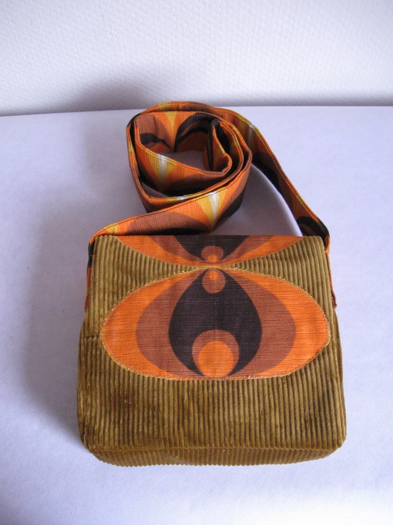 Trendige Umhängetasche aus original 70er-Jahre-Stoff in zeittypischem Design