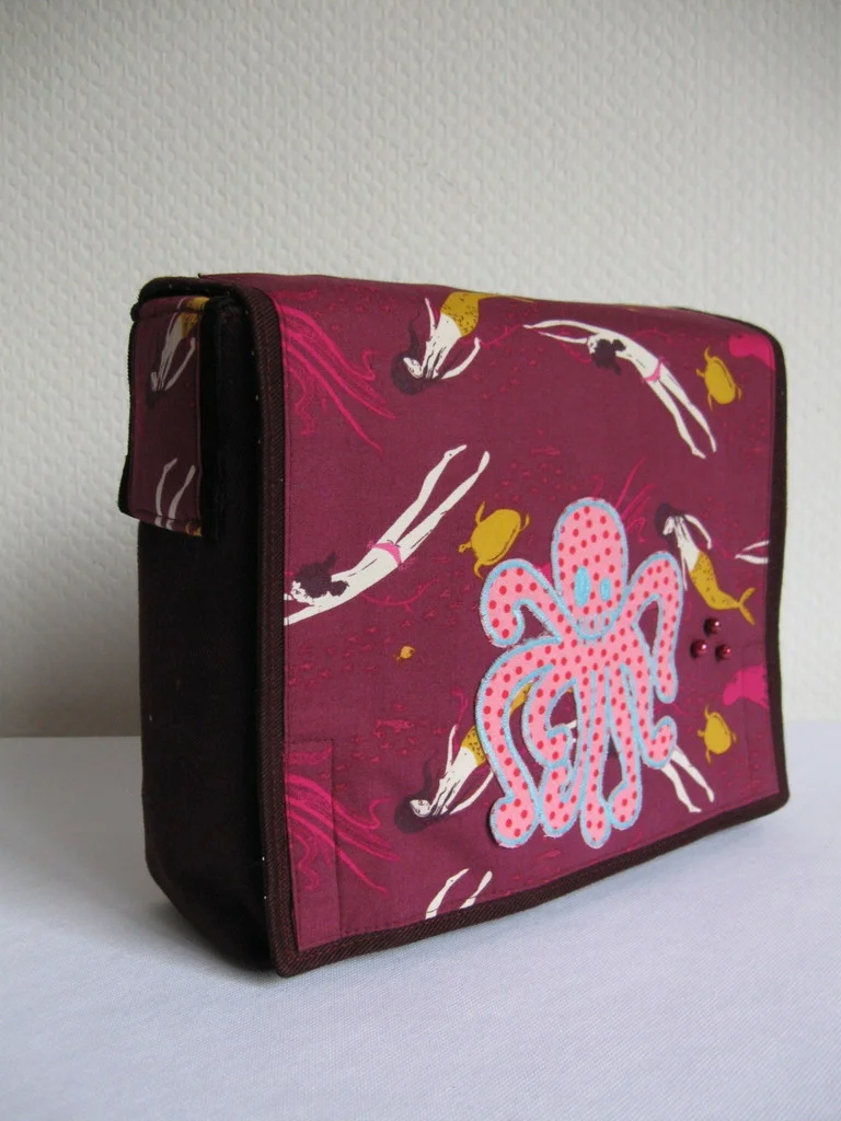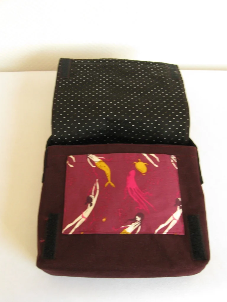 Die Tasche ist aus Baumwolle und hat hübsche Applikationen. Sie wird mit zwei Klettverschlüssen verschlossen.