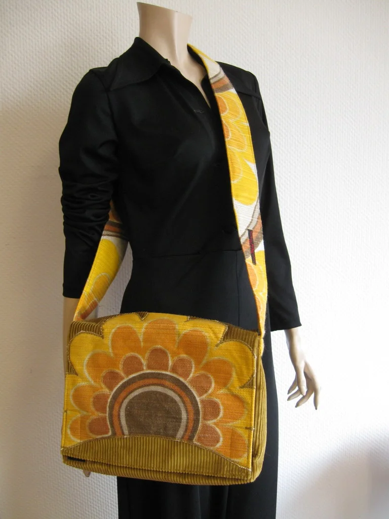 Trendige Umhängetasche aus original 70er-Jahre-Stoff in zeittypischem Design
