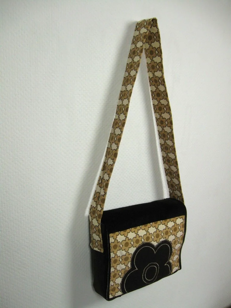 Trendige Umhängetasche aus original 70er-Jahre-Stoff in zeittypischem Design