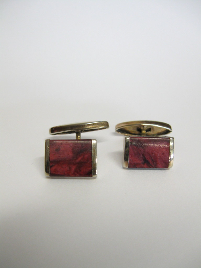 Echte Manschettenknöpfe aus den 30er Jahren mit einem bordeaux farbenen Einstatz