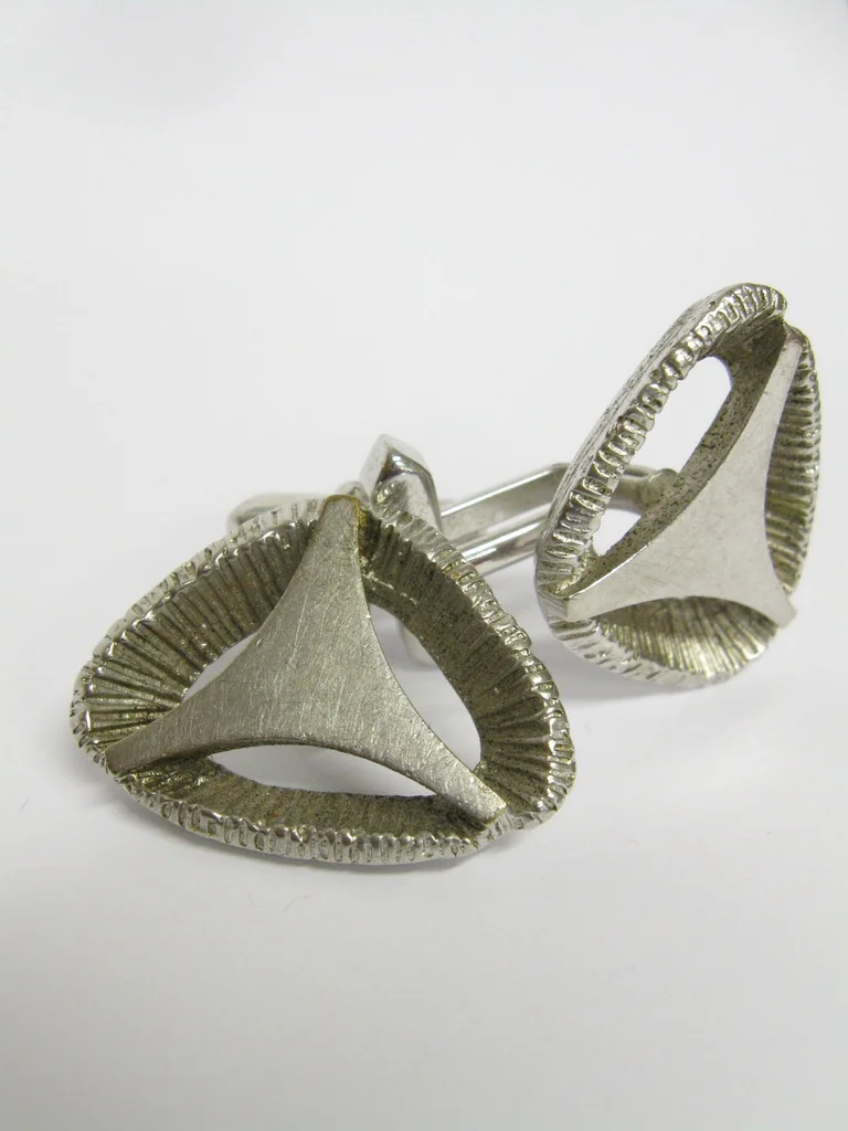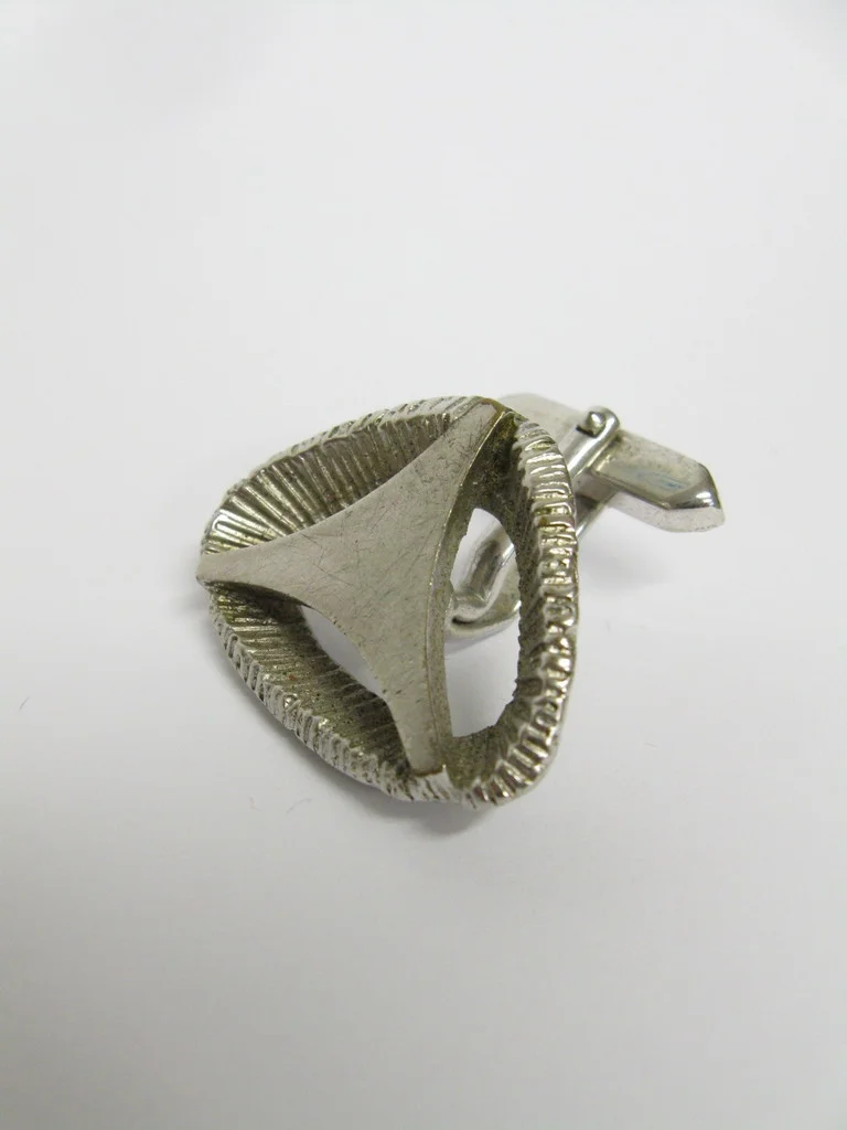 Die Knöpfe bestehen aus verchromtem Metall und haben ein zeittypisches Design. Die Oberfläche ist matt gebürstet, als Schließmechanik dient ein Schwenkbügel.