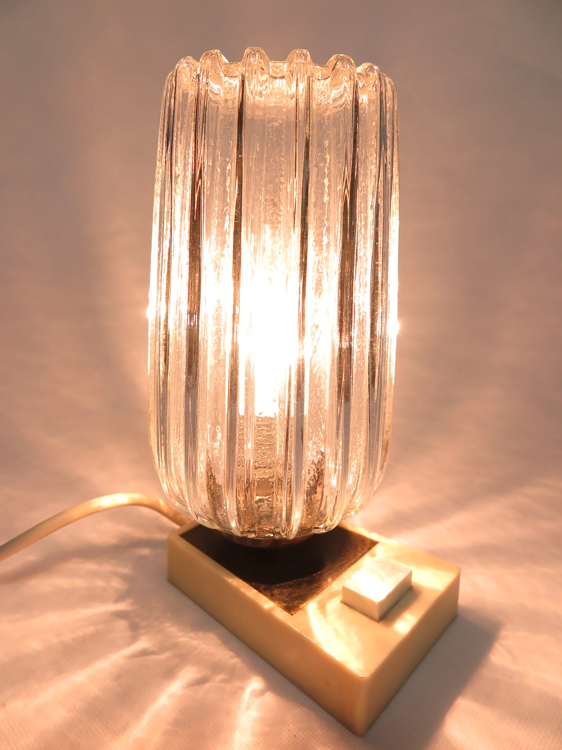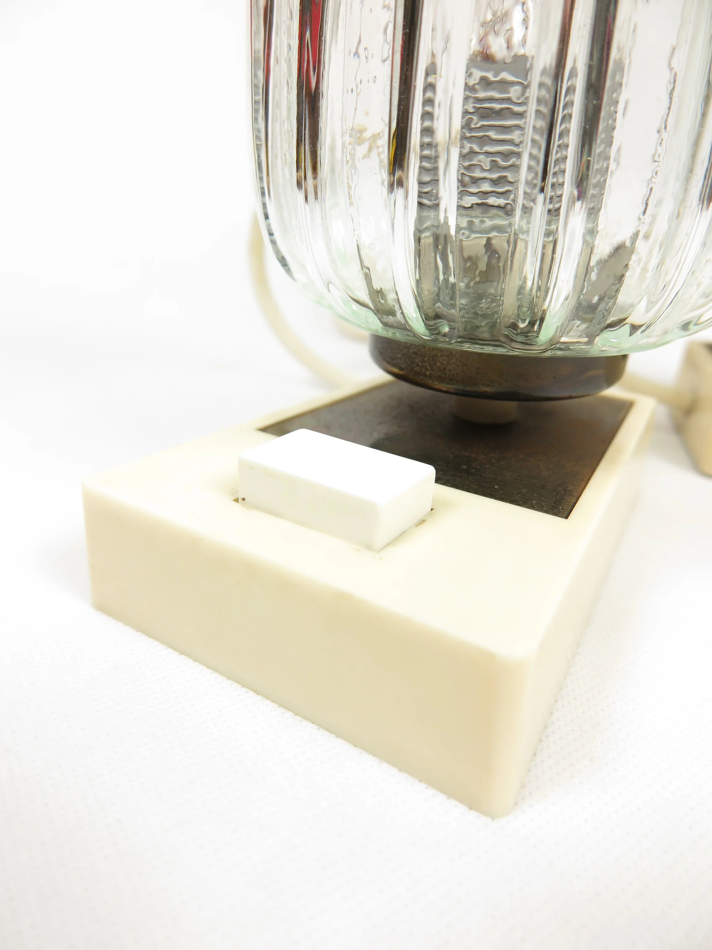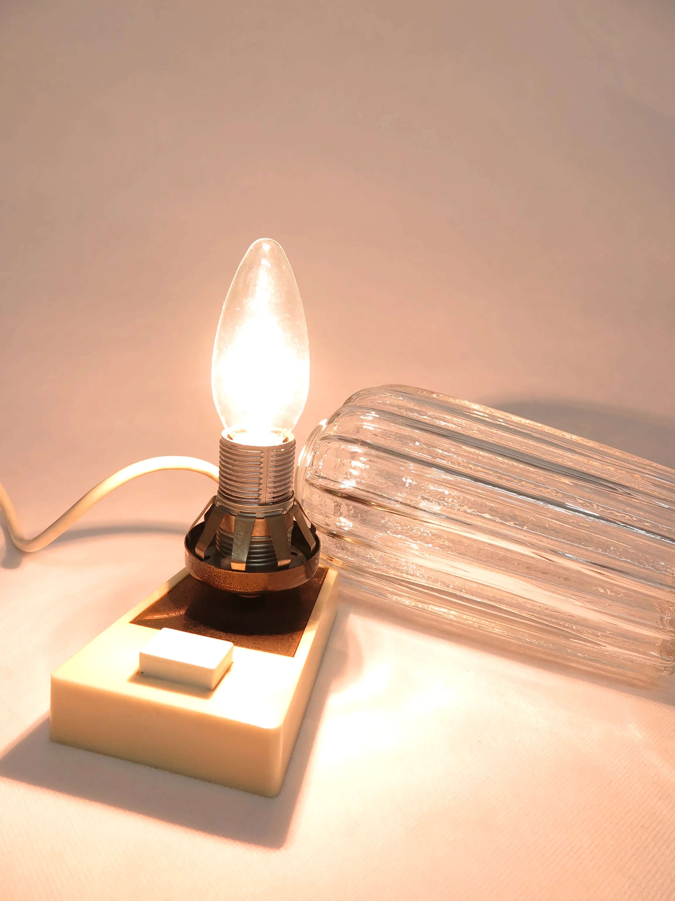 Diese süßen Lämpchen geben ein schönes und angenehmes Licht. Der geriffelte Glaslampenschirm steckt auf einem Kunststofffuß mit Metallplatte.Mit einem weißen Druckschalter wir die Lampe ein- und ausgeschaltet.