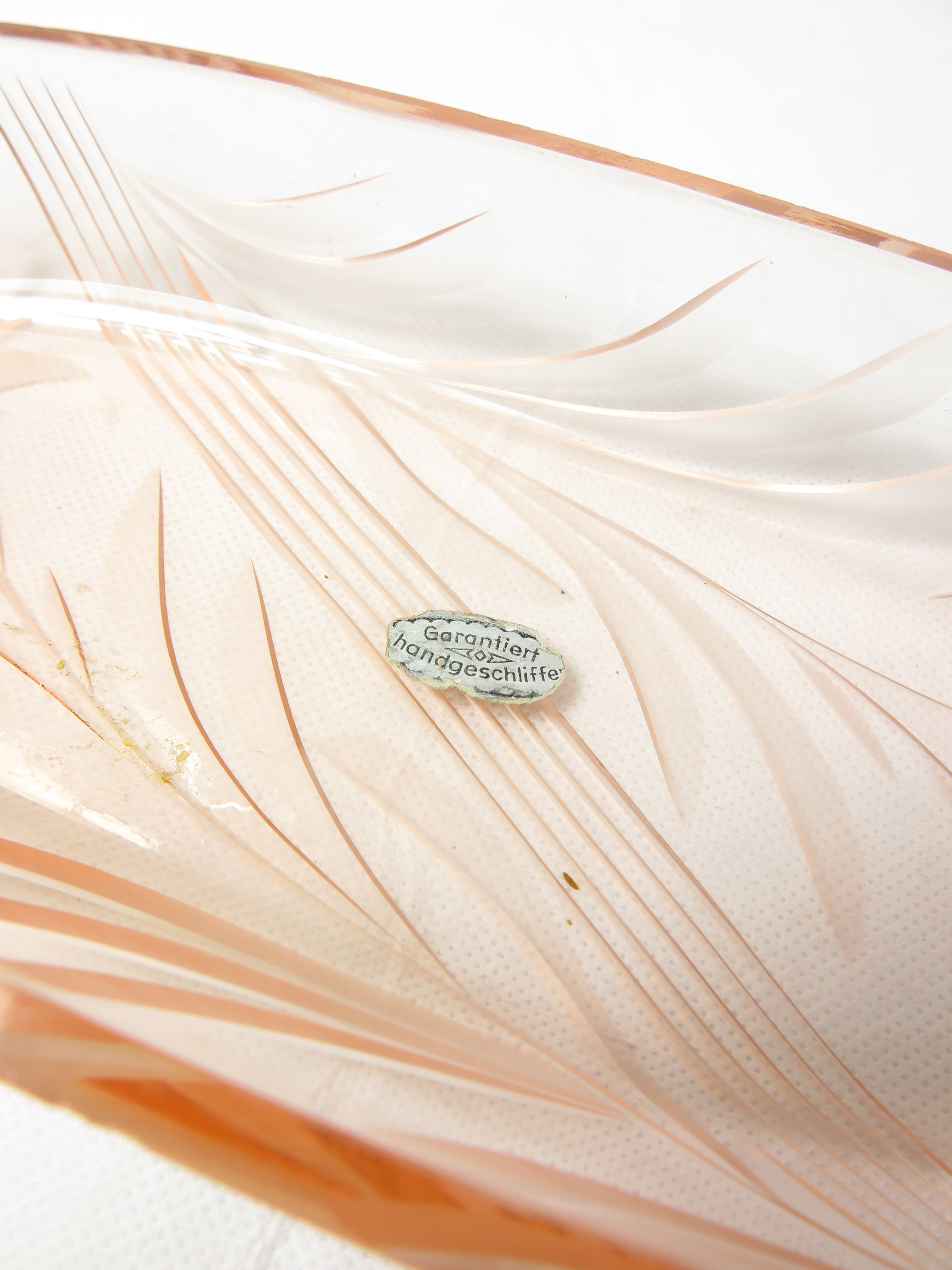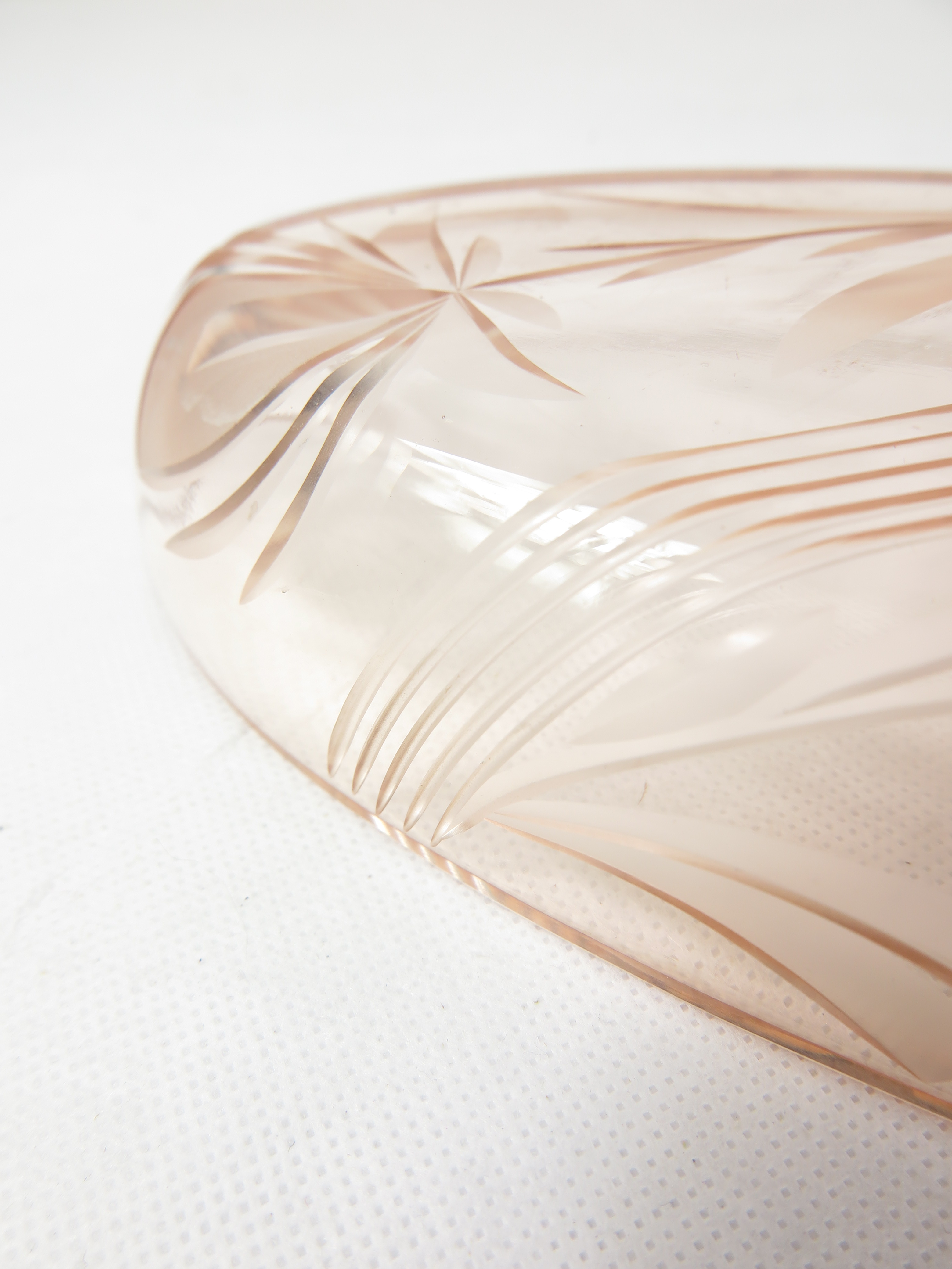 30er Kosmetik Schale Oval, rosa Rachglas geschliffen
