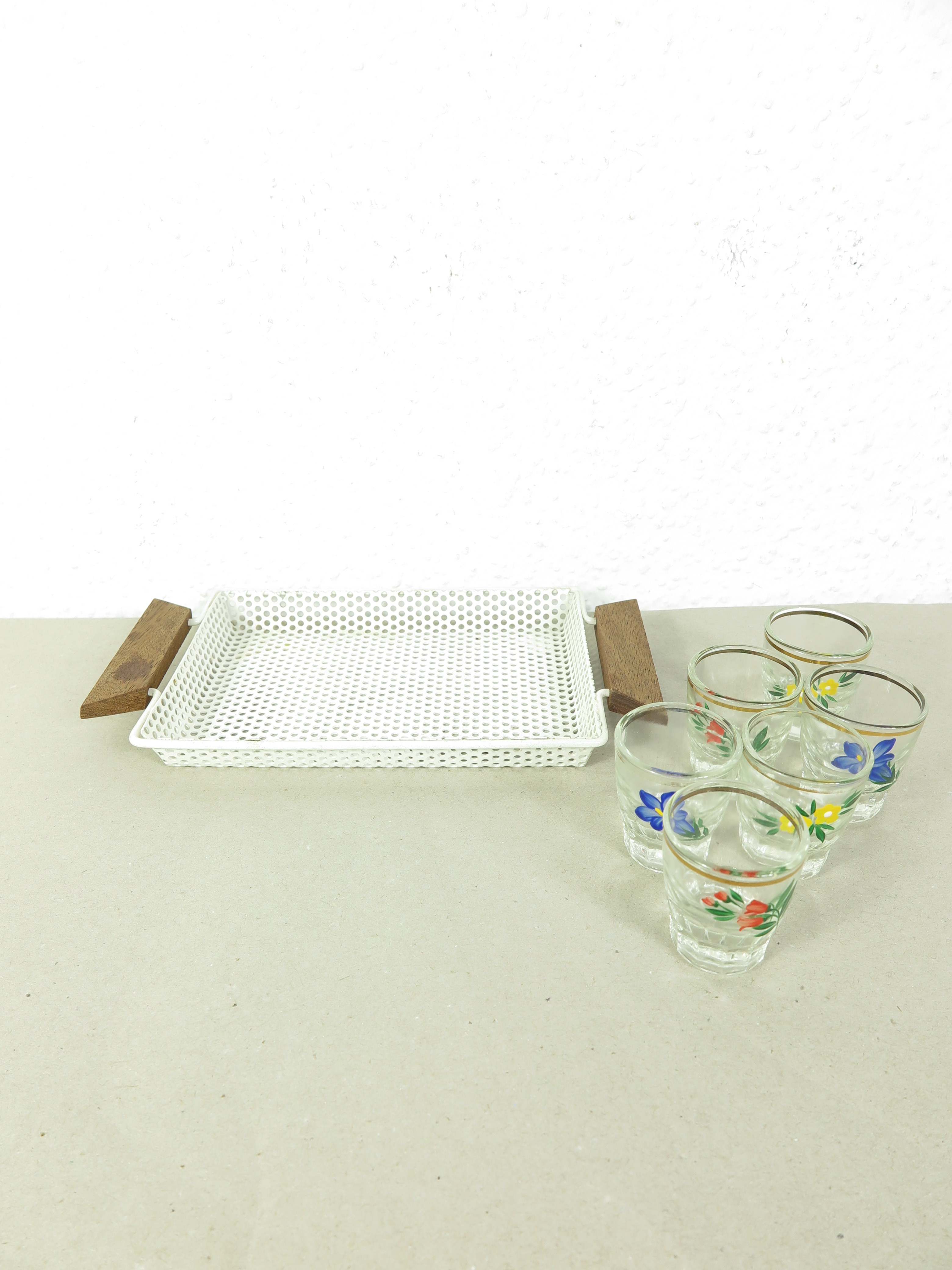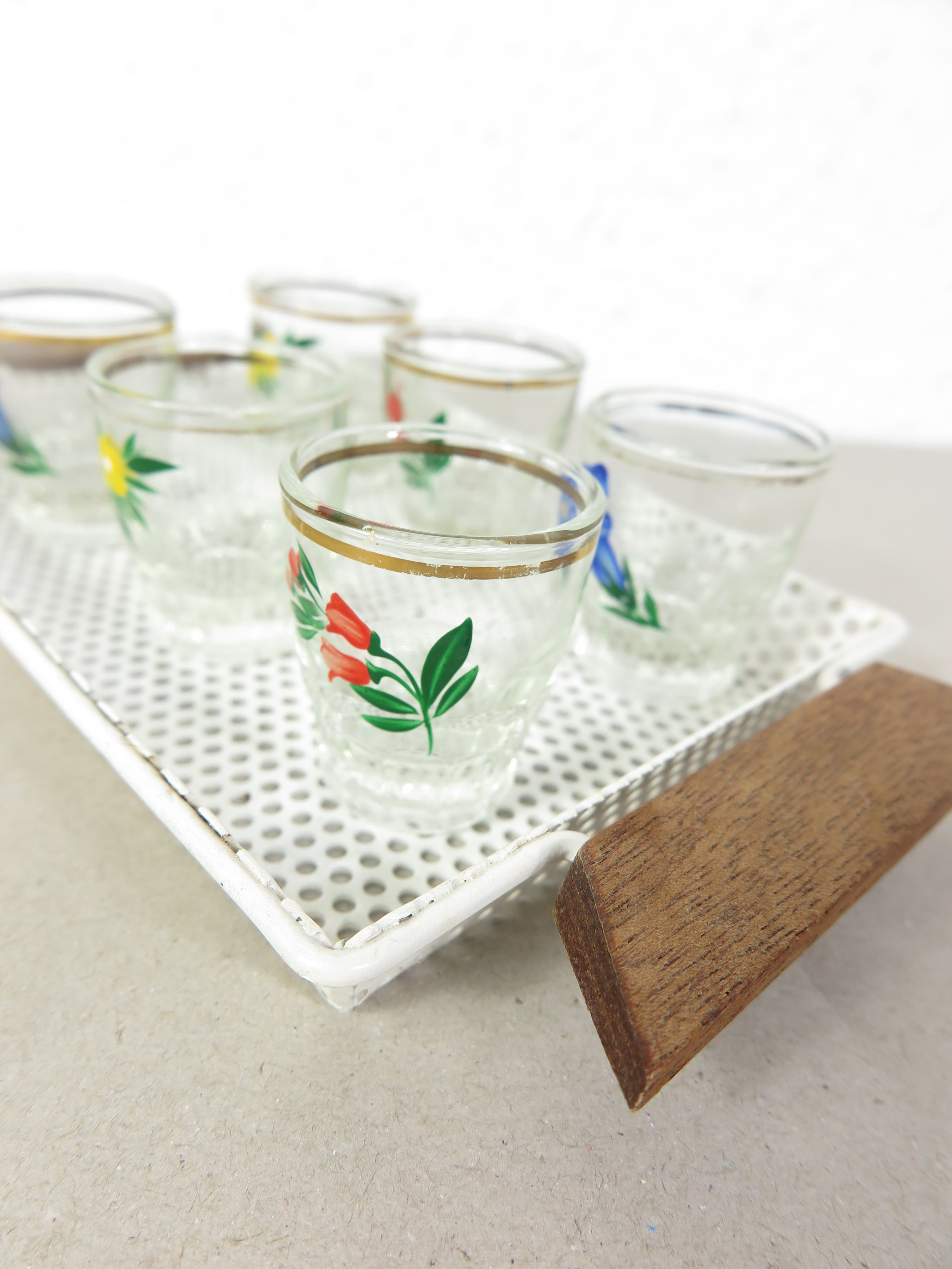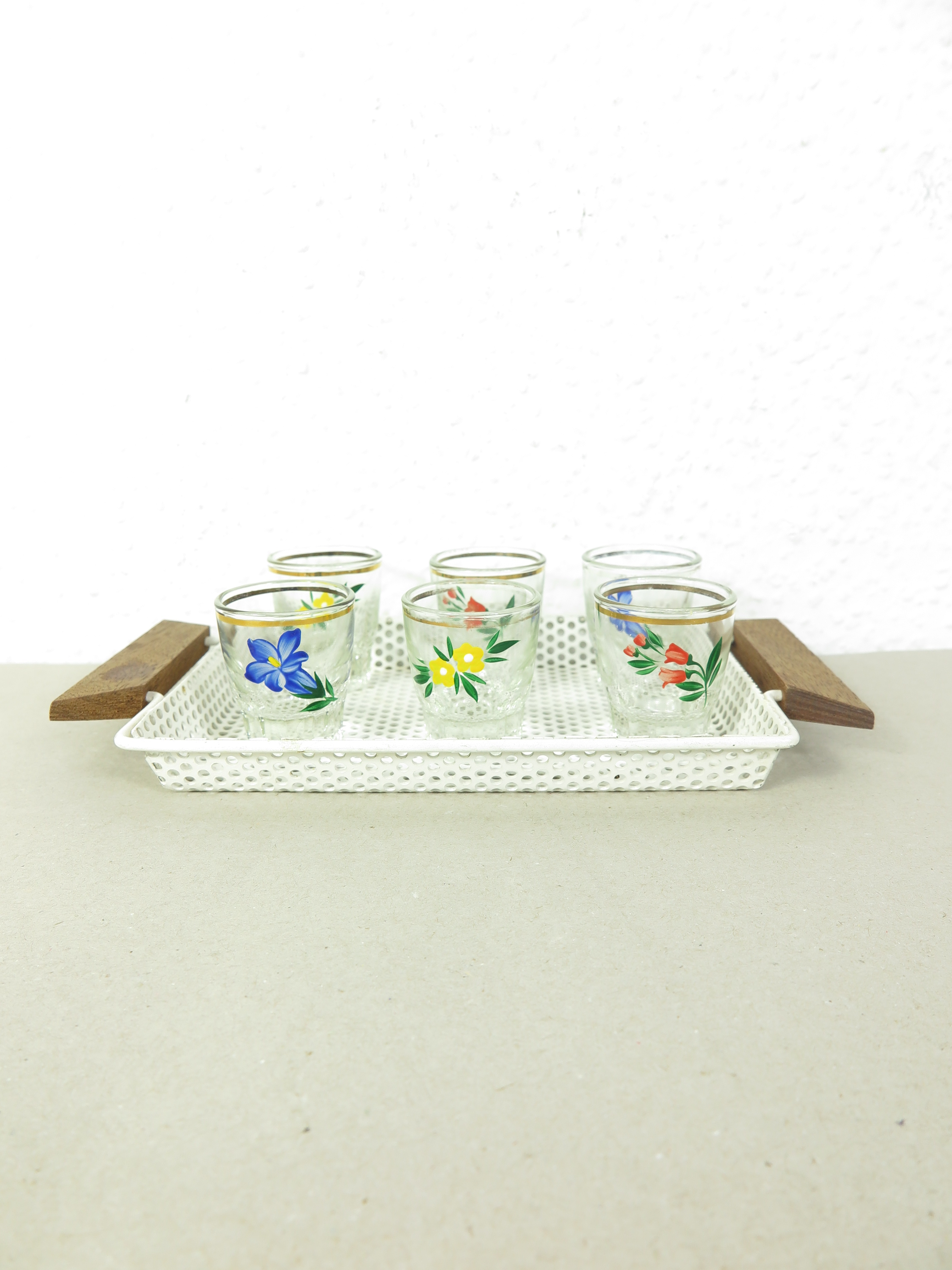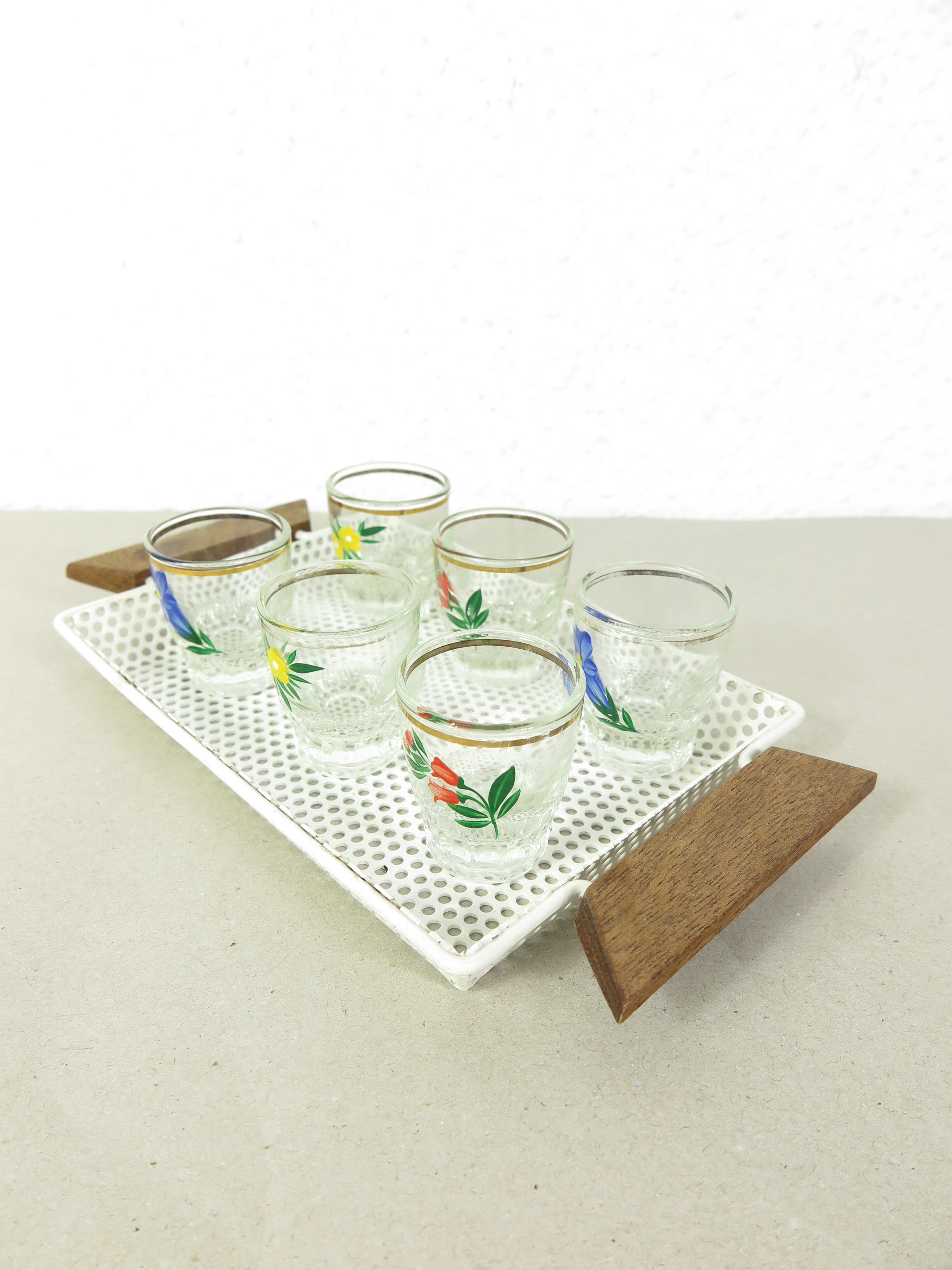 50er Schmapsgläser, Schnapsset mit Tablett, Alpen Optik