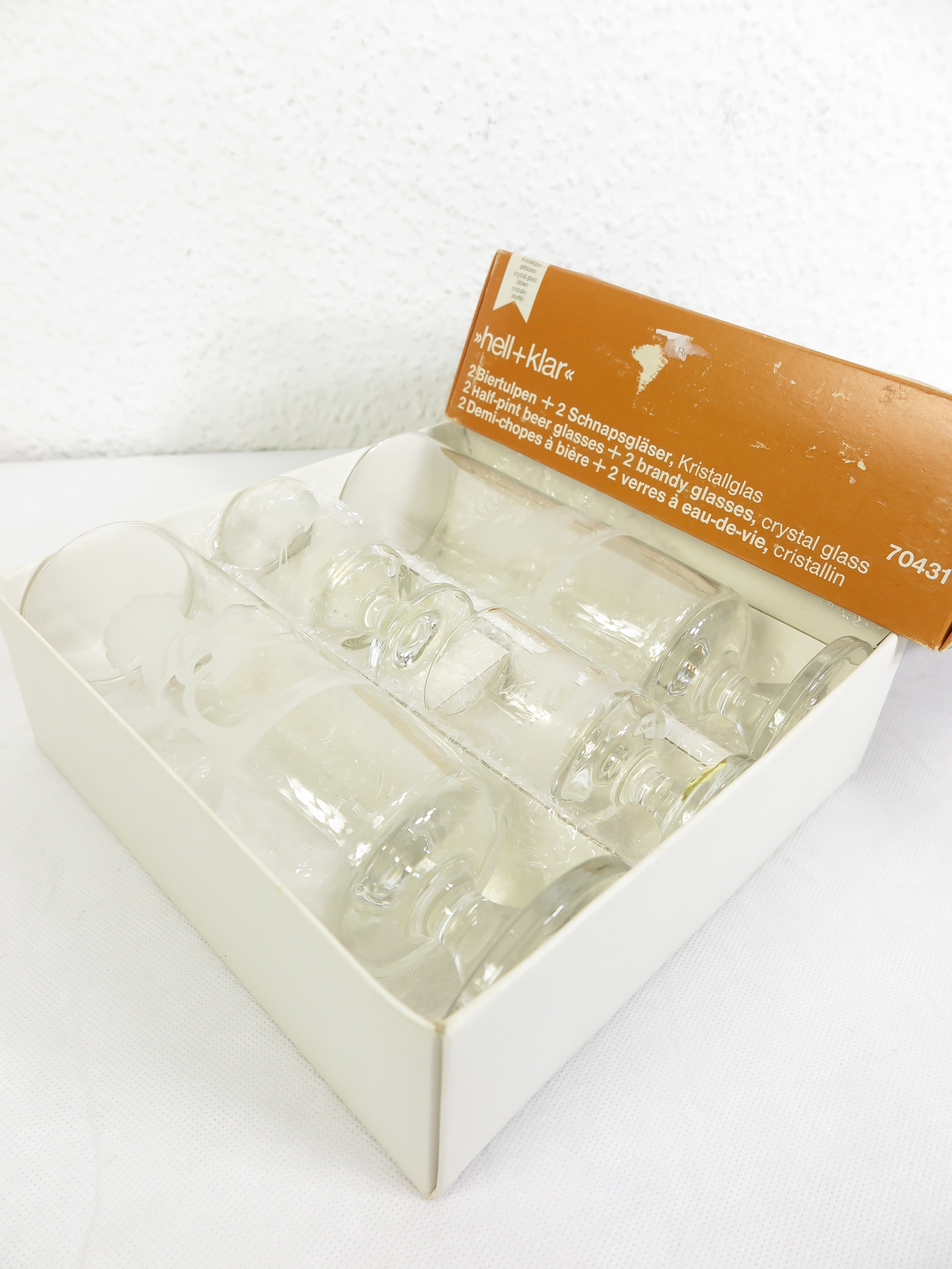 70er Kristall Bier + Schnapsglas, Jägeroptik Glas, Jagtmotive