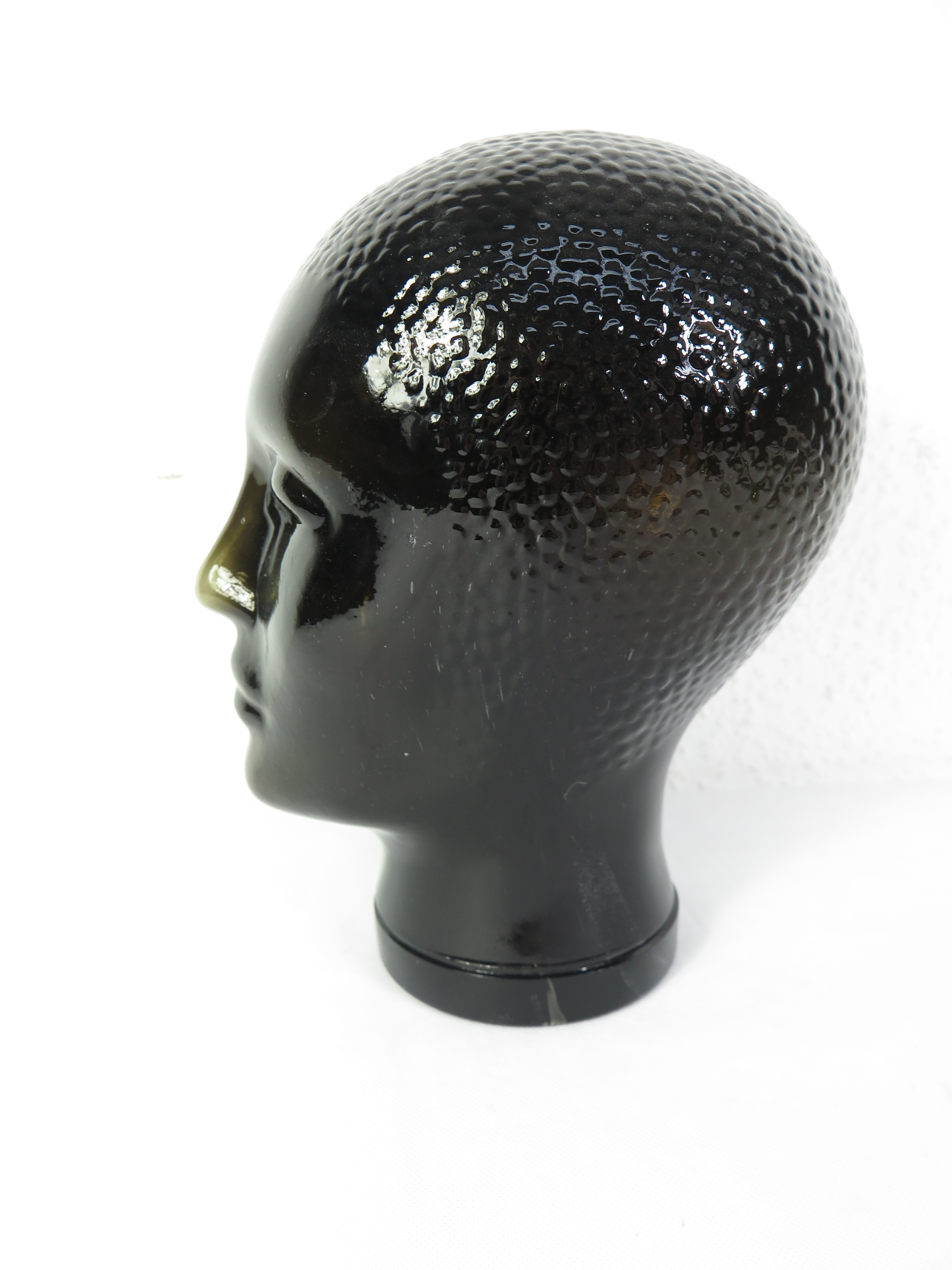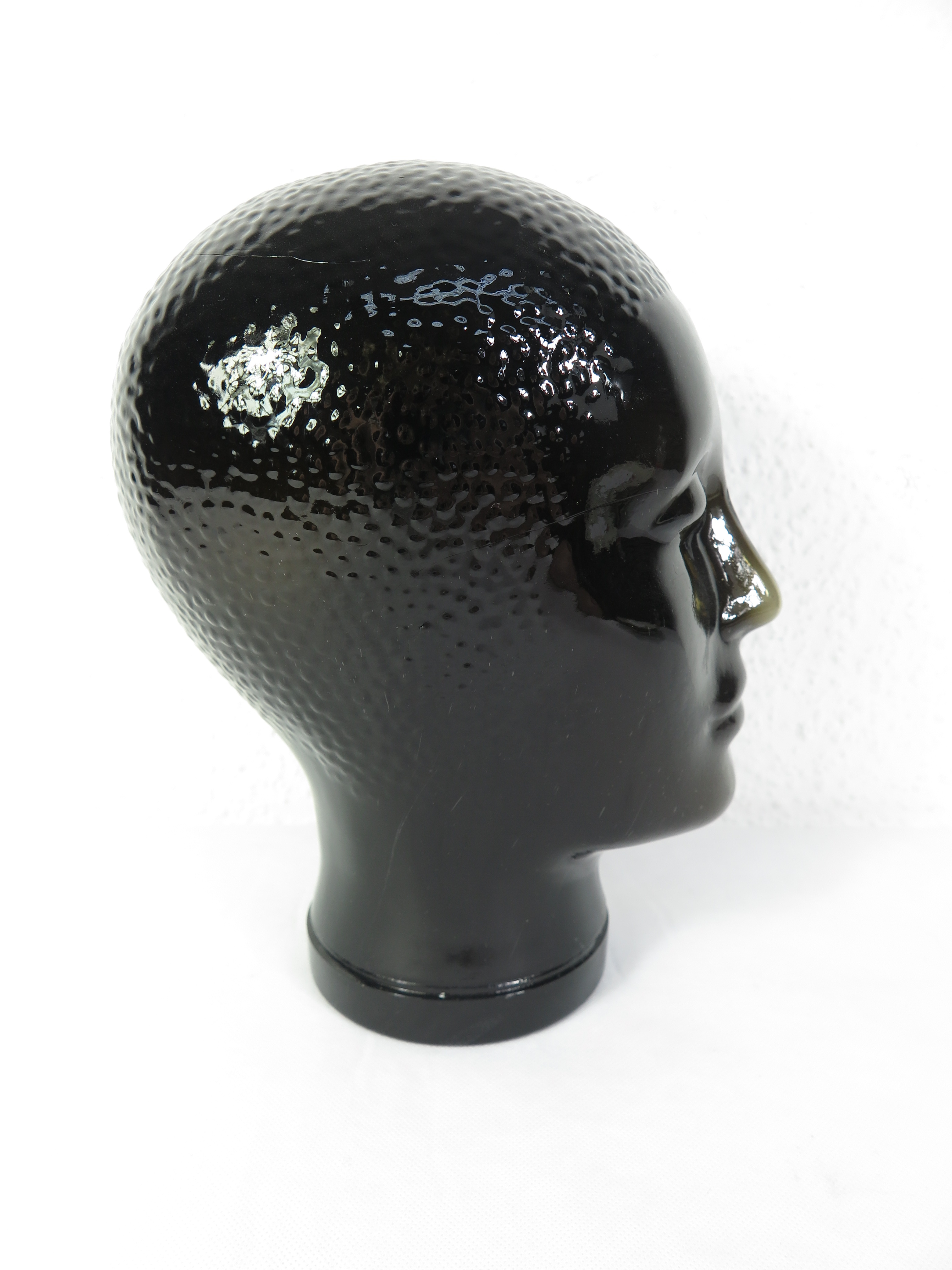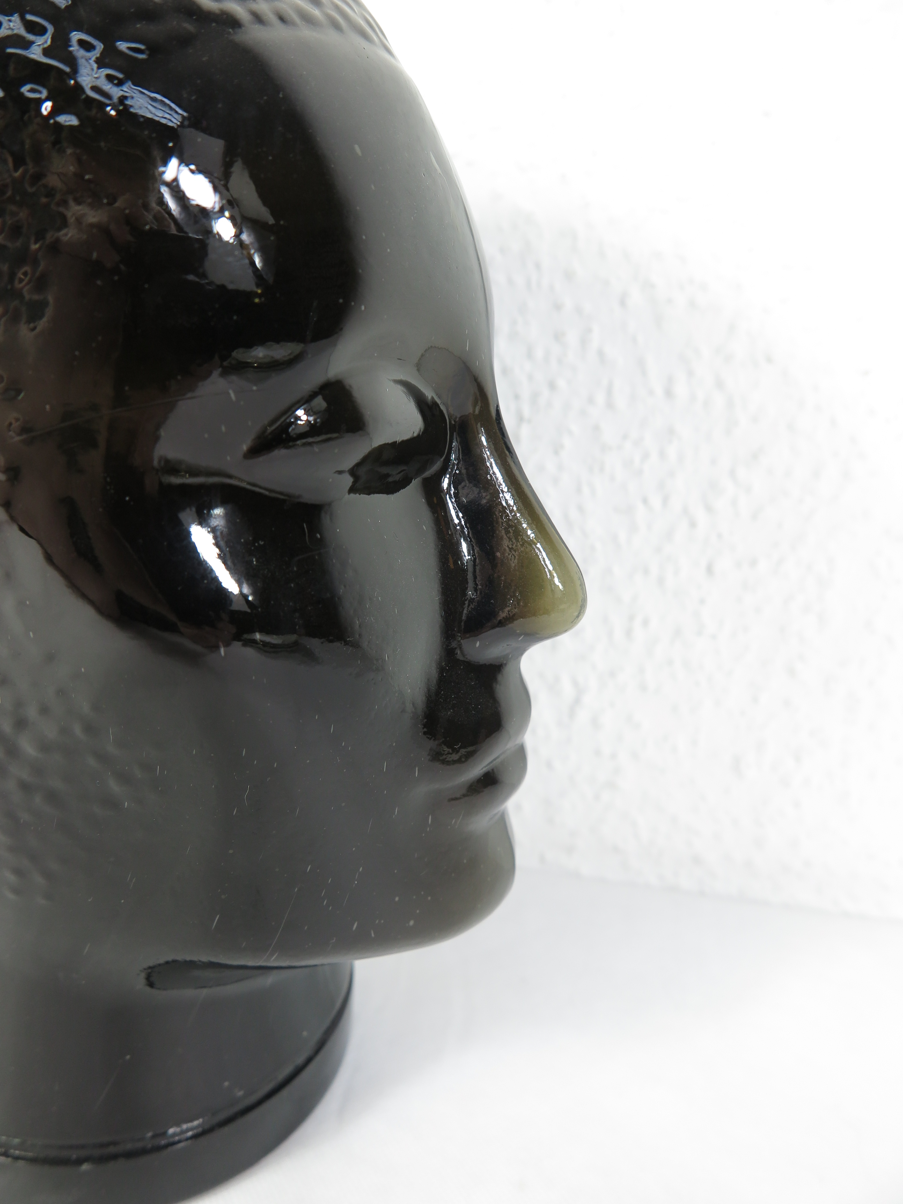 70er schwarzer Glaskopf, Kopfhörer, Perücken Halter, Hutkopf