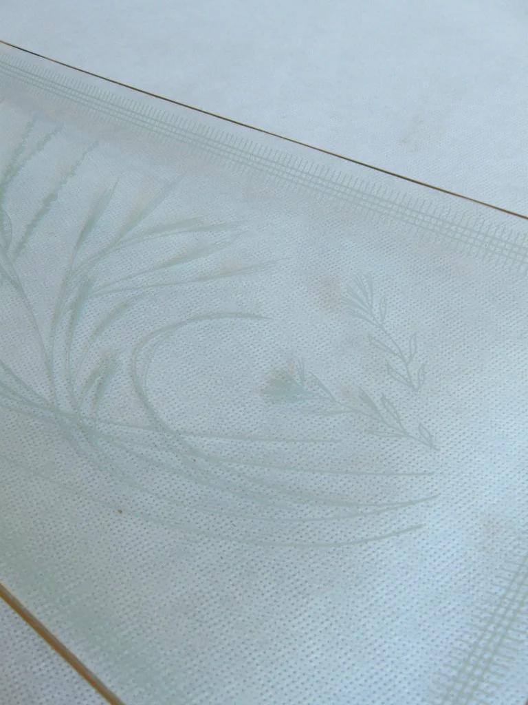 The tray is made of thin, cut glass and beautifully decorated.