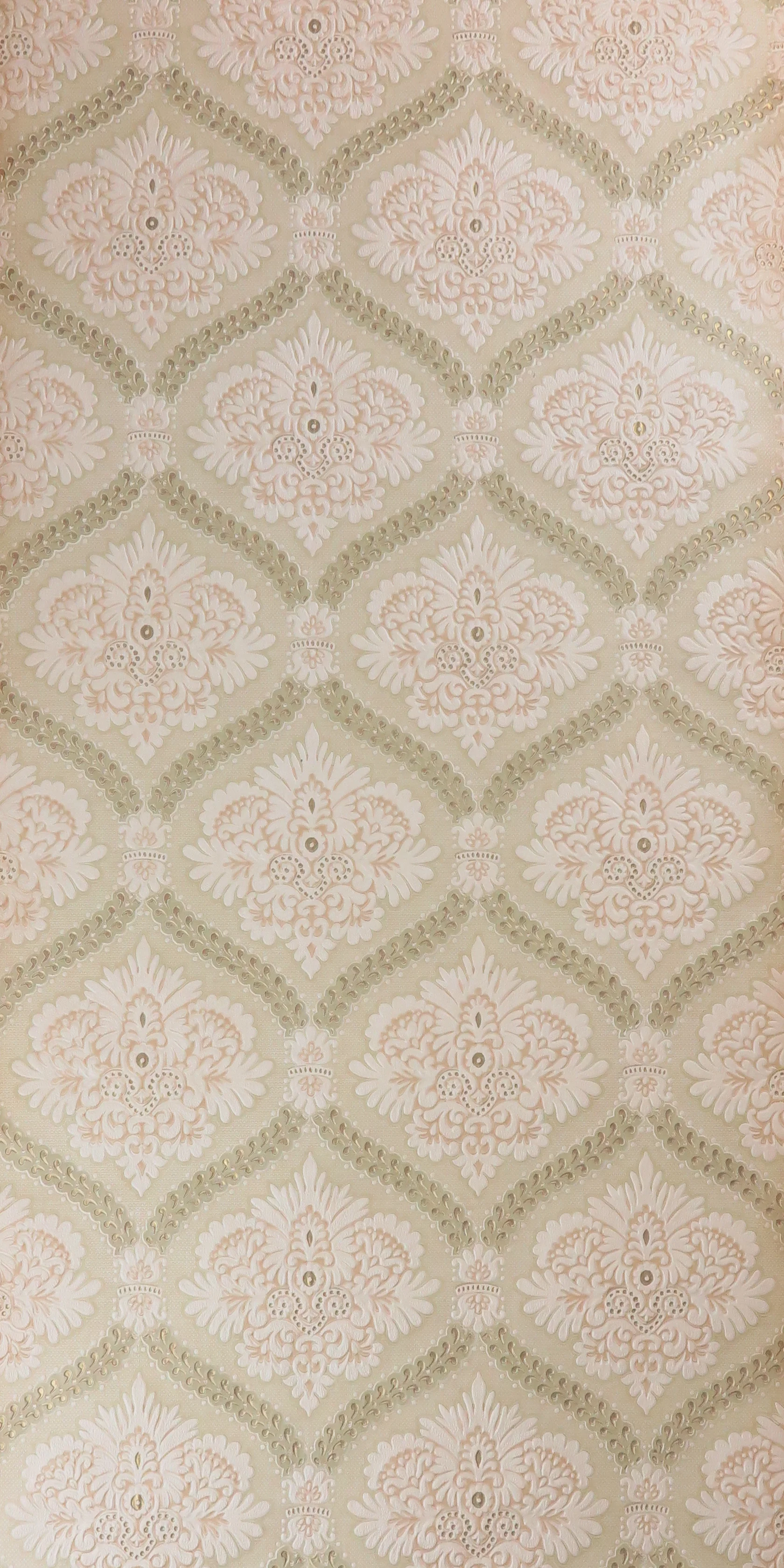 Original 70s wallpaper with pink gold baroque pattern