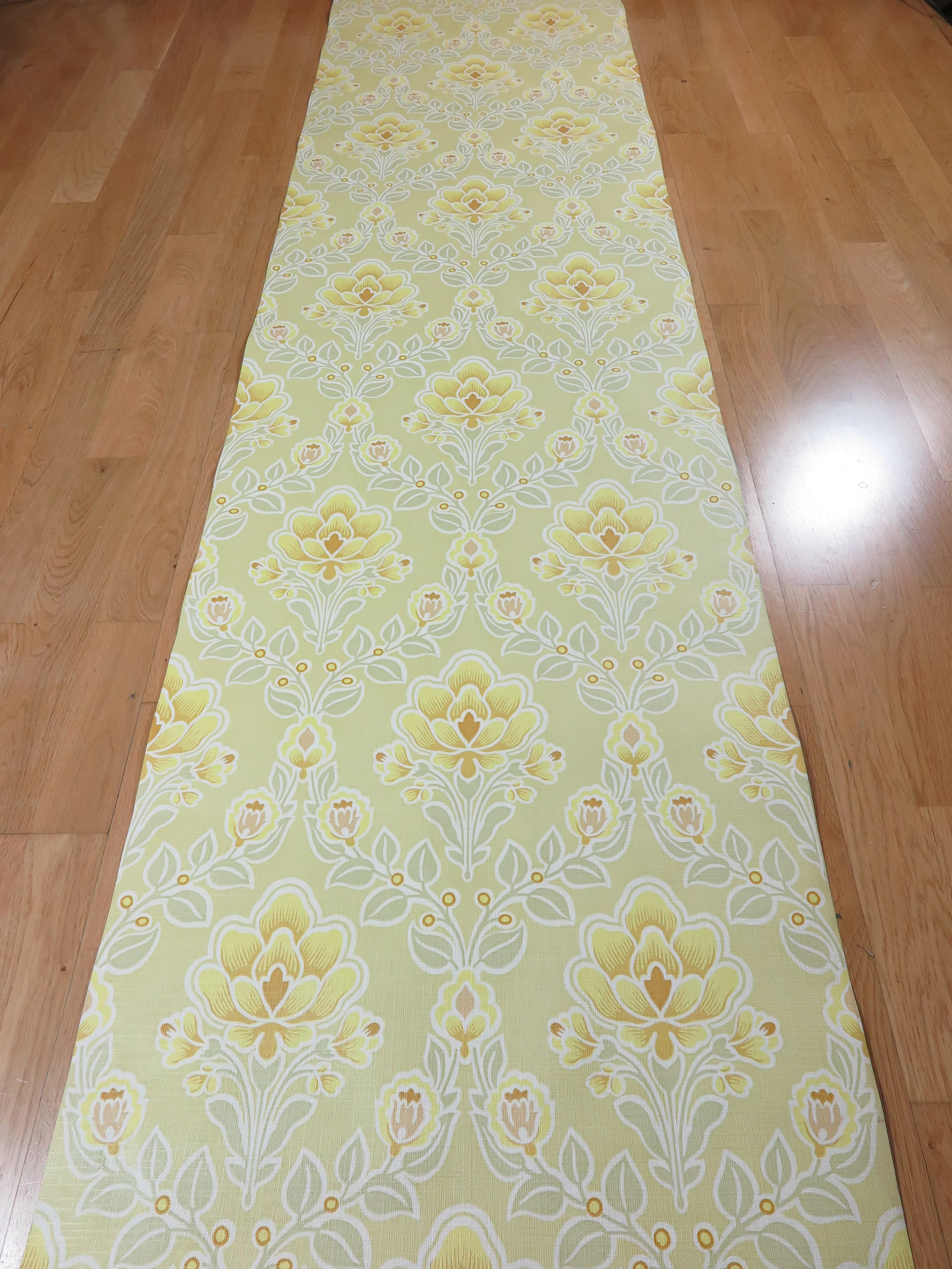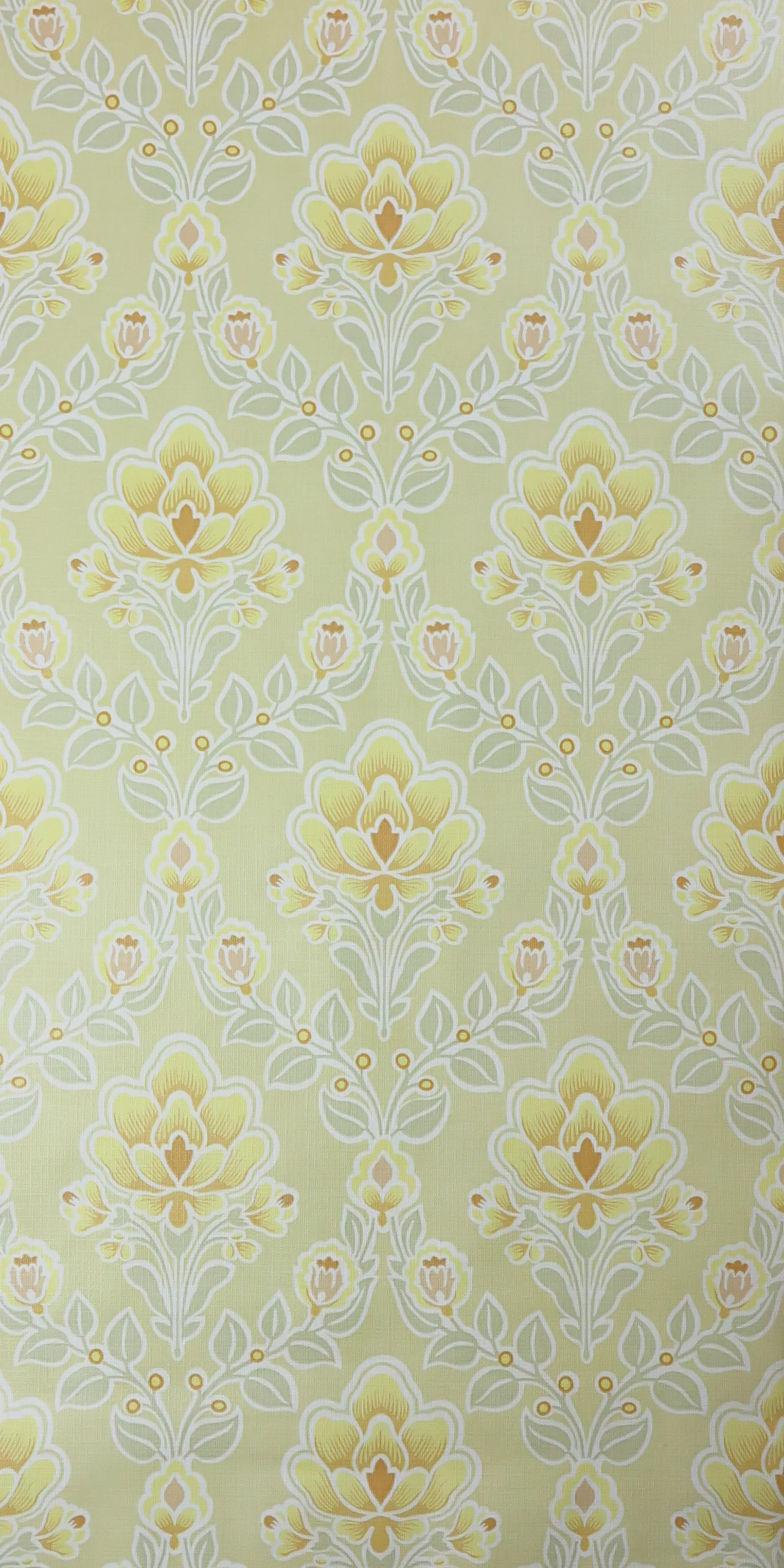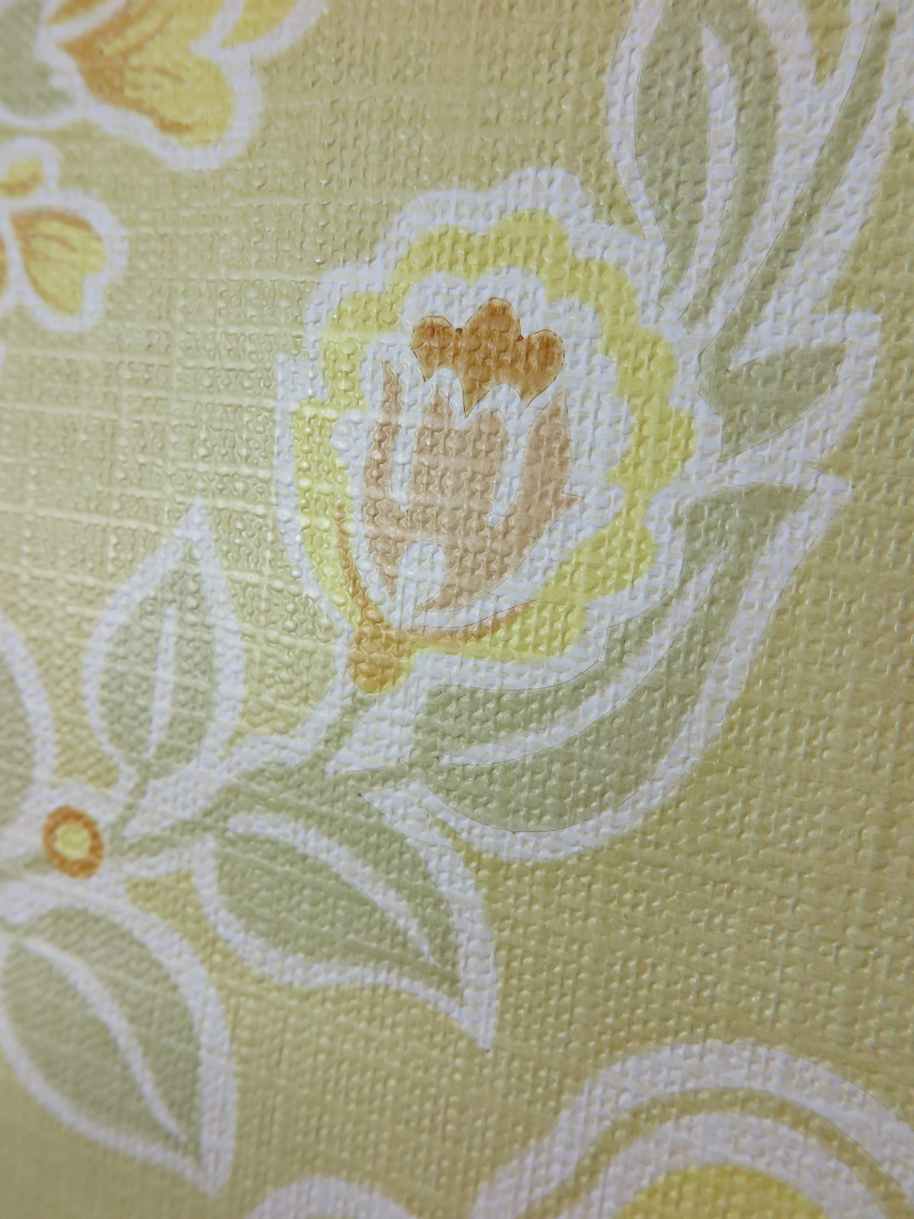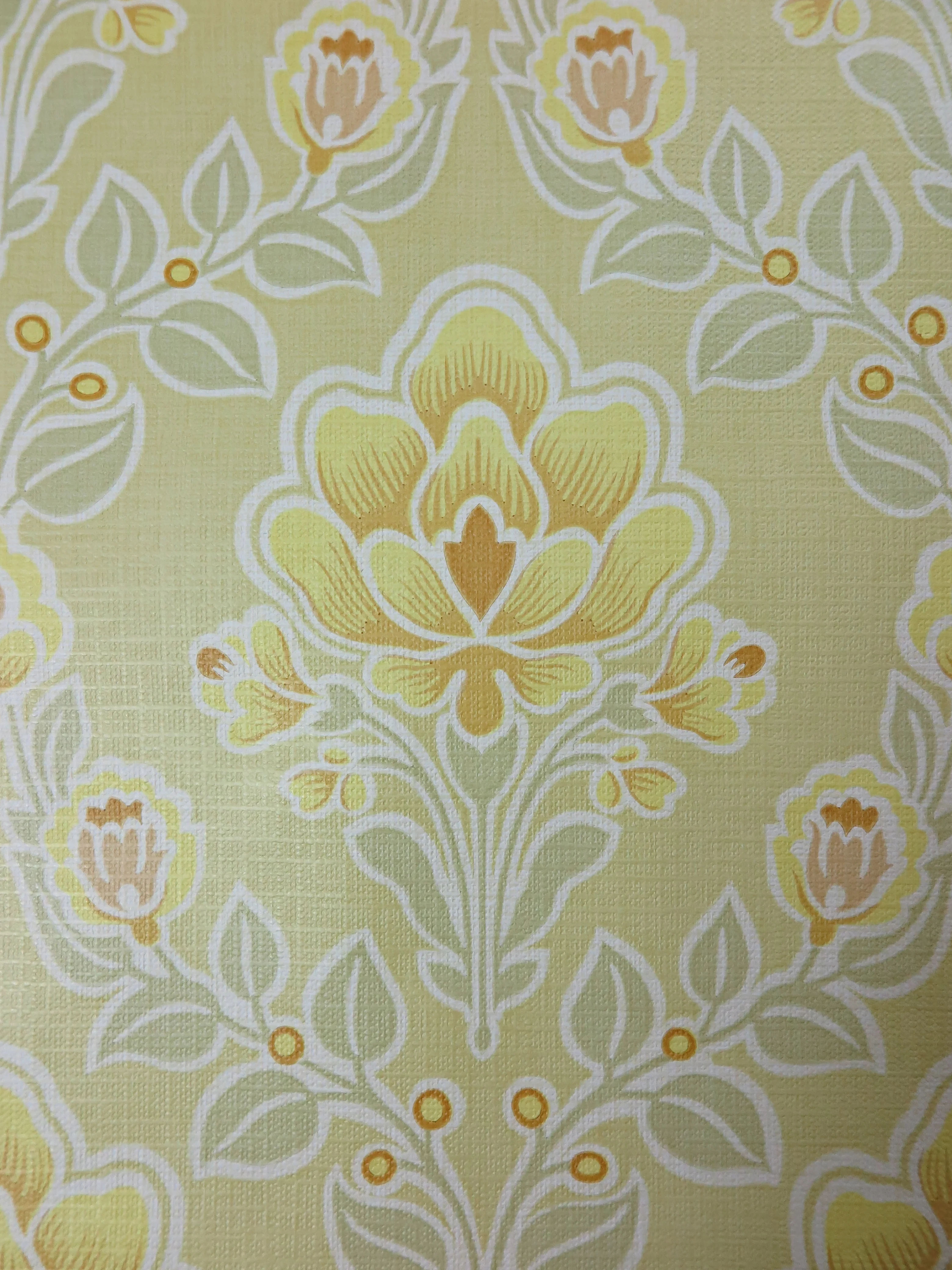Original 70s vintage wallpaper in yellow, ocher, pastel moss green, beige and white