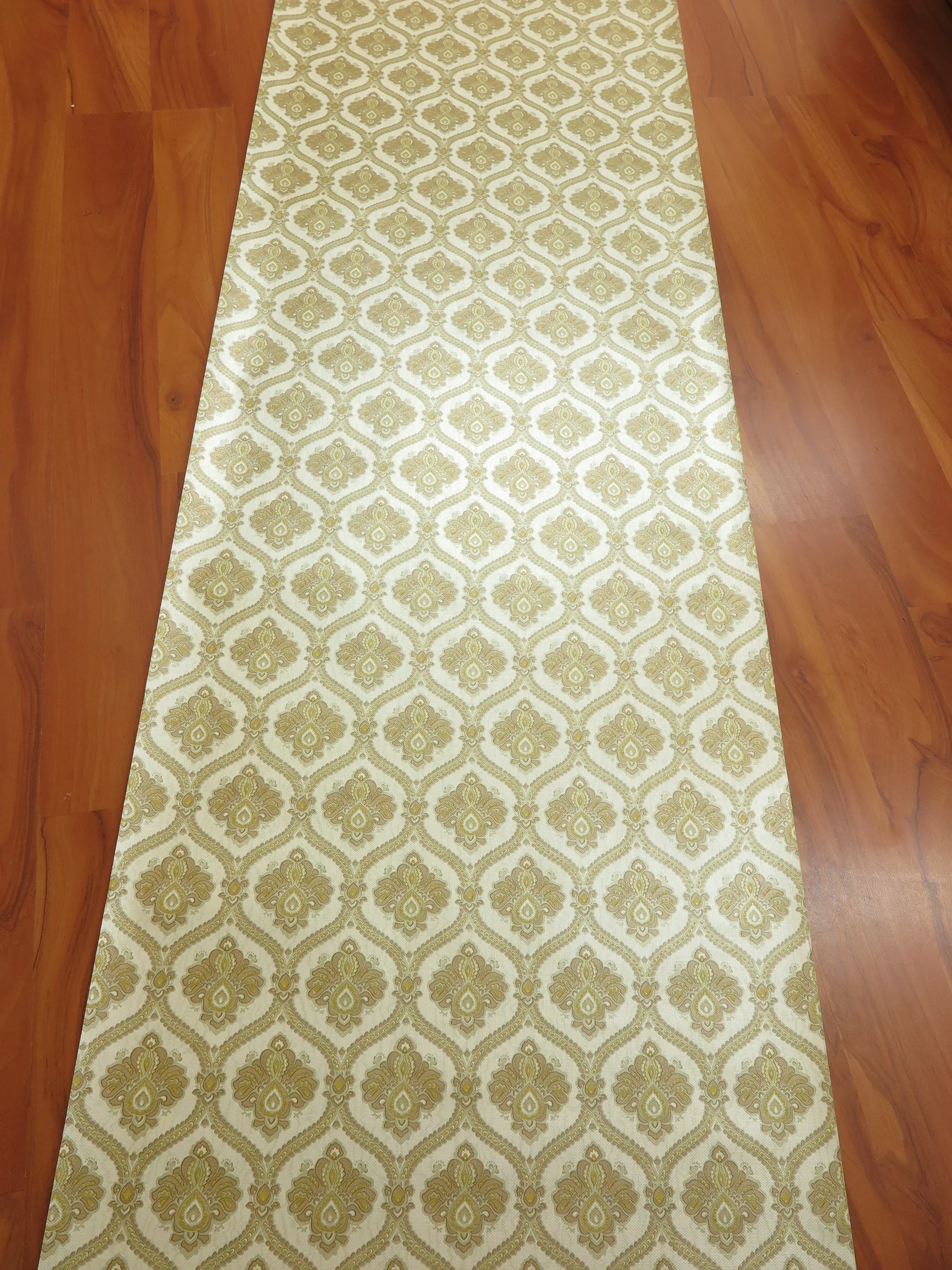 This wallpaper in ochre and beige variations has a beautiful fine gloss.