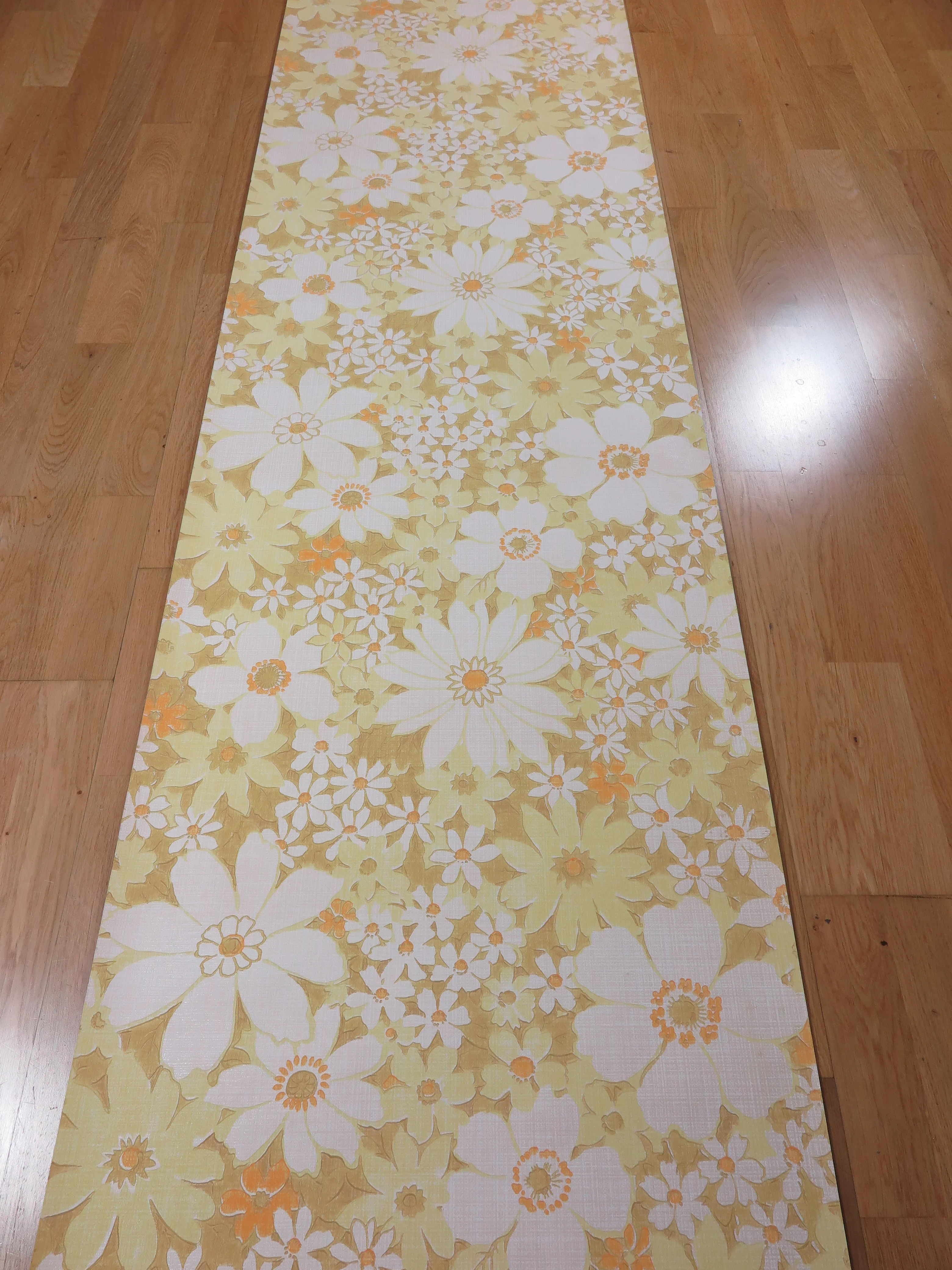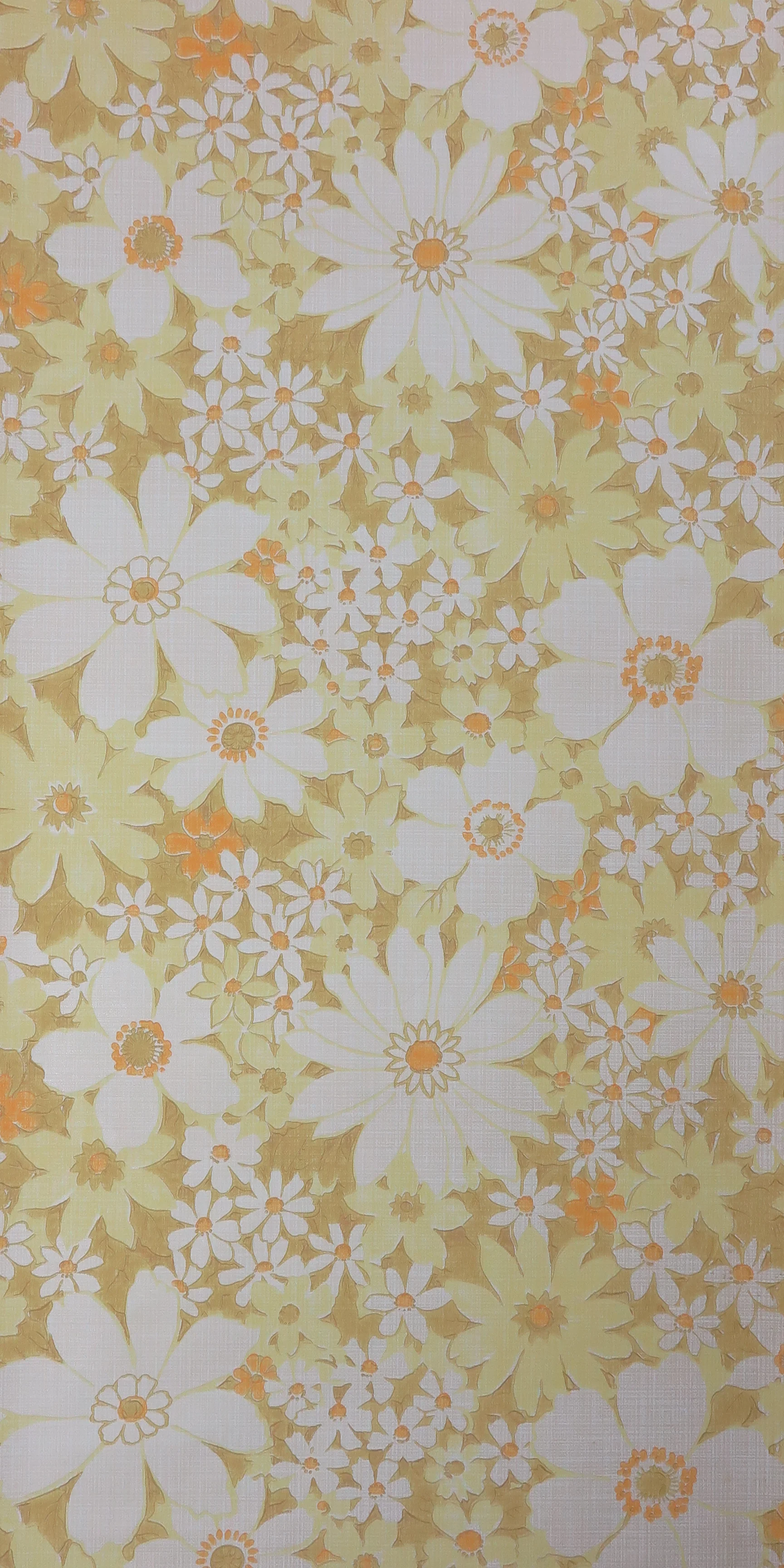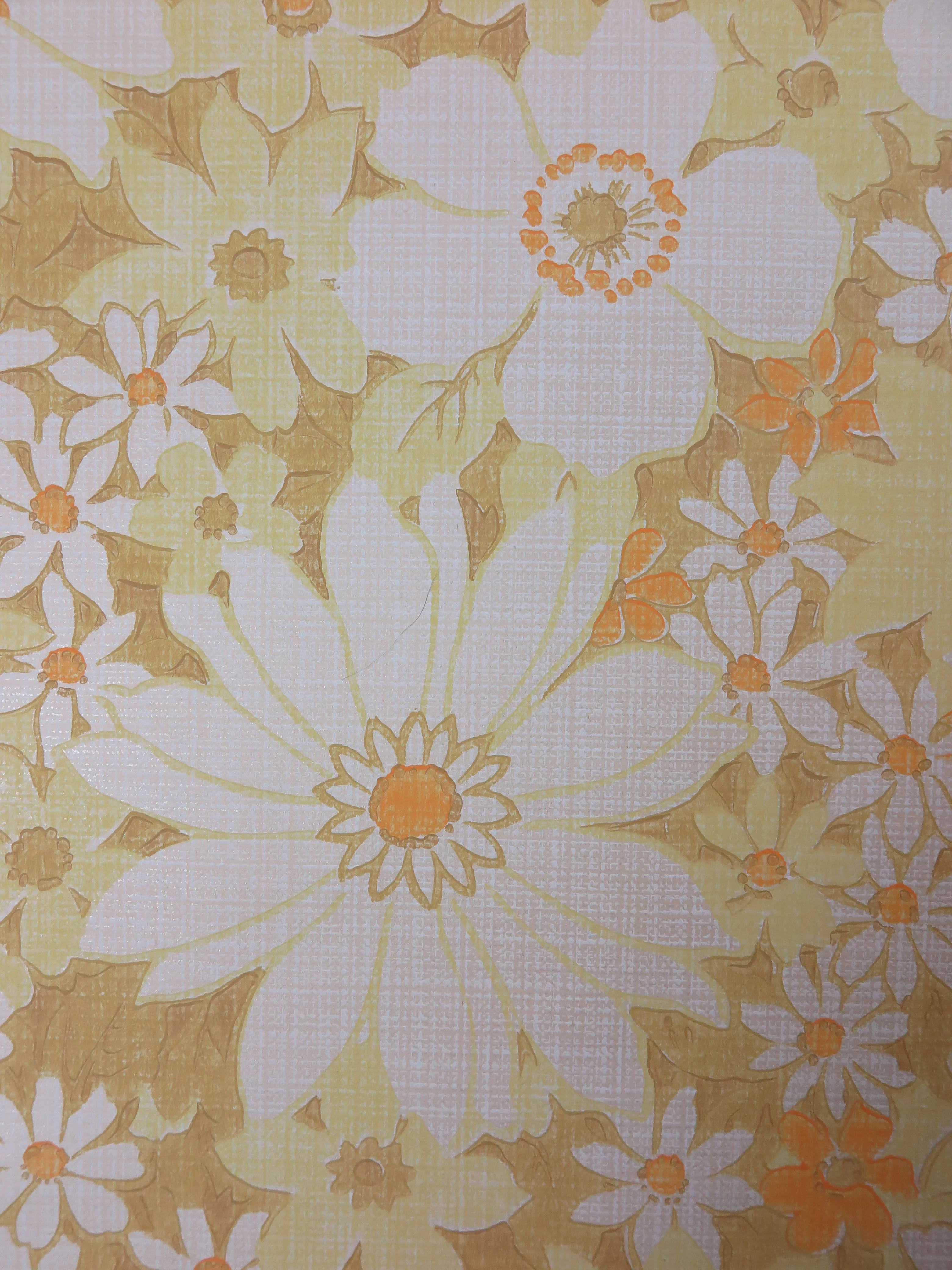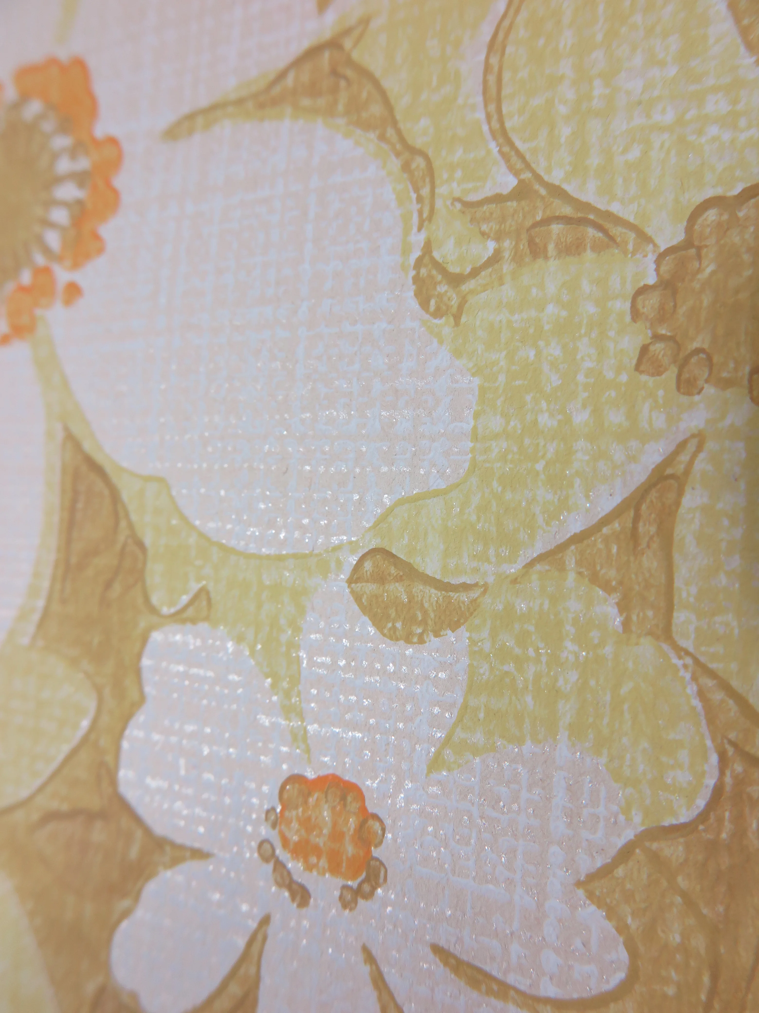 Original 70s vintage wallpaper in yellow, orange, ocher, light brown and white