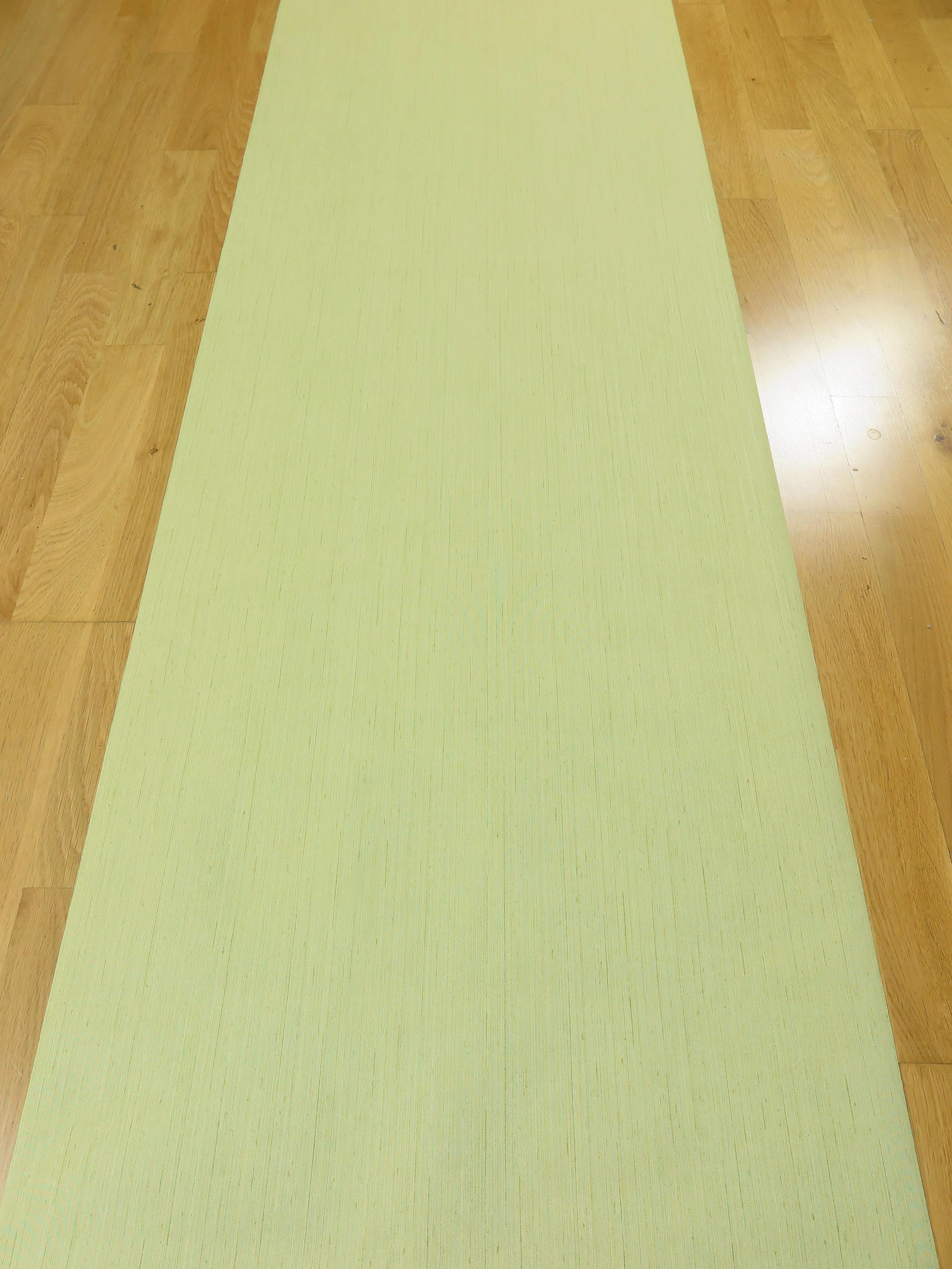Vinyl wallpaper is non-glossy, washable and textured like woven linen.