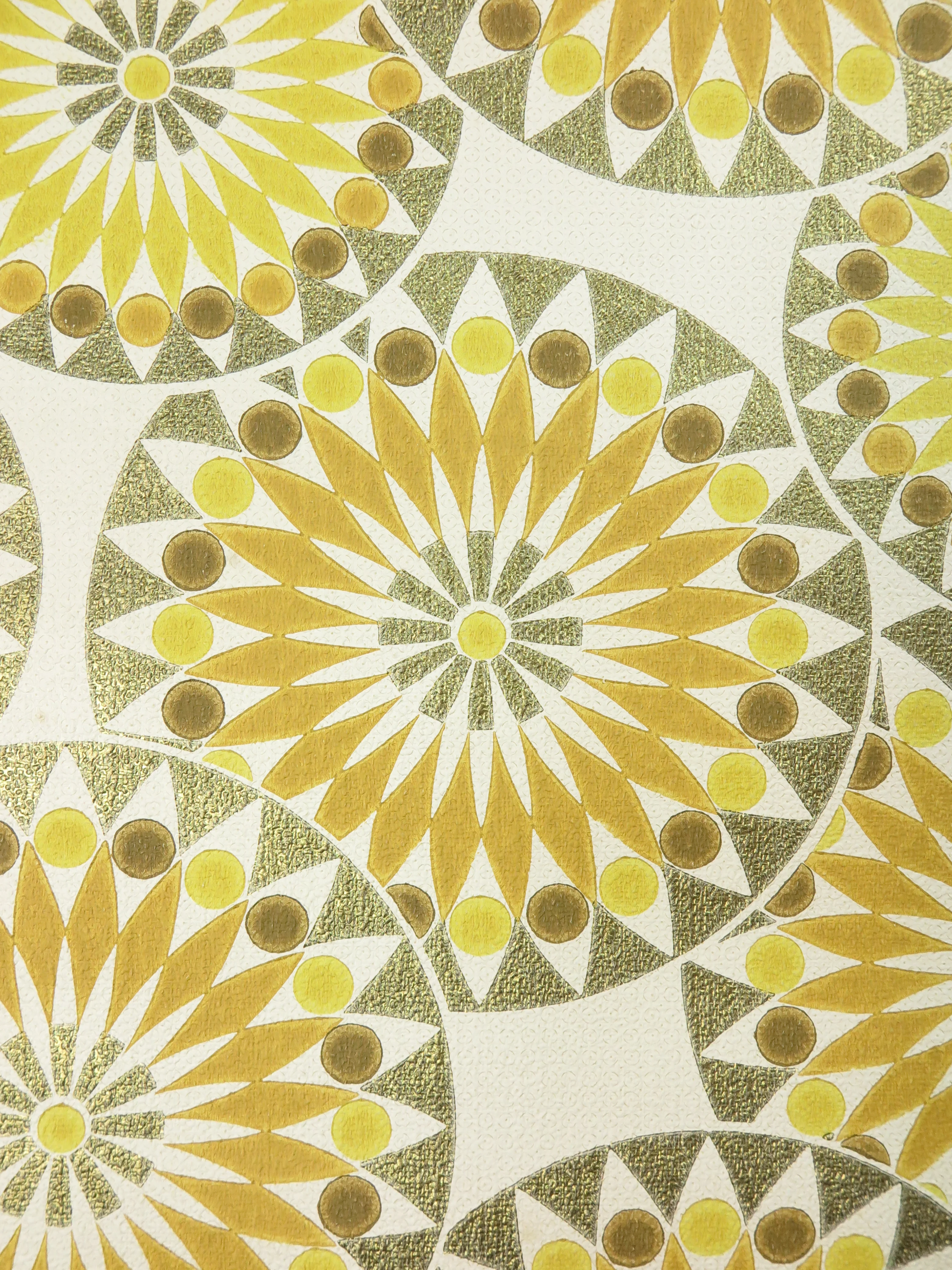 Especially beautiful original early 70s wallpaper in orange, gold and brown