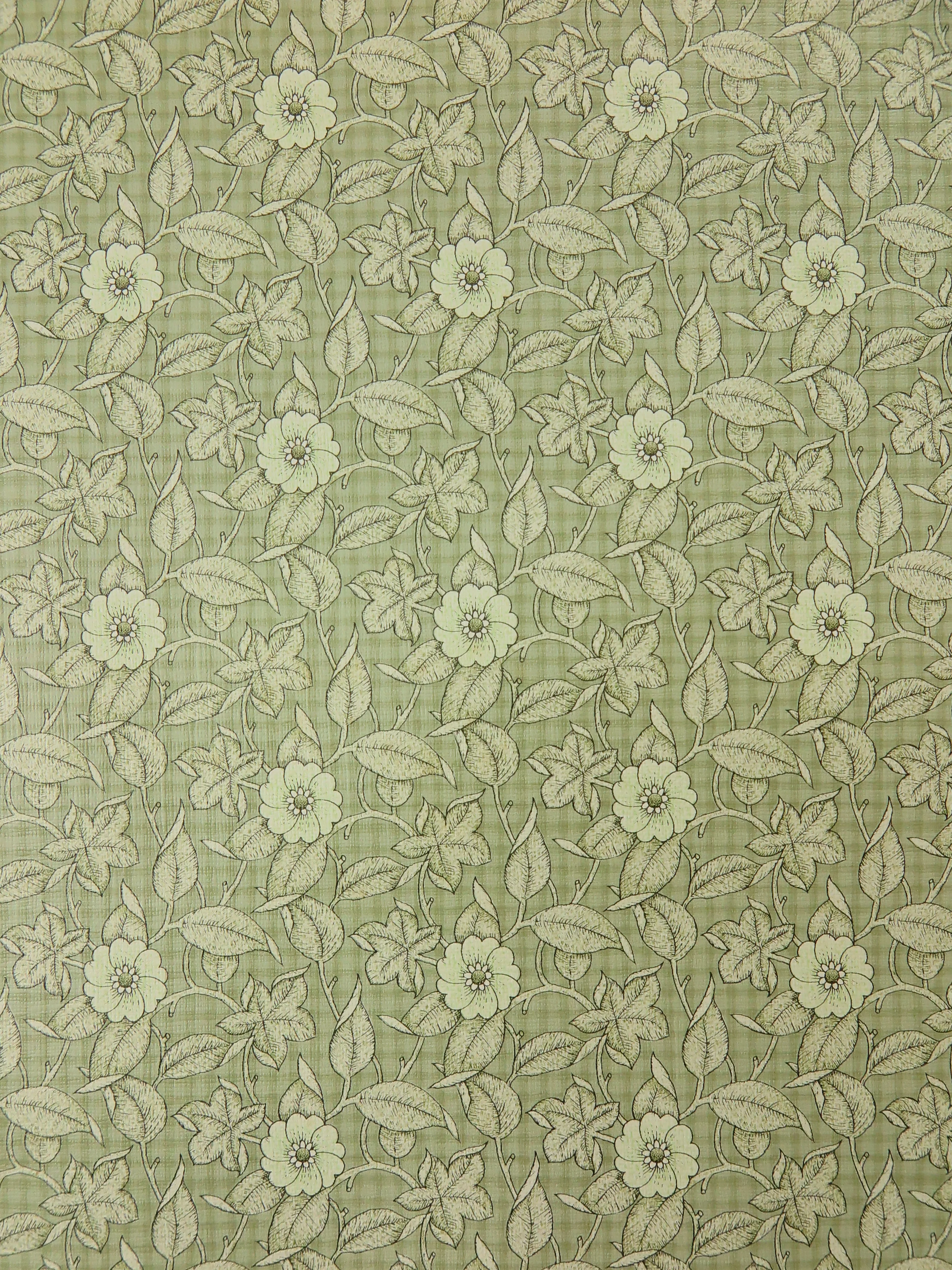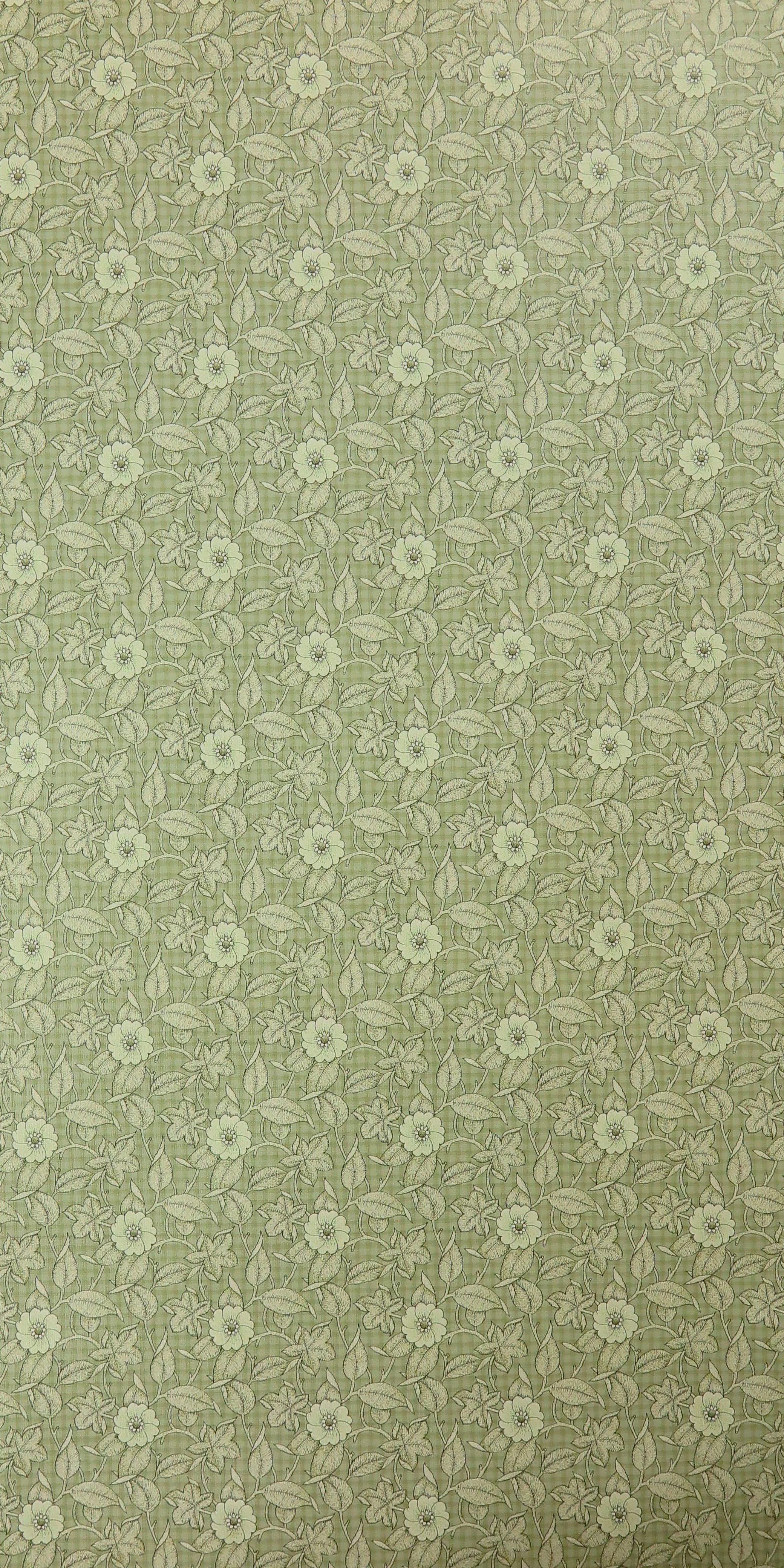 The very fine textured paper wallpaper is slightly glossy and has a floral pattern.