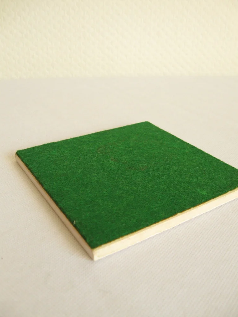 Los seis posavasos son de cerámica vidriada, similar a un azulejo, y están forrados con fieltro verde en la parte inferior.