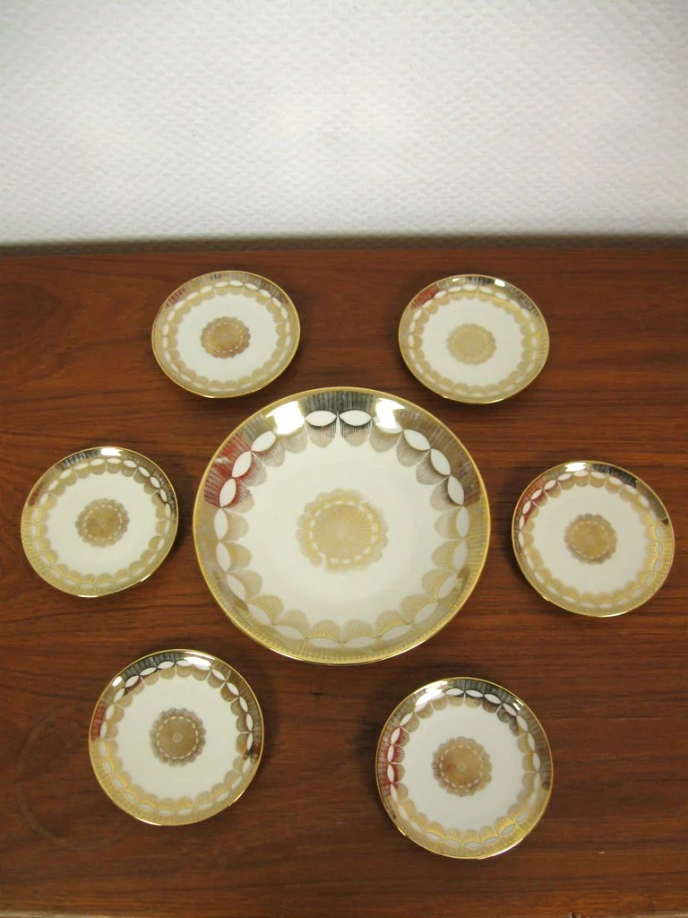 Les coupes sont en porcelaine et décorées en or.