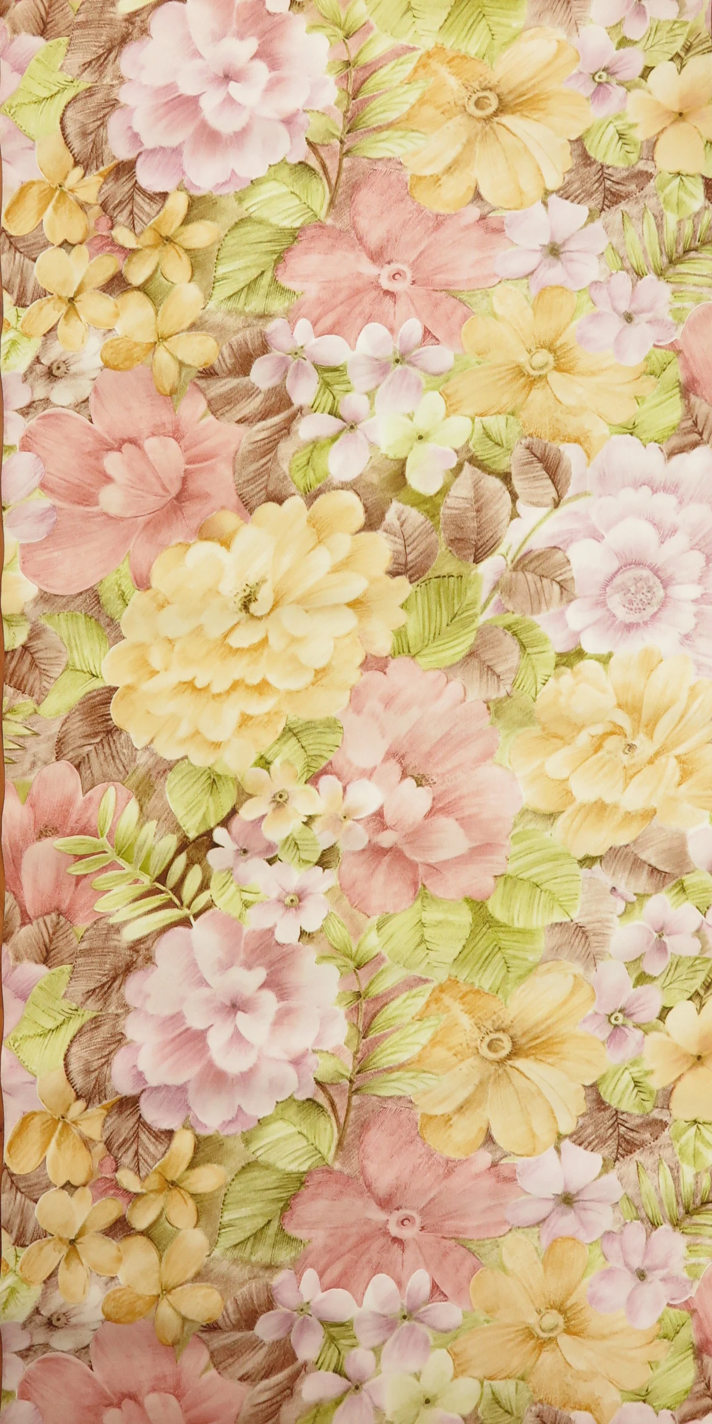 Superbe papier peint vintage original à grandes fleurs dans des couleurs pastel raffinées