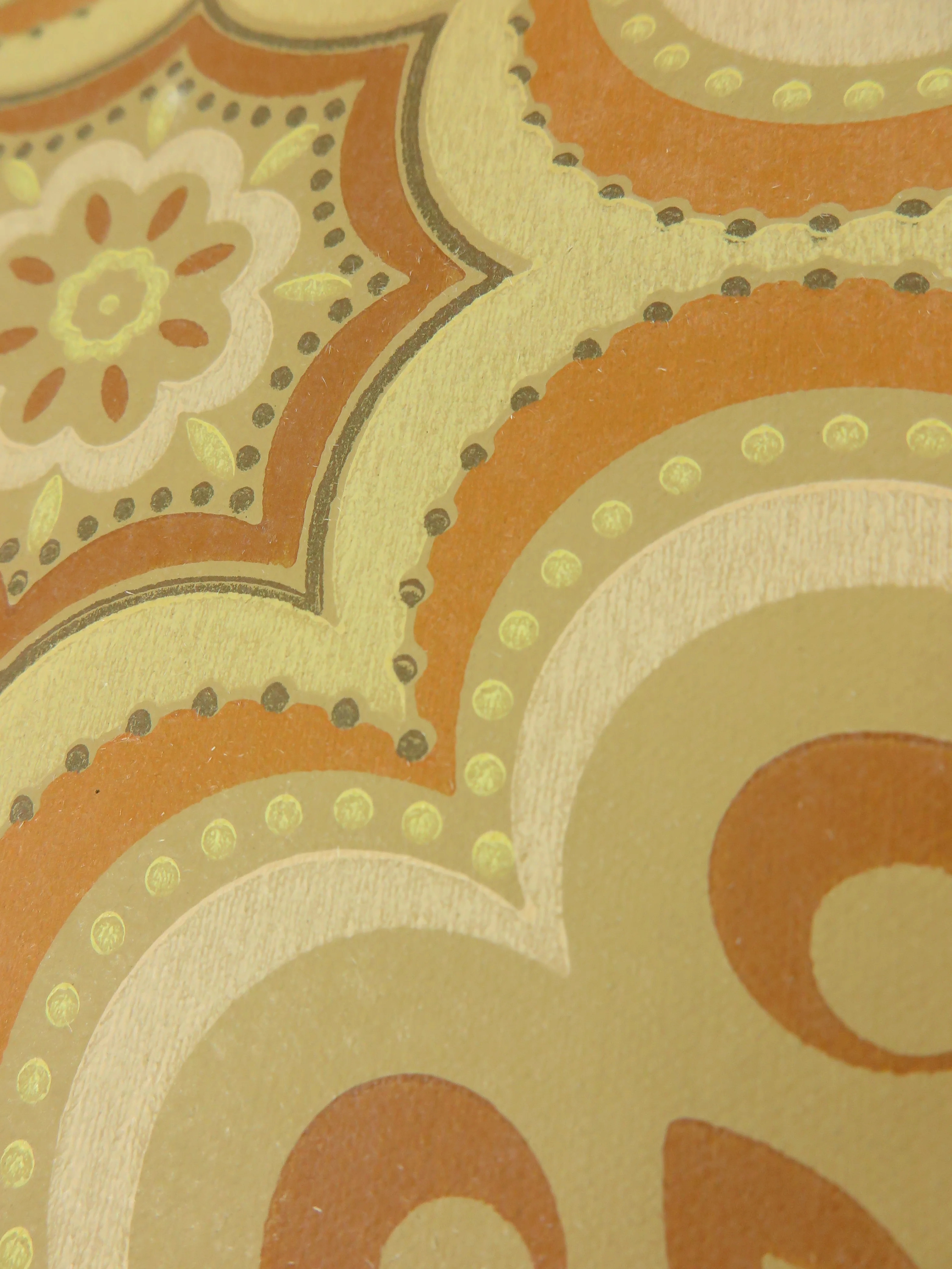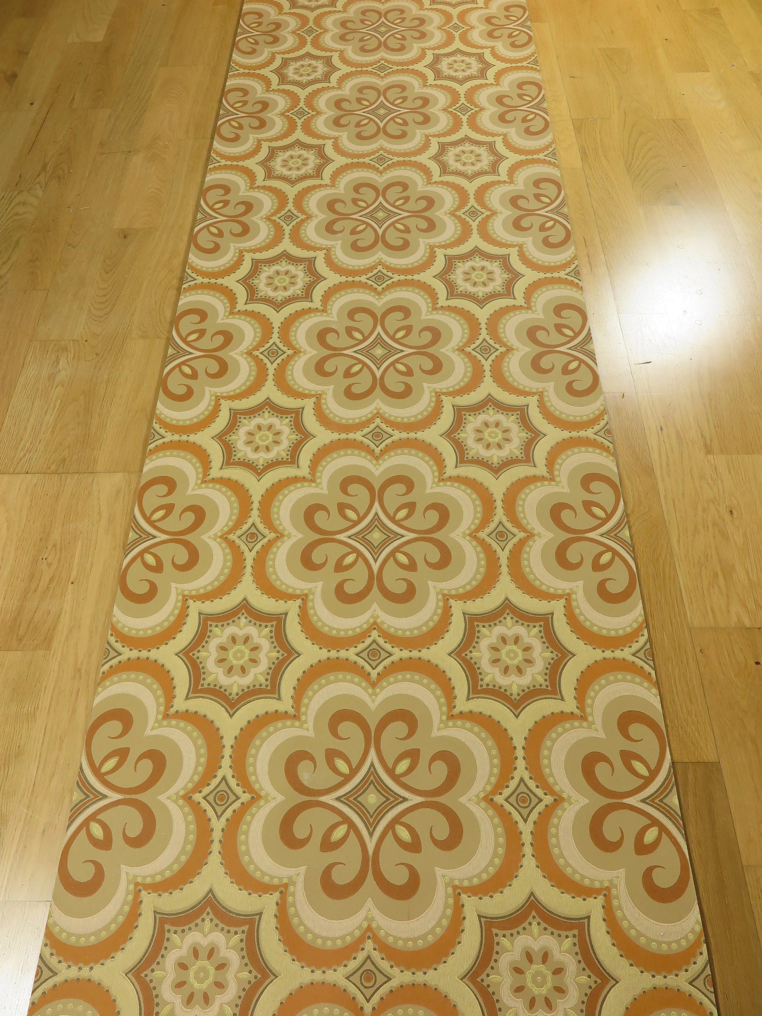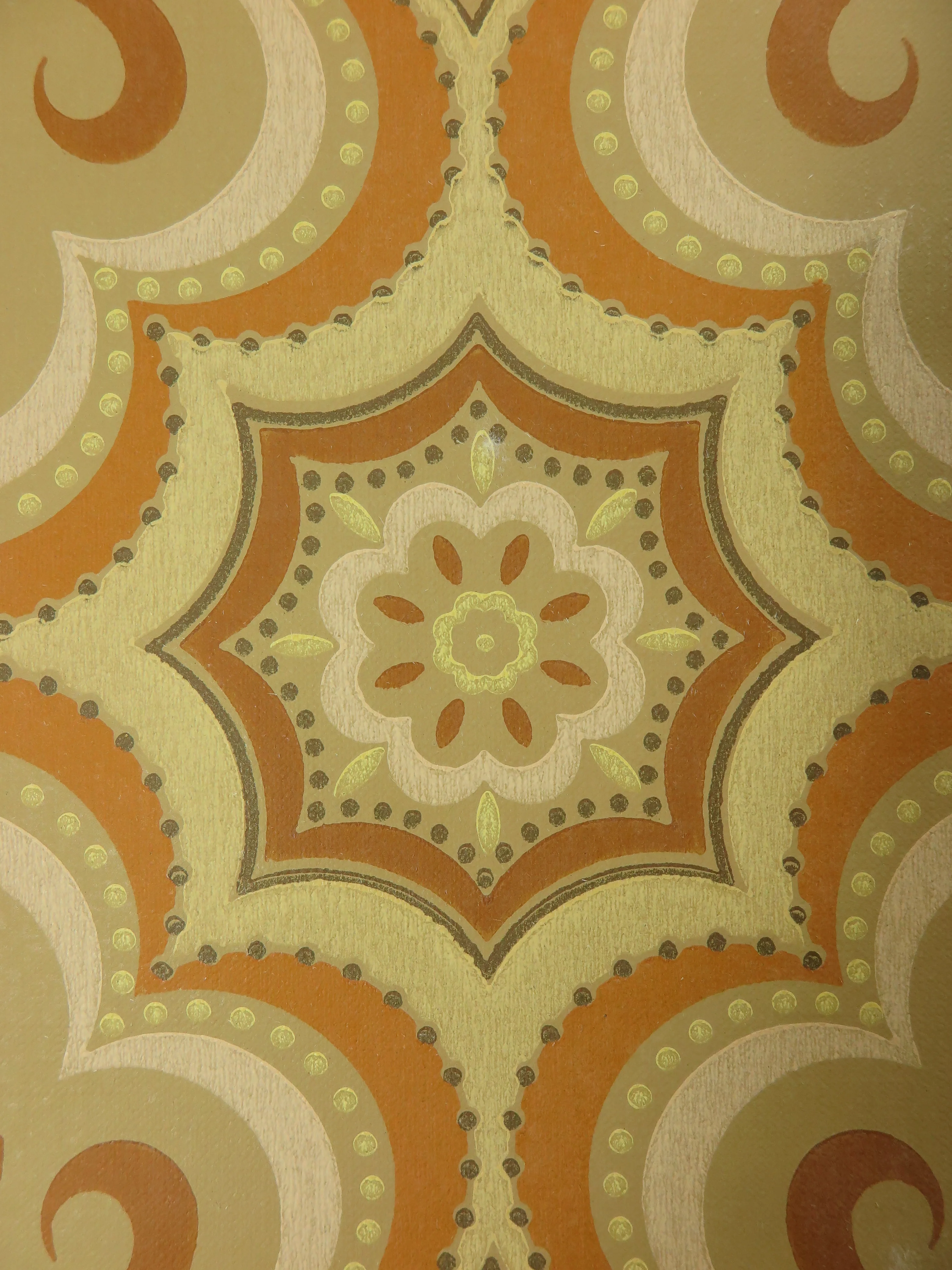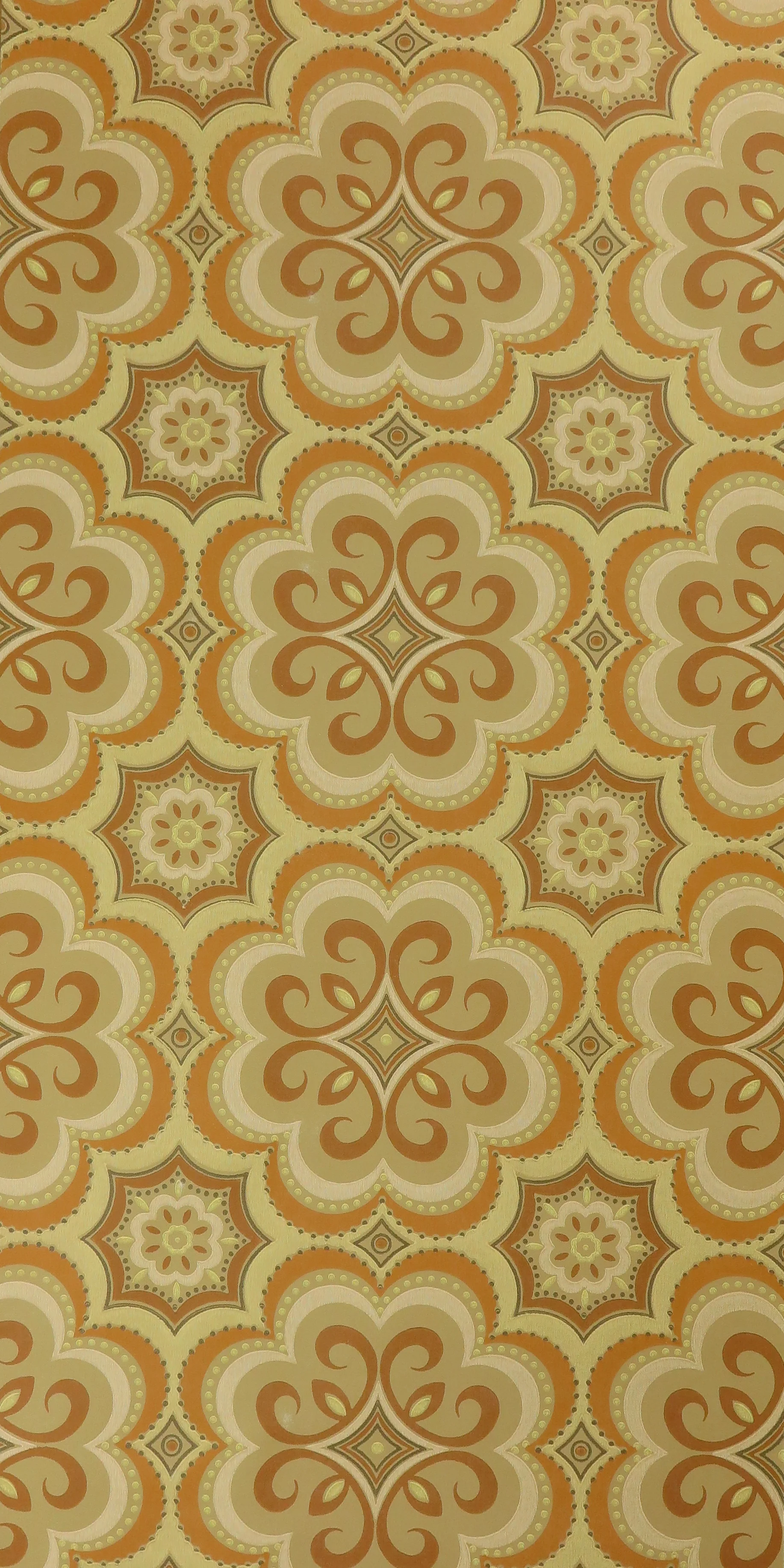 ベージュ、パステルイエロー、黄土色、クリームホワイトの60年代のオリジナル壁紙