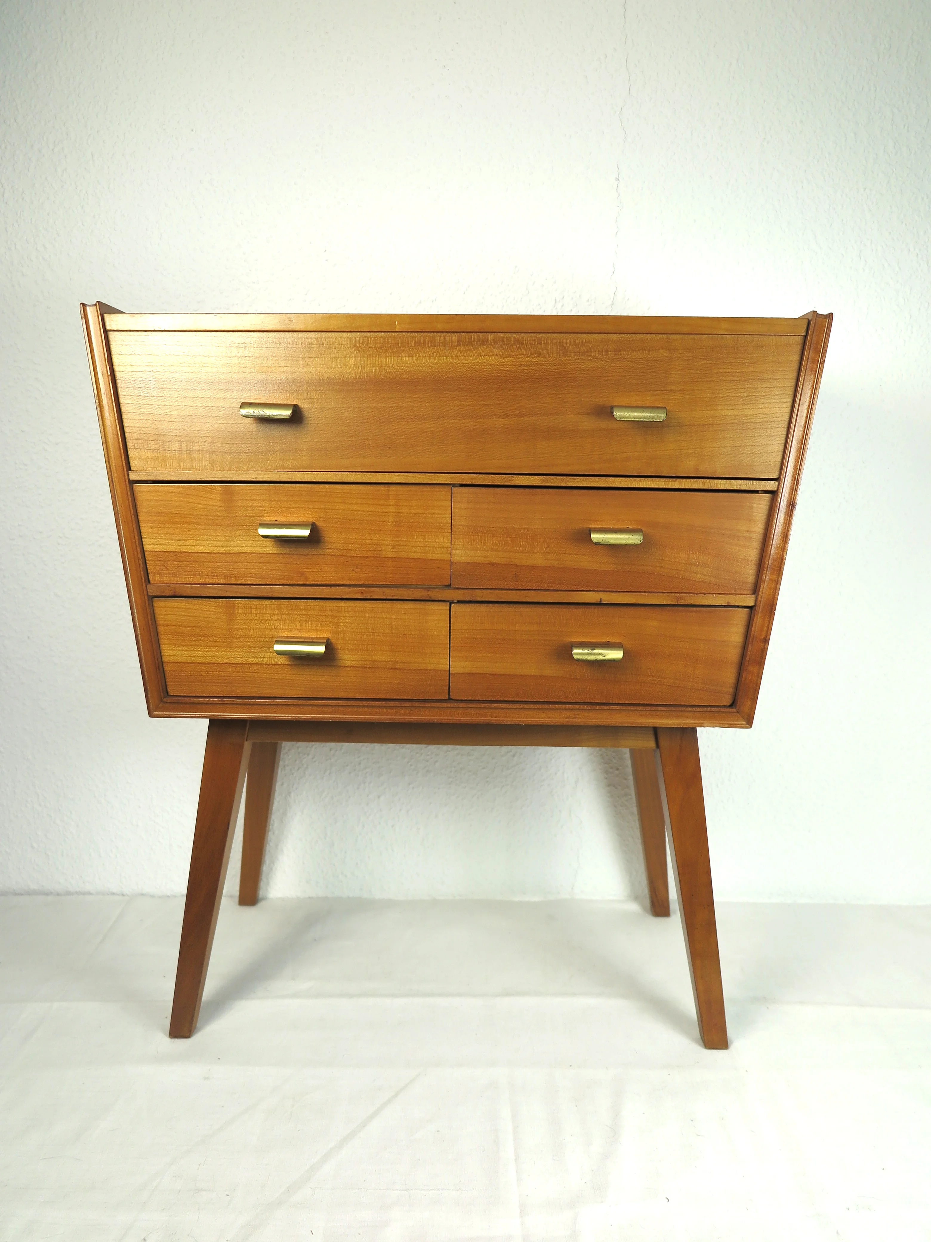 Es kann als Minisekretär, Nähschränkchen, für den CD Player + CD's oder auch als Minibar.