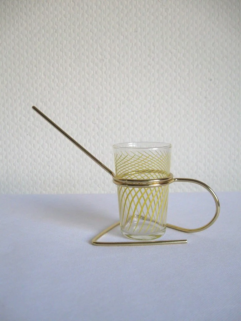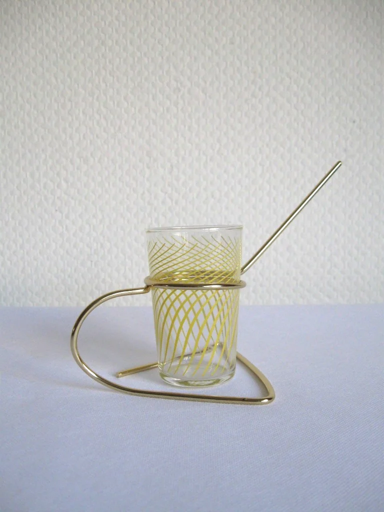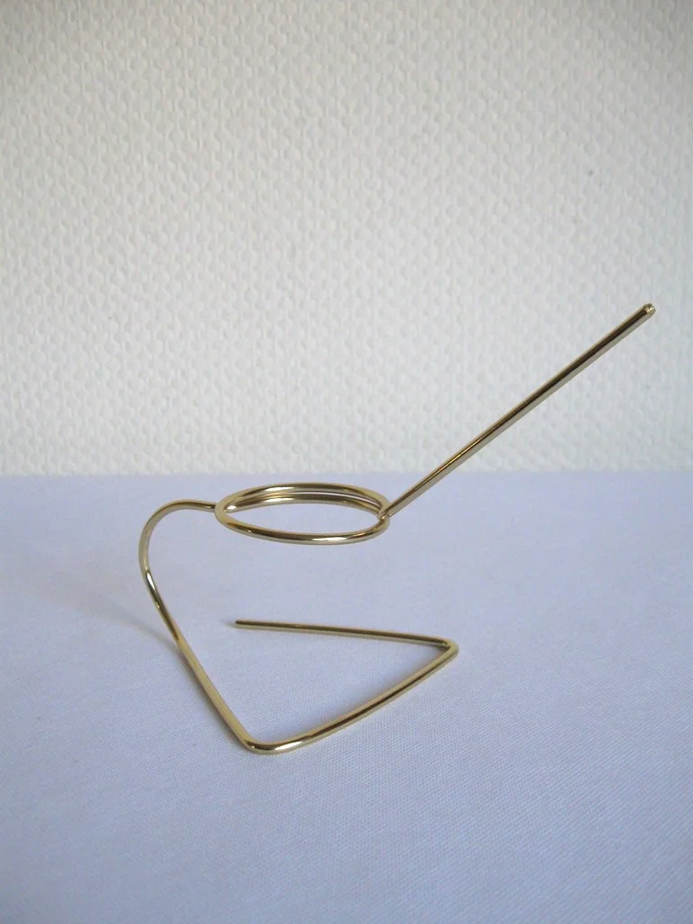 Der Halter besteht aus einem Messinggestell und einem Einsatz aus Glas.