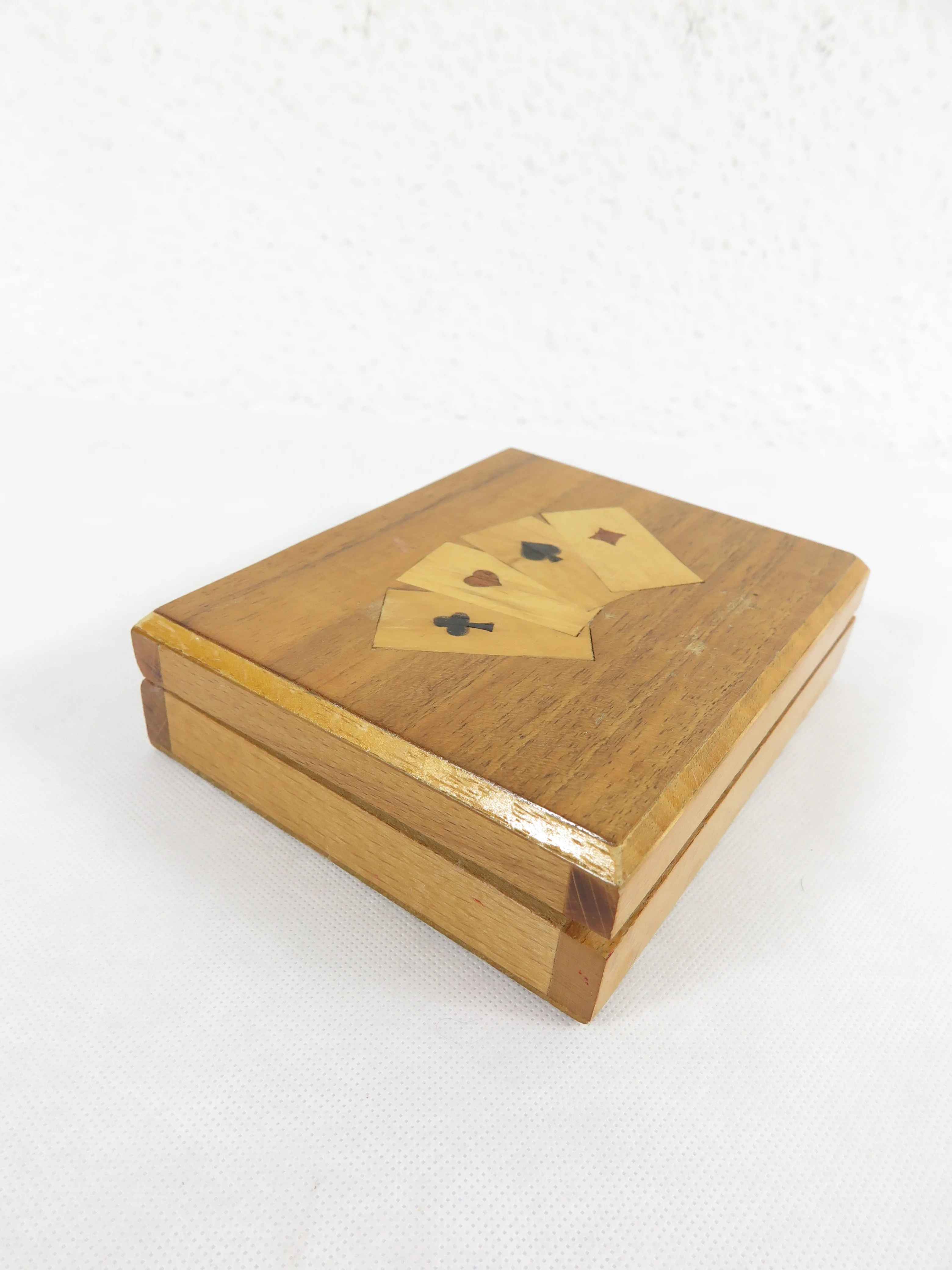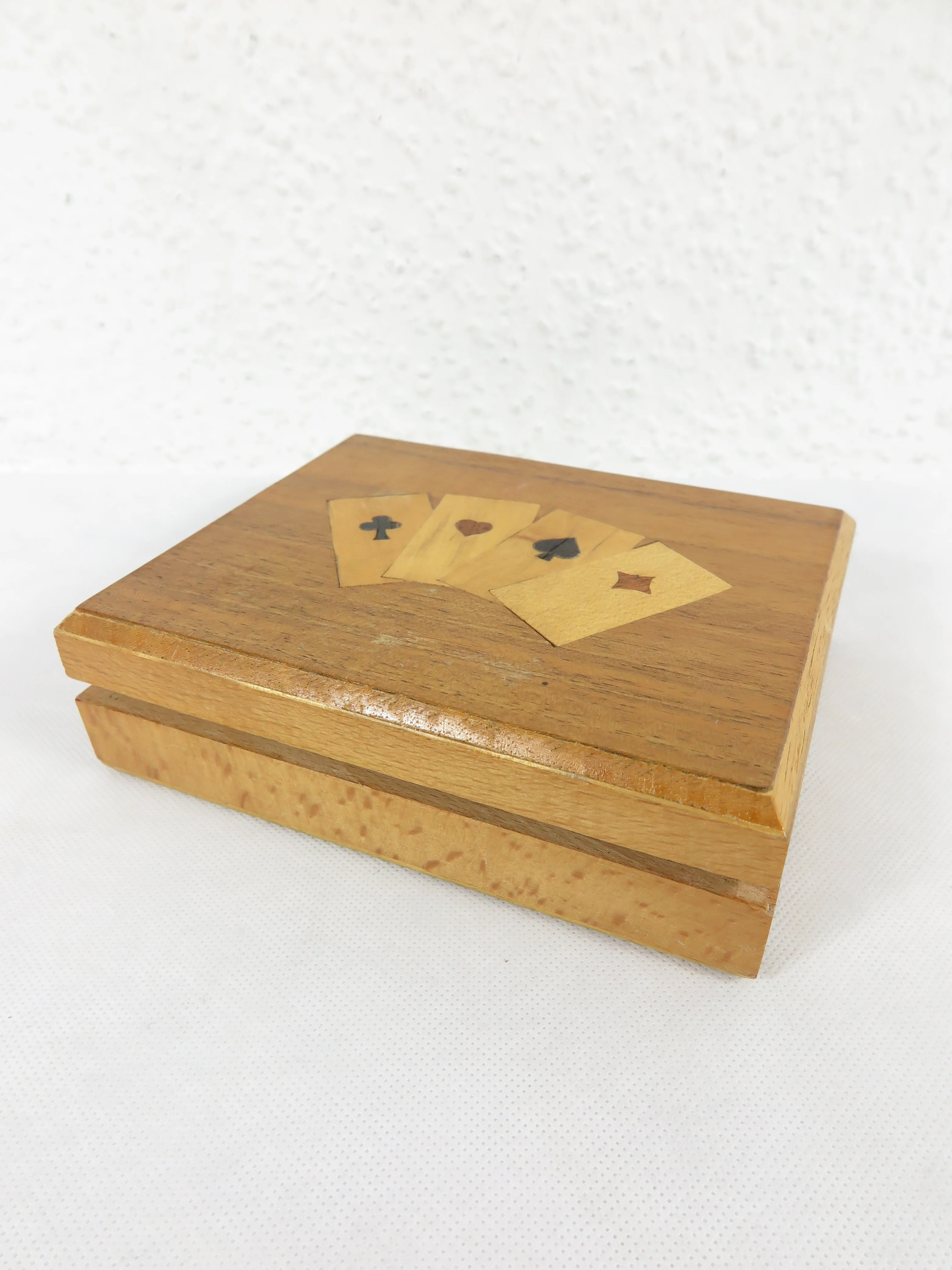 70er Holzdose, Spielkarten Dose