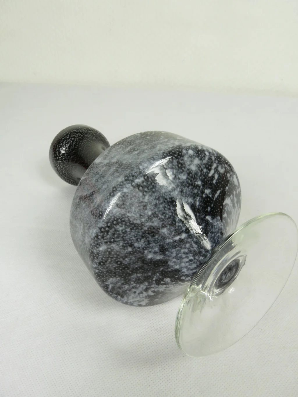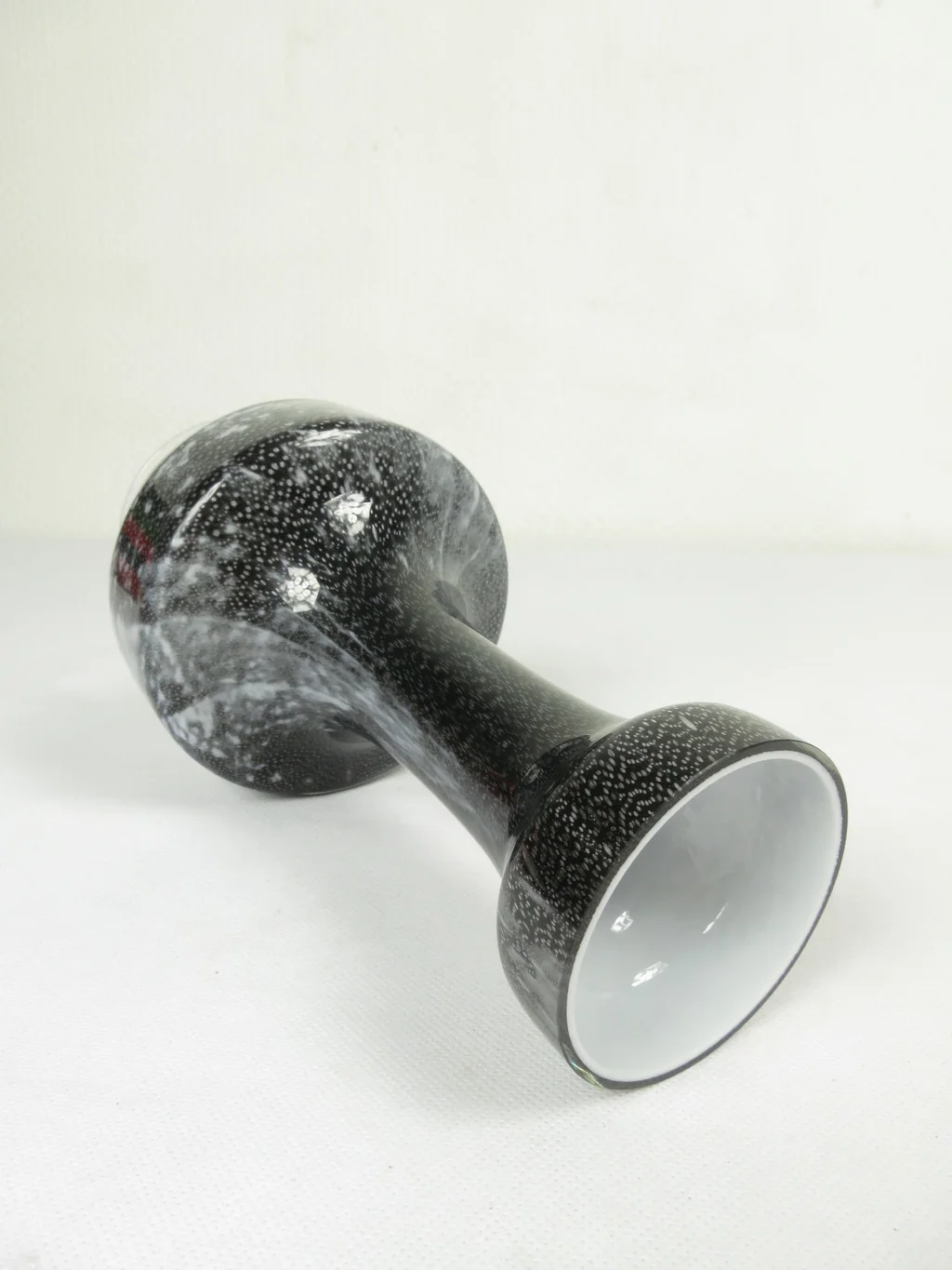 Die Vase ist aus Doppelglas (Überfangglas) und beeindruckt durch ihr schlichte Eleganz in Schwarz, Grau und Weiß.