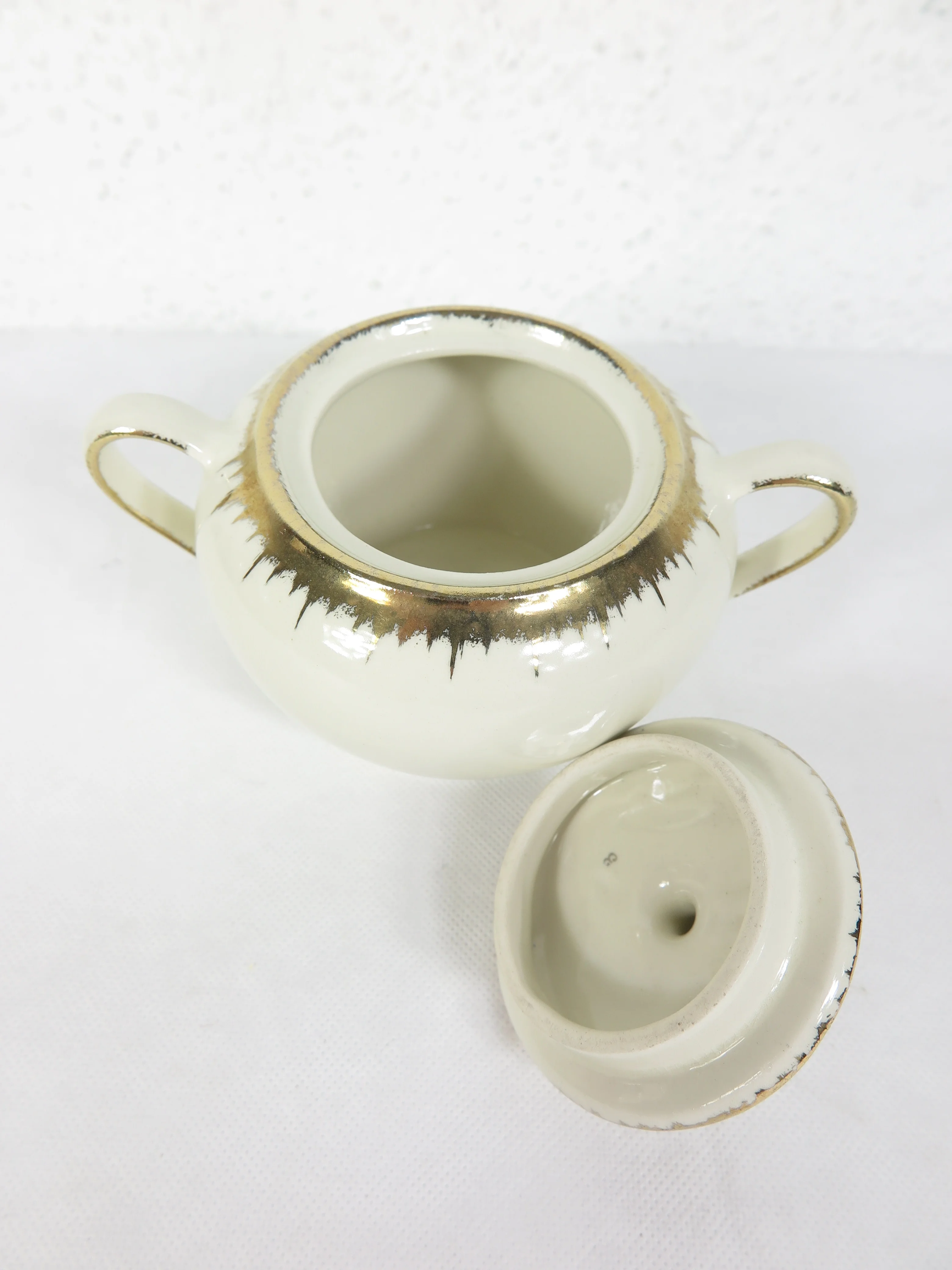 50er Zuckerdose Gold, Porzellan, Siershahn