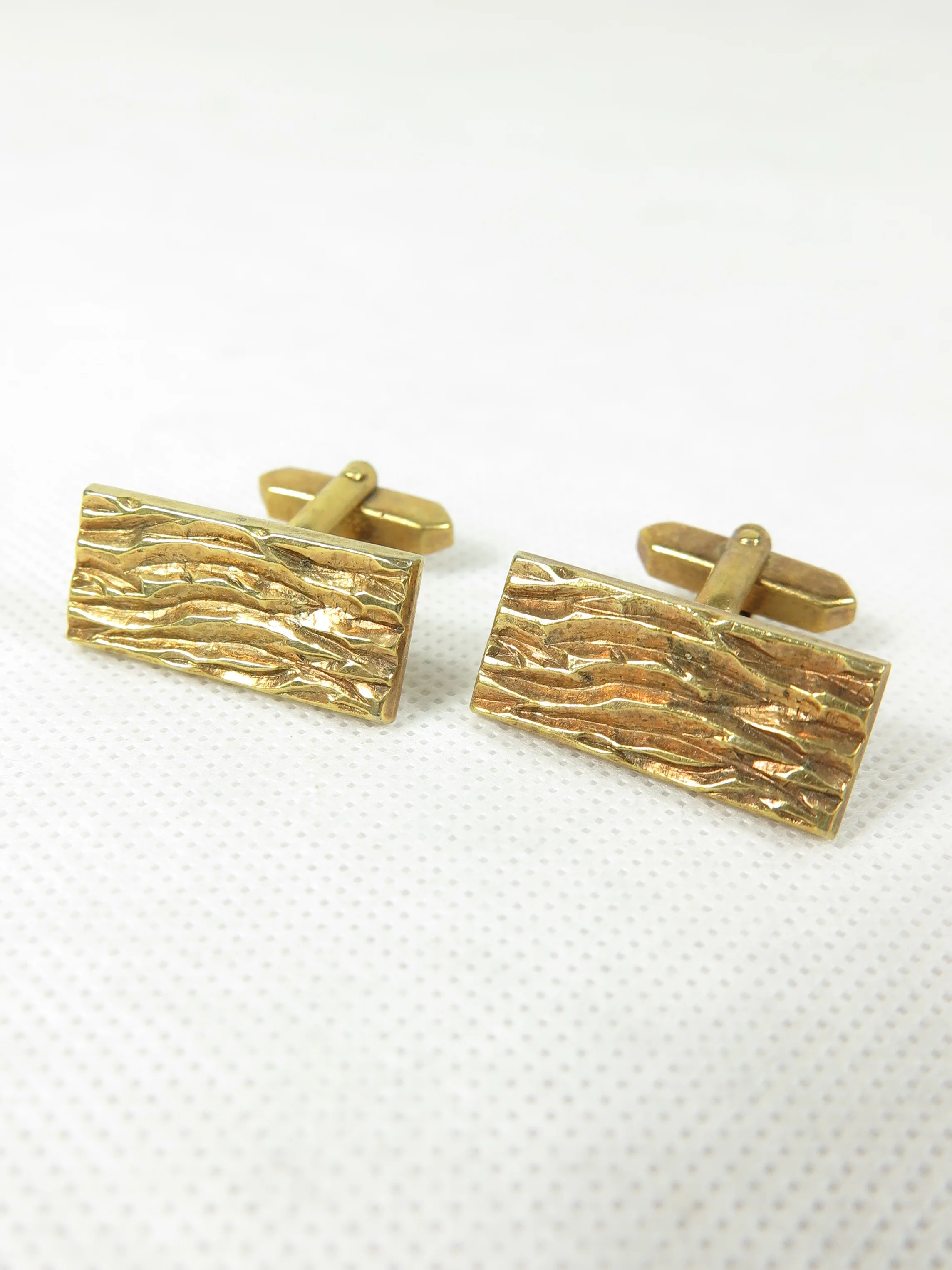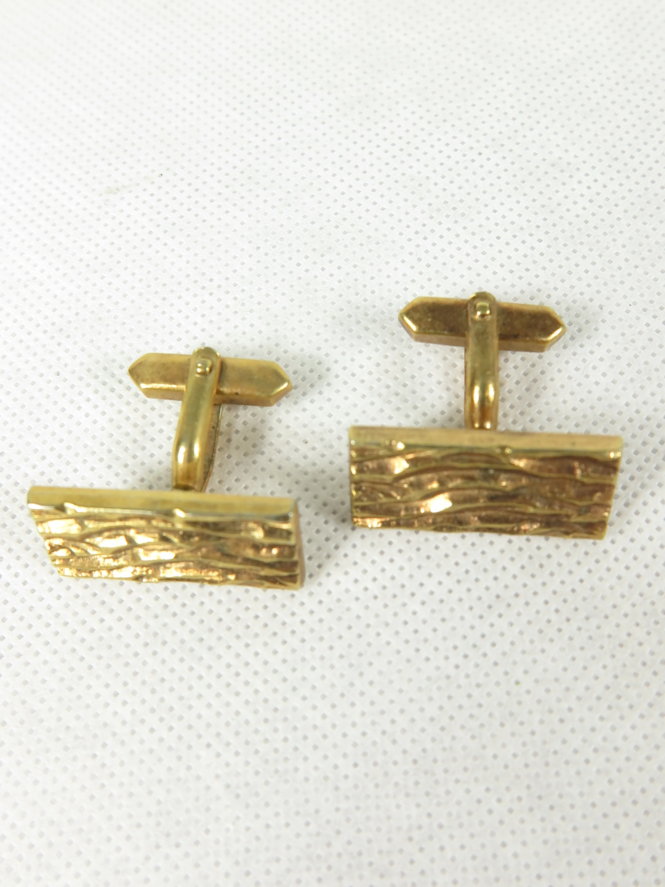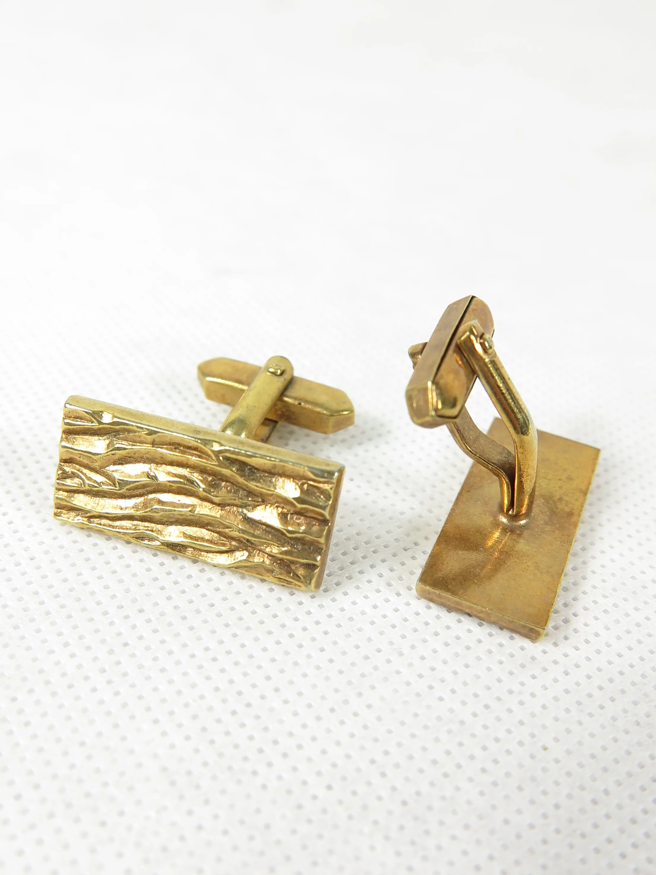 Schön gemusterte original 70er Jahre Manschettenknöpf in goldenem Metall