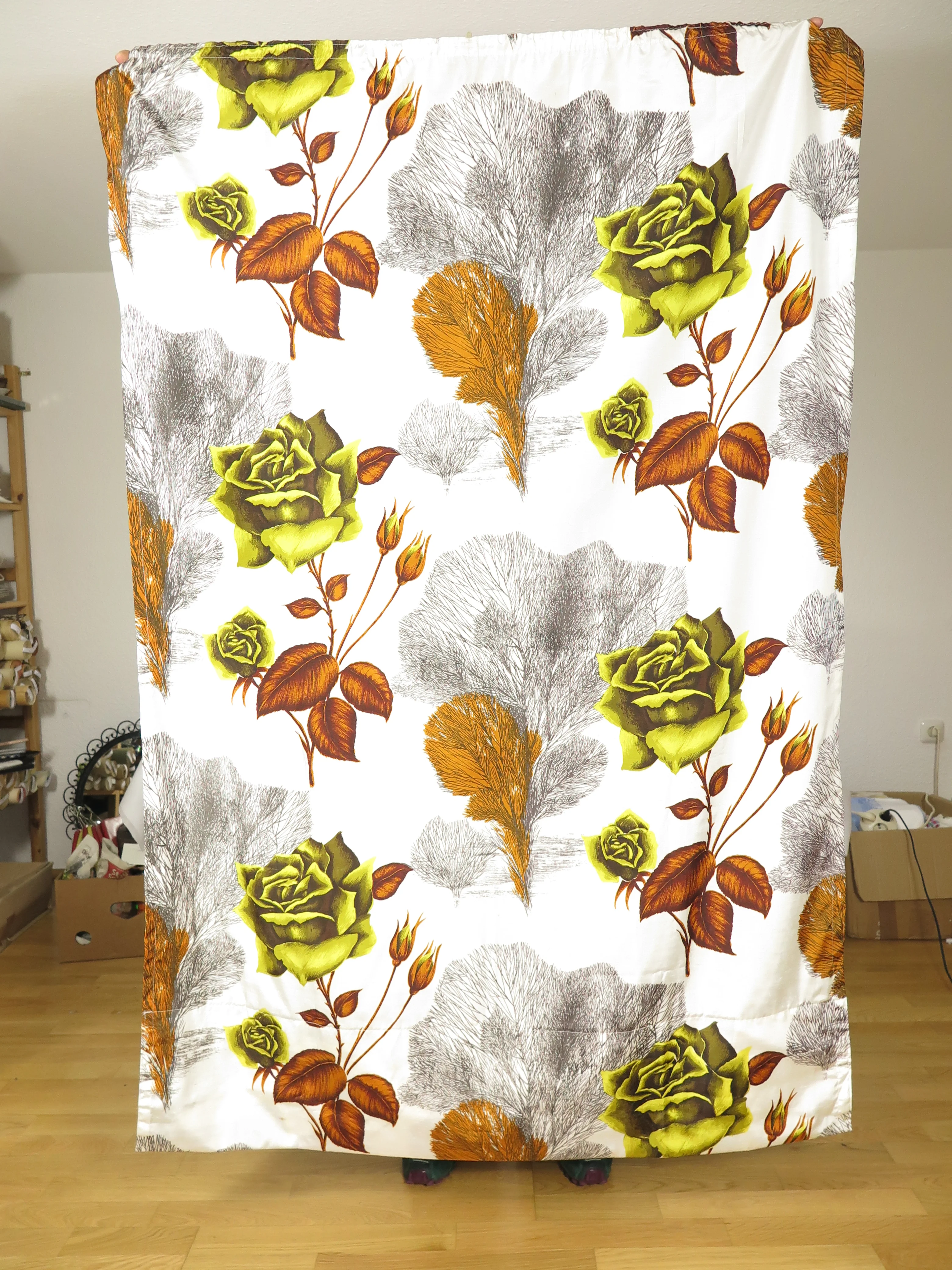 Tolle Vorhänge mit spektakulär großen gelben Rosen