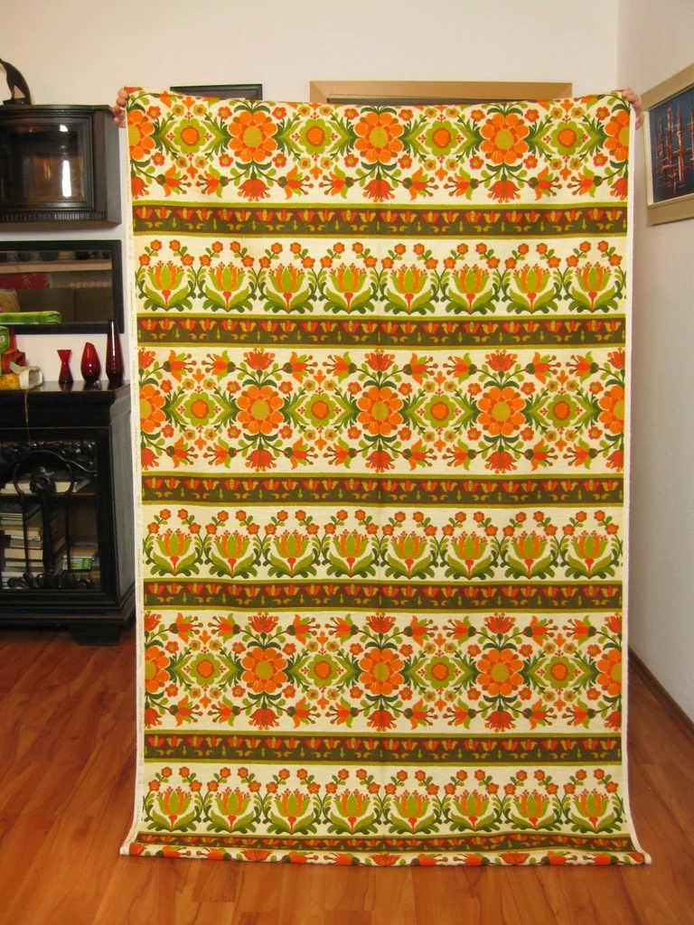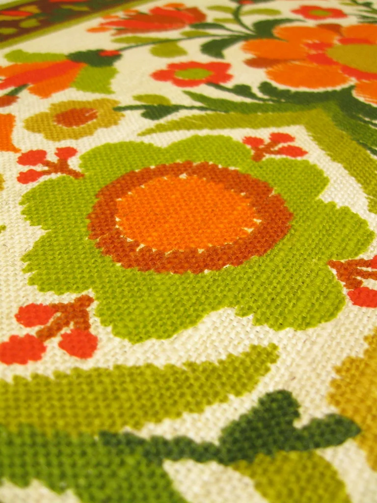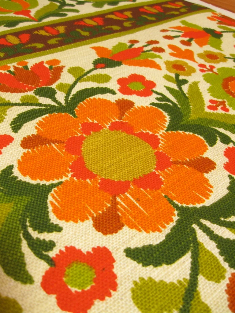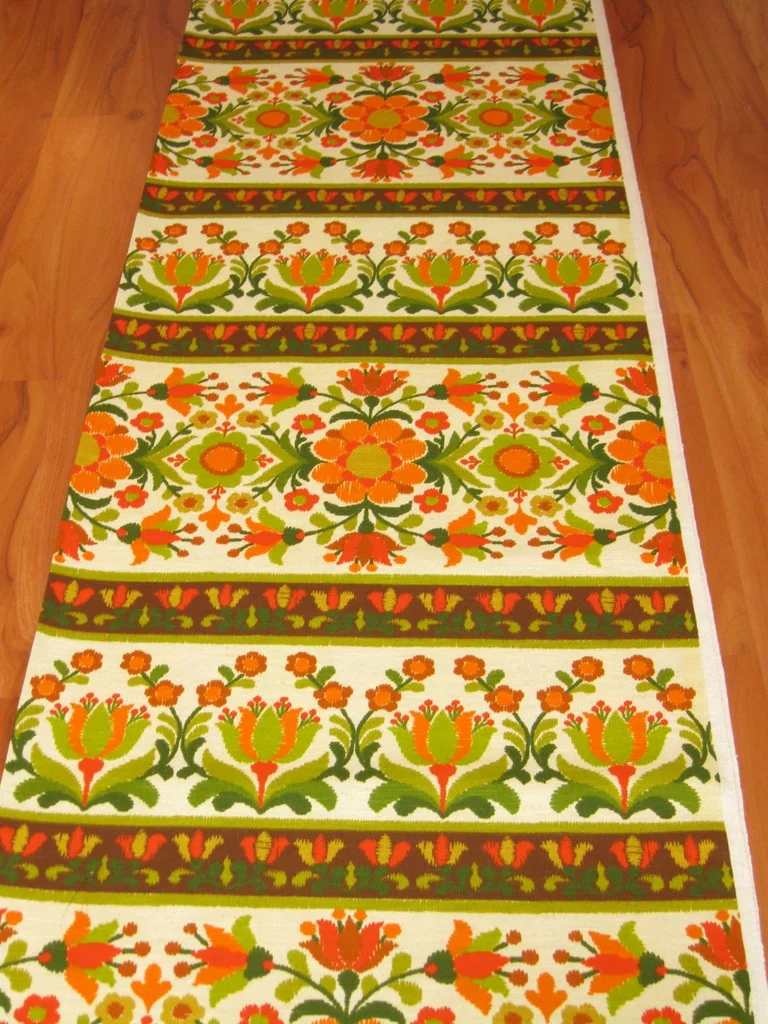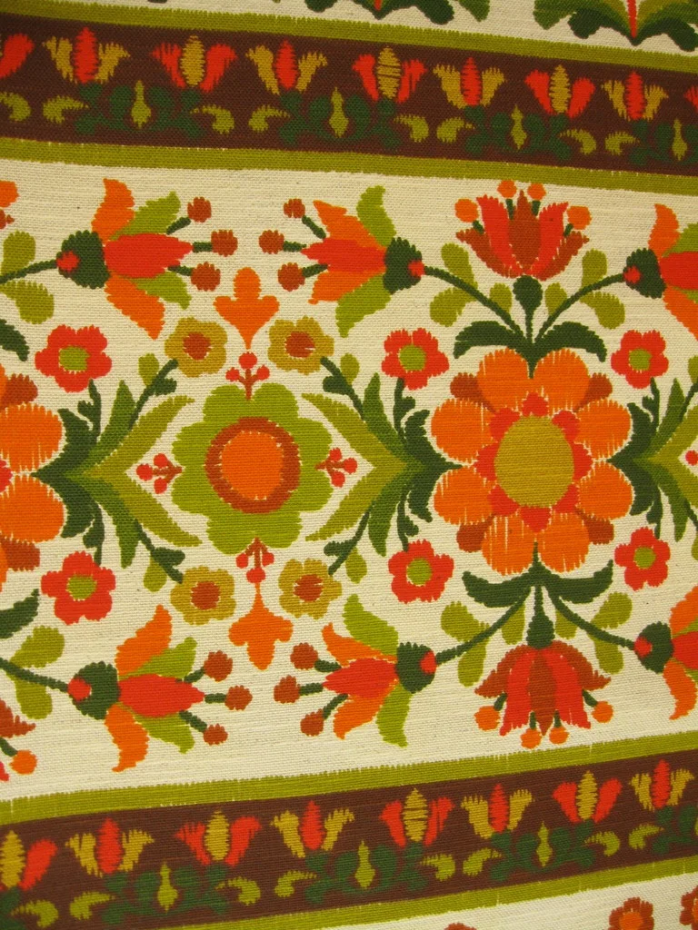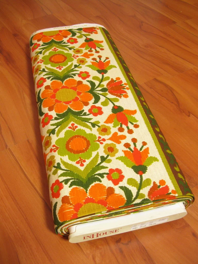 Farblich schön abgestimmter original 70er Jahre Stoff mit vielen Blumen.