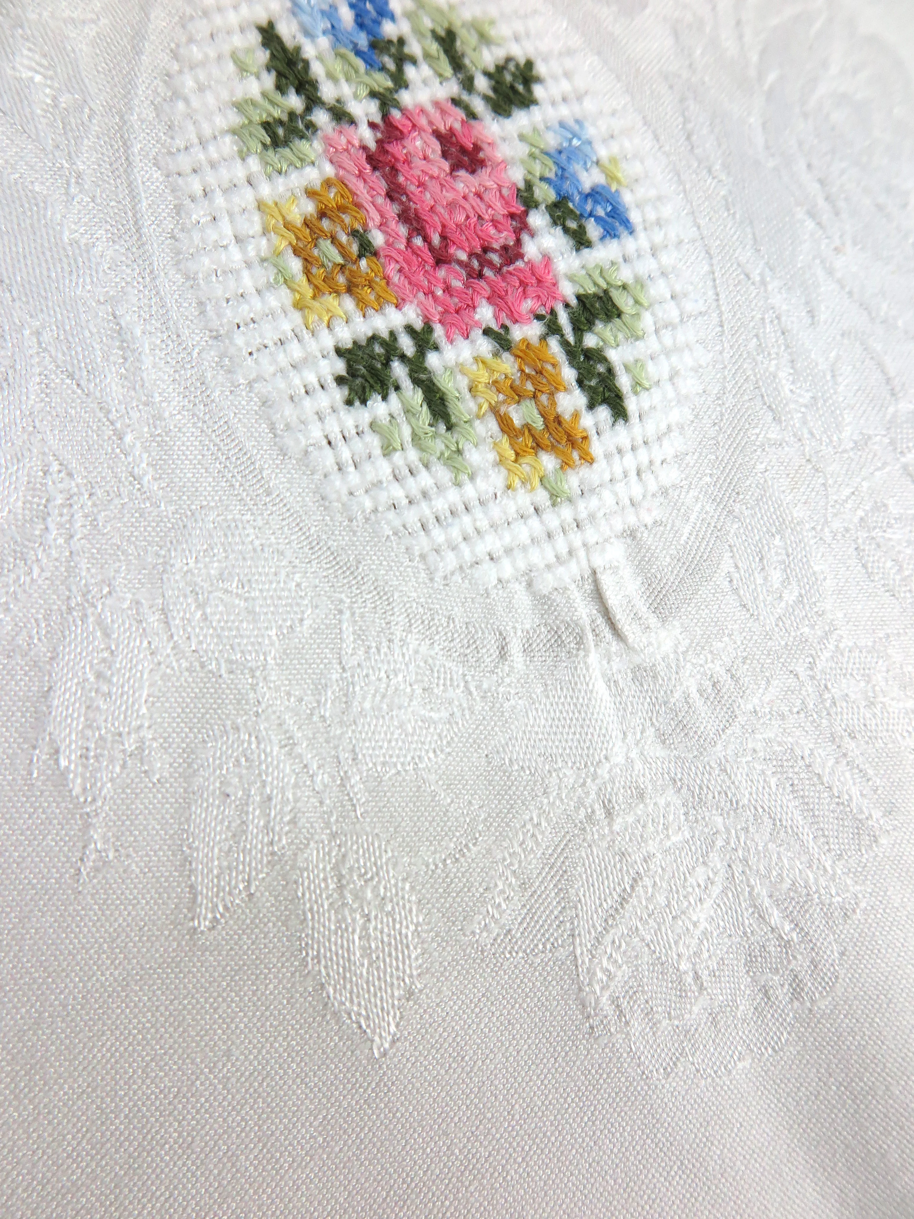 60er Tischdecke mit Keuzstich