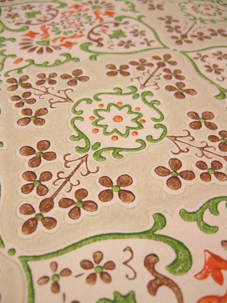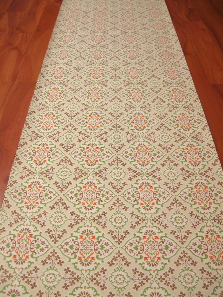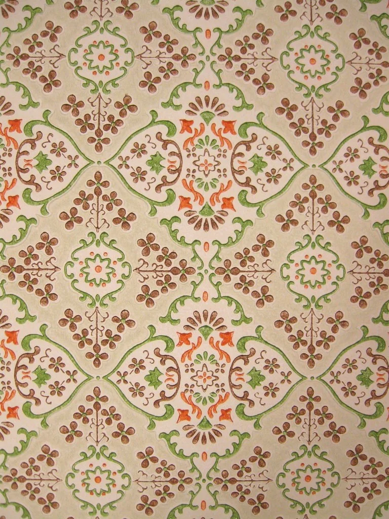 Schicke Papiertapete aus den 1960er Jahren Die Tapete hat eine glatte, unstrukturierte Oberfläche und eine sehr gute Qualität.