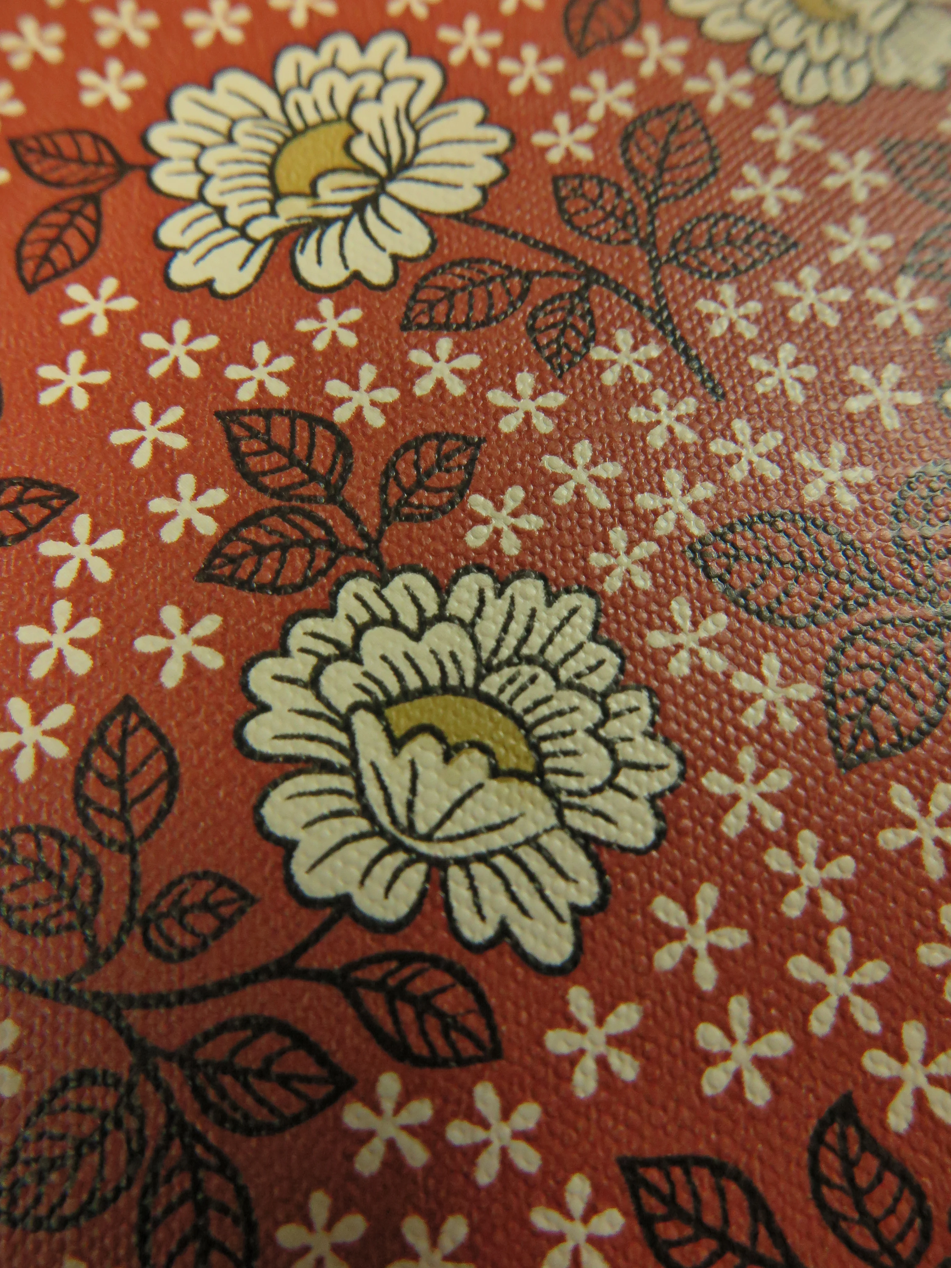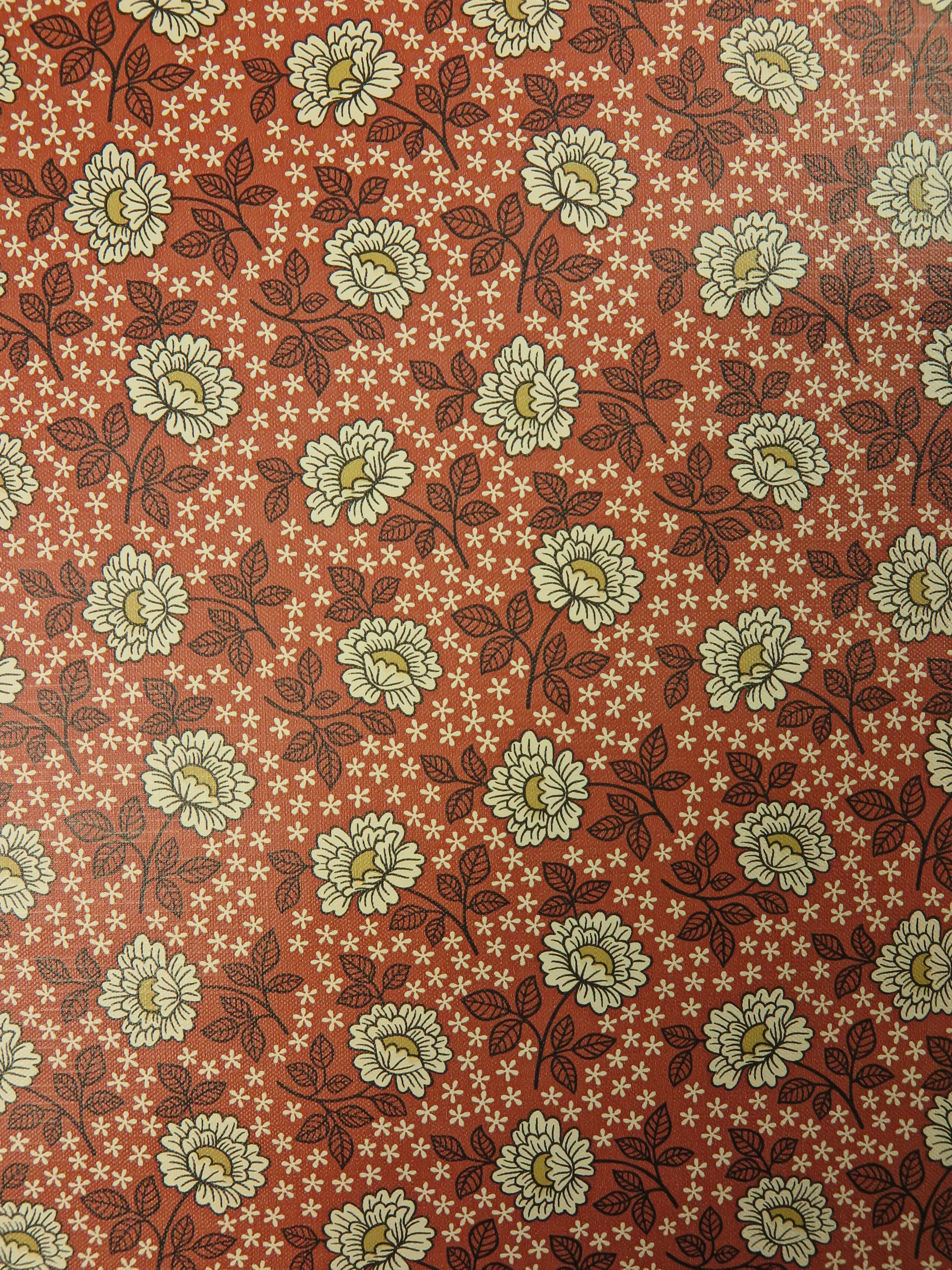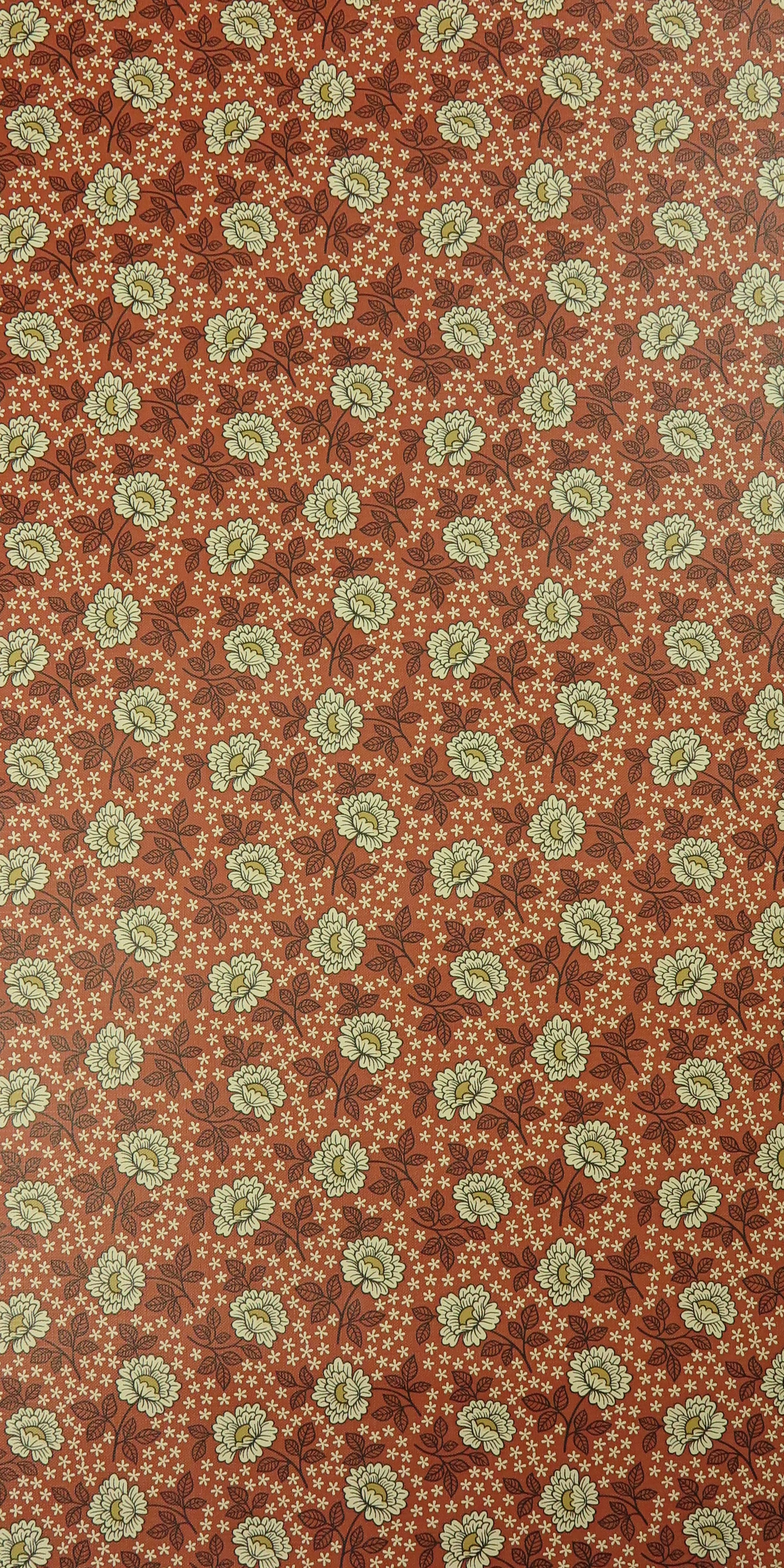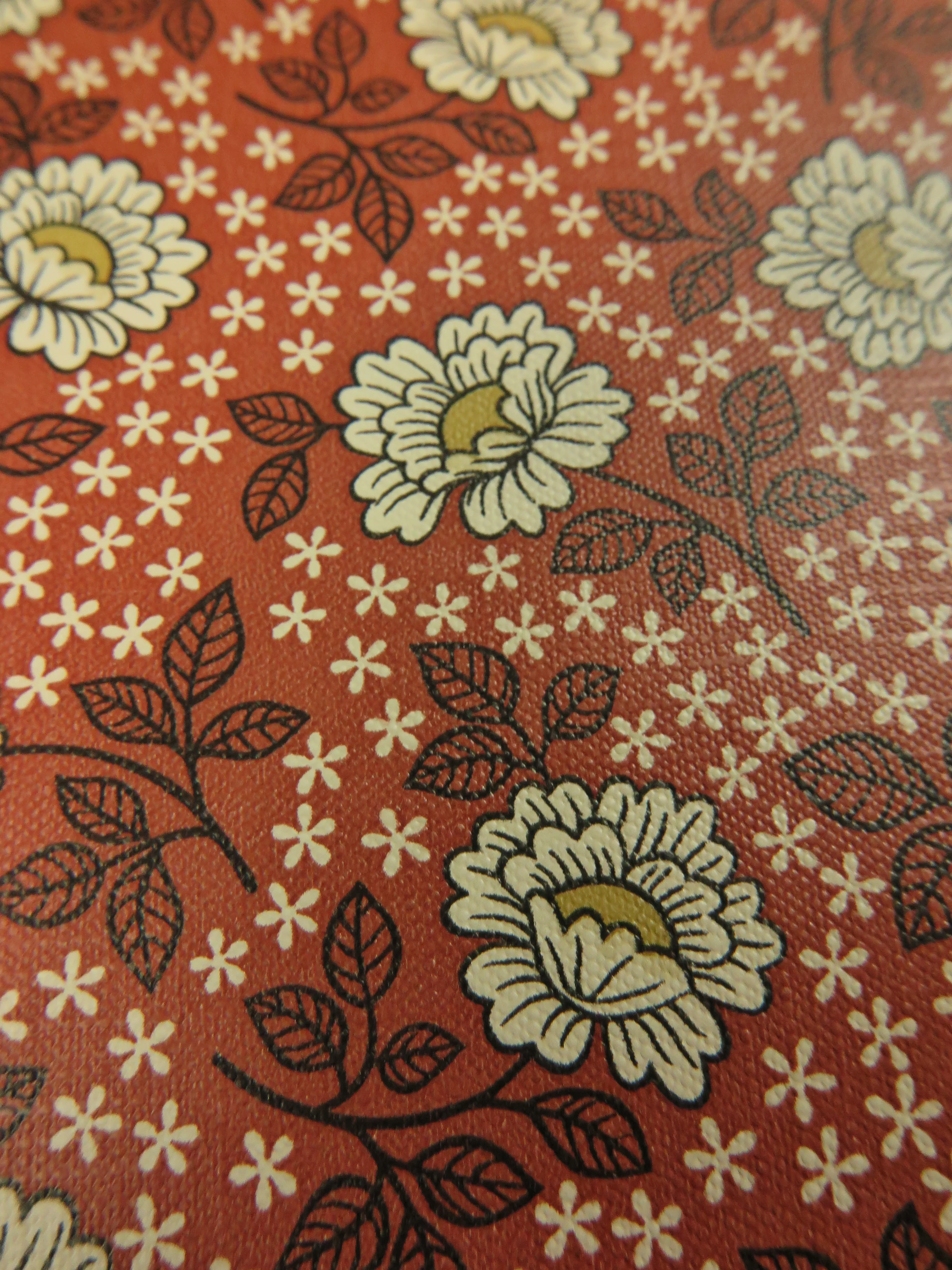 Süße original 70er Jahre Tapete in Rotbraun, Weiß und Gelb