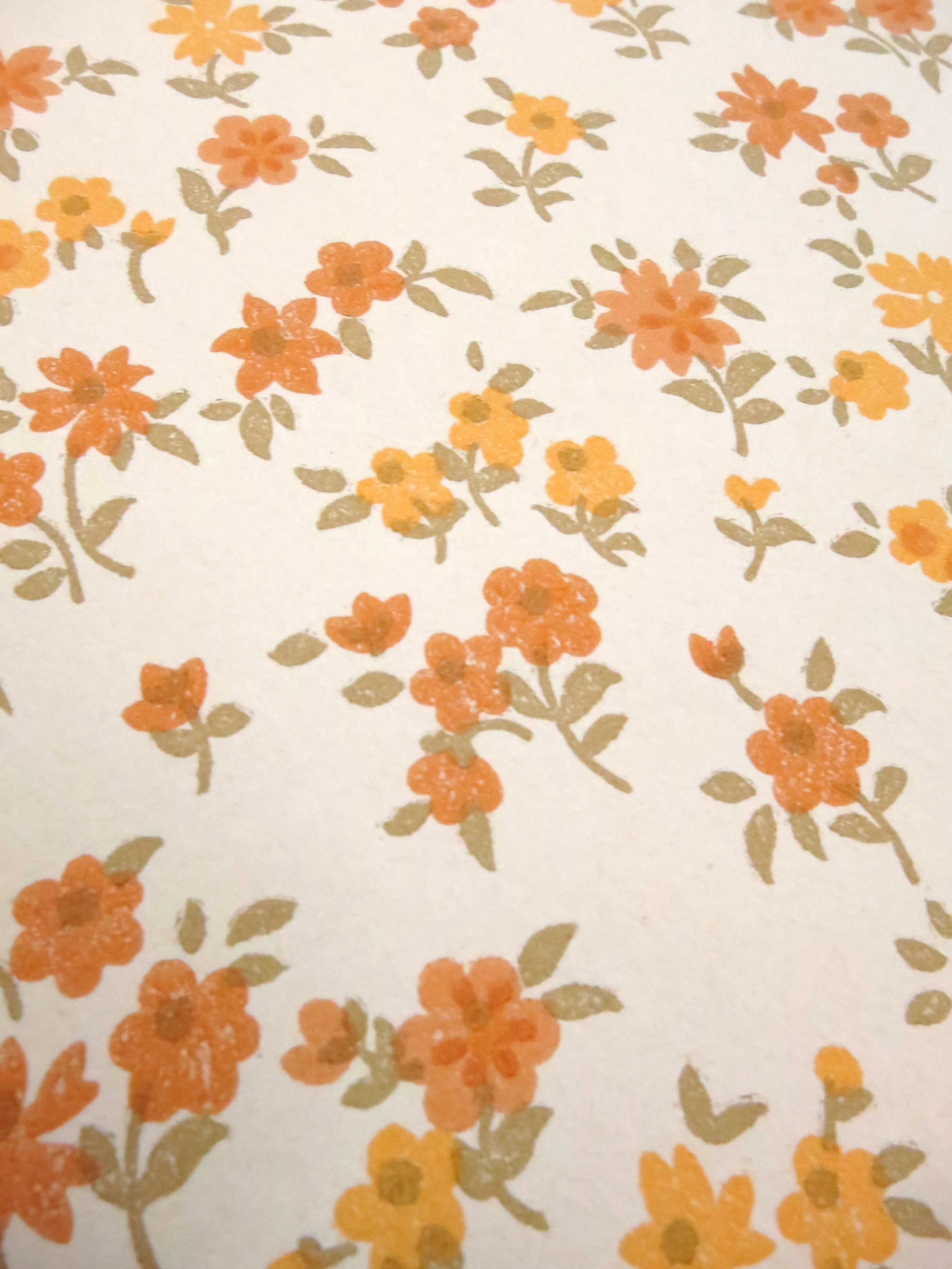 Hübsche blumige original 70er Jahre Tapete in Gelb, Beige und Olive