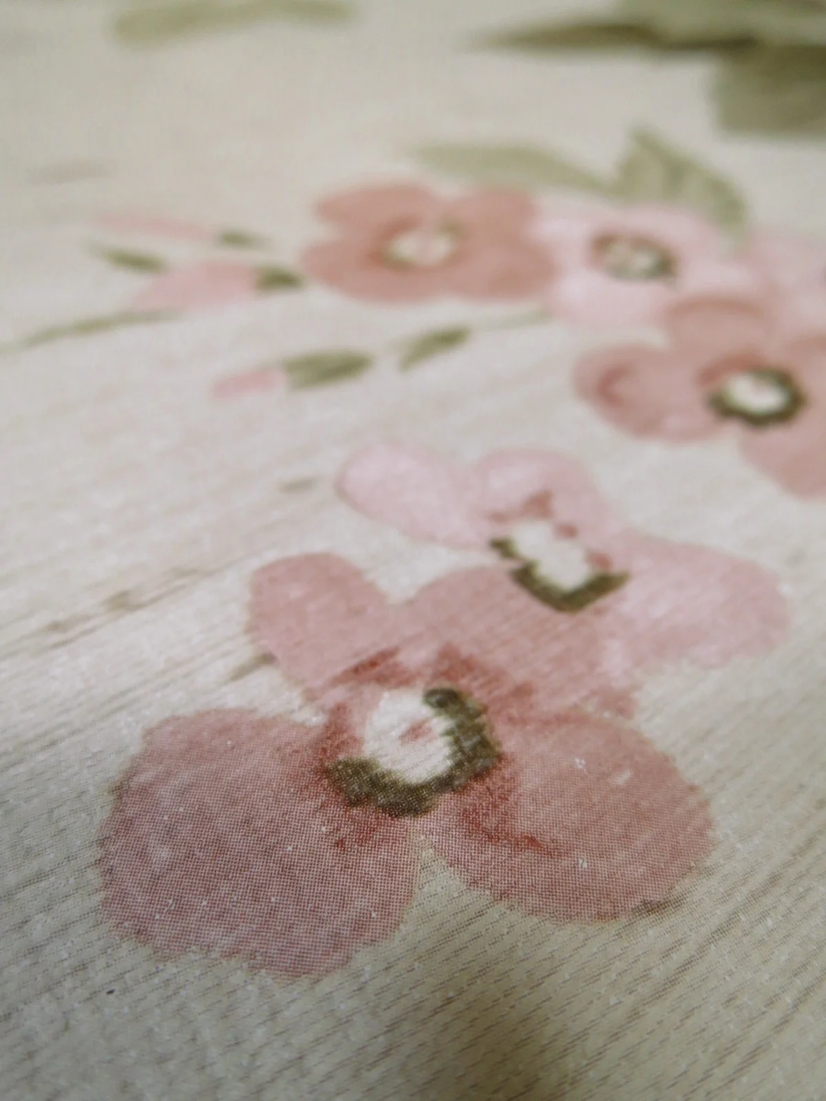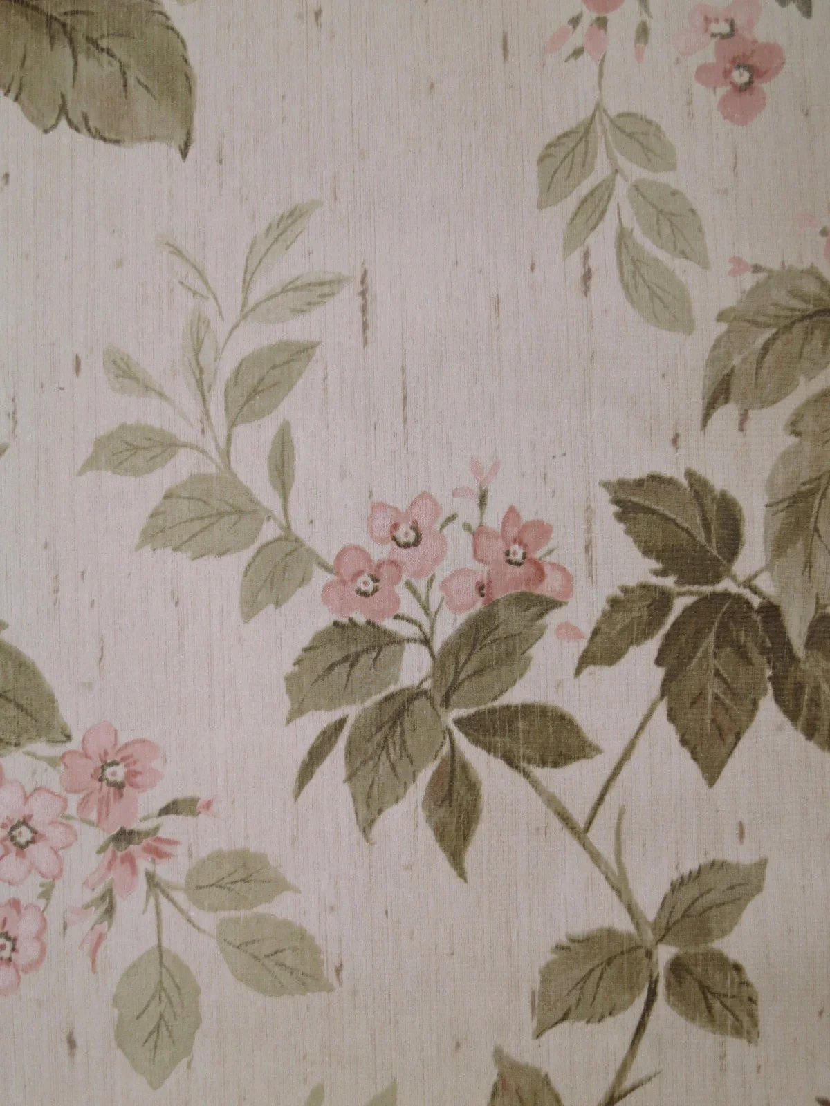Die Tapete wirkt durch ihren textil anmutenden Hintergrund und dem schönen Blumenmotiv.
