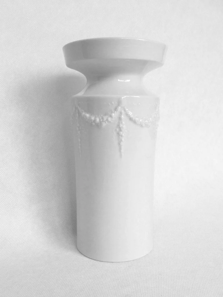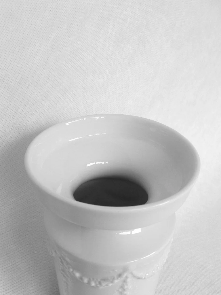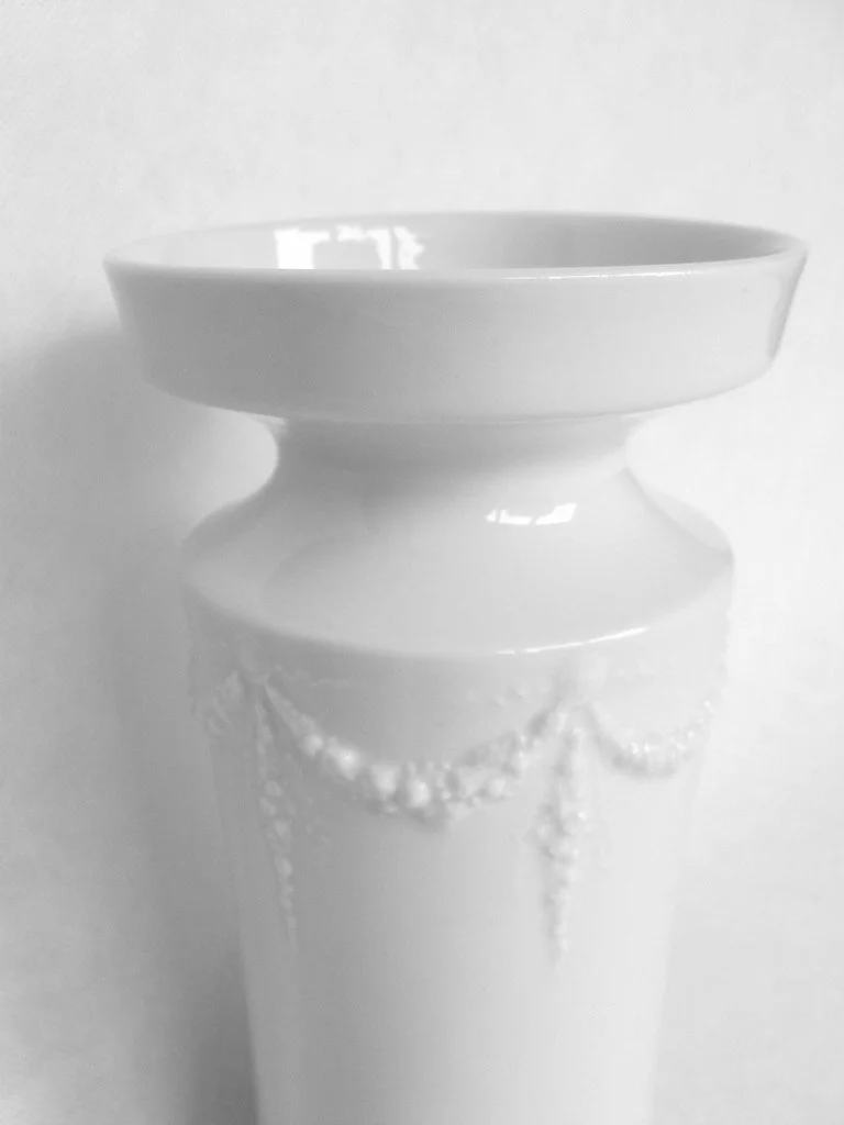 Die Vase ist aus Porzellan und erinnert in ihrem Design ein wenig an den Jugendstil.
