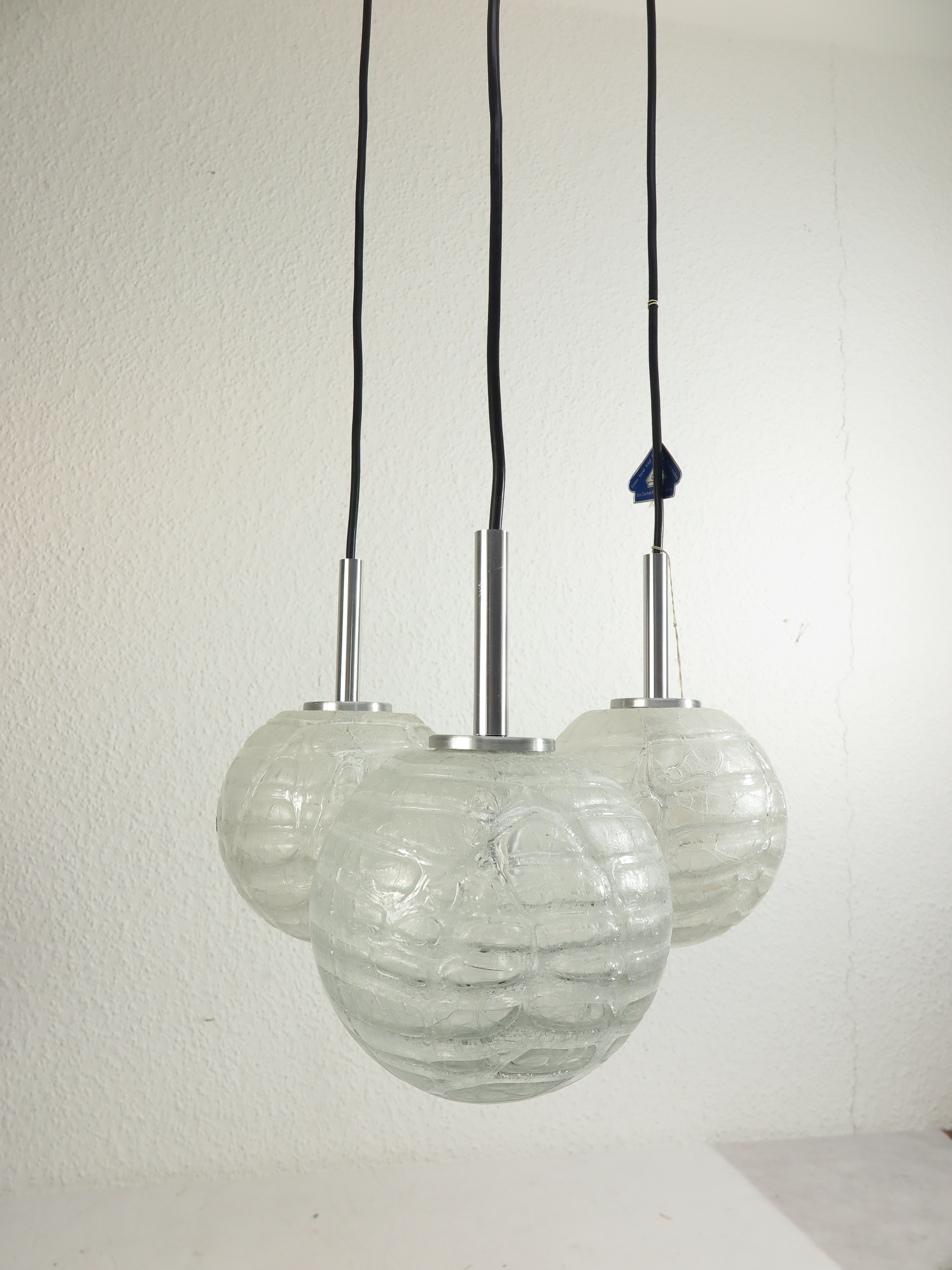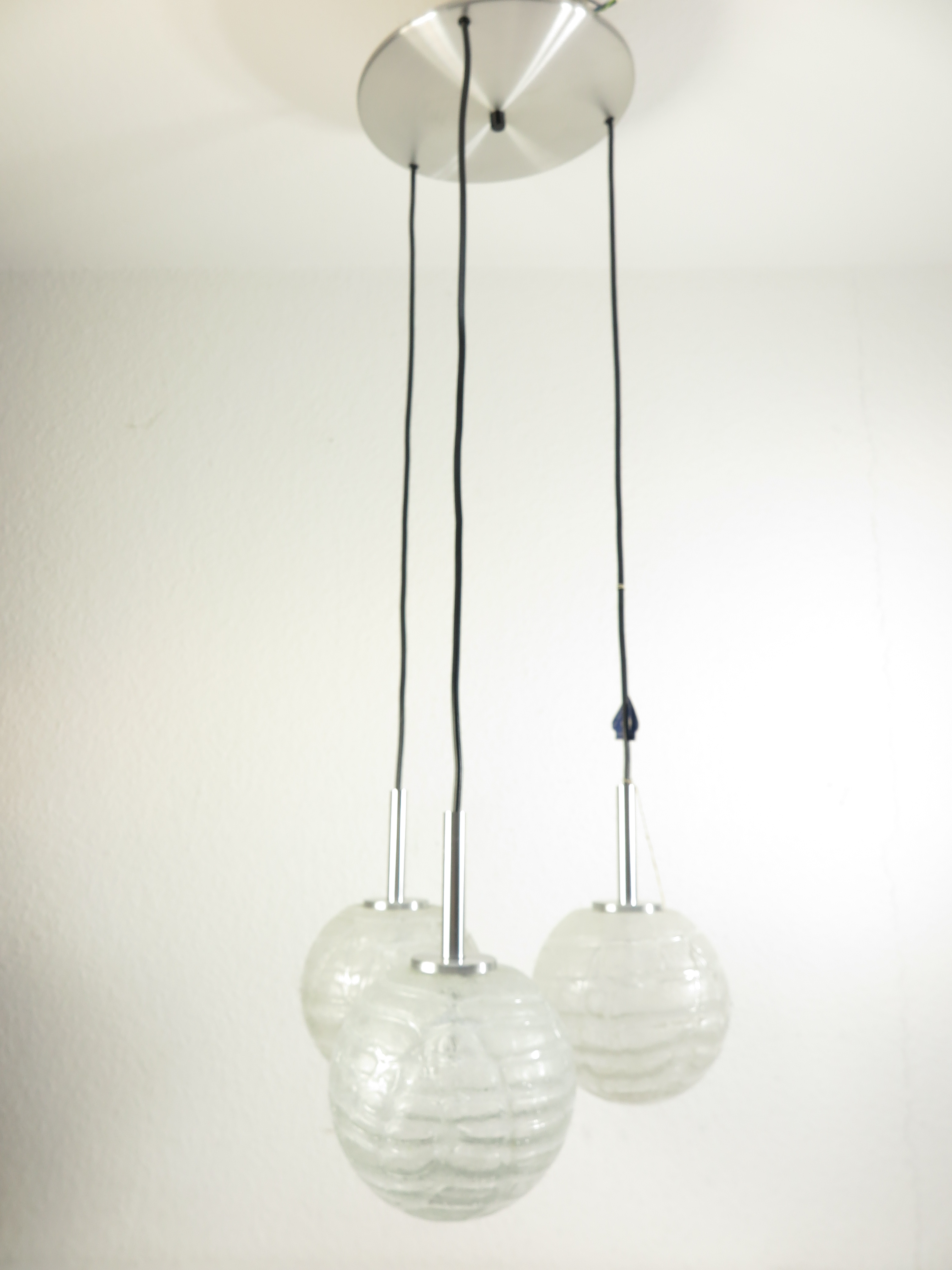 70er Kaskadenlampe, Deckenlampe mit 3 Glasschirmen