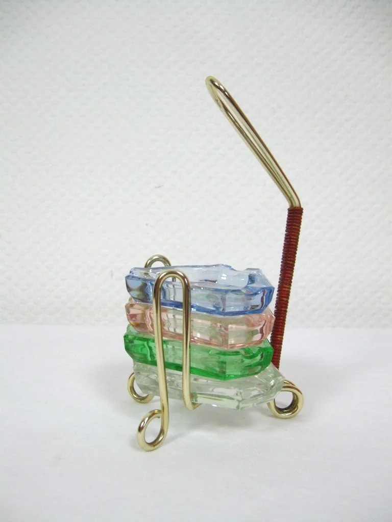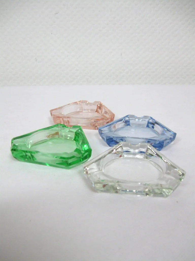 The ashtrays are made of colored glass and for their age in a very good condition. The set consists of 4 ashtrays and one Brass frame.