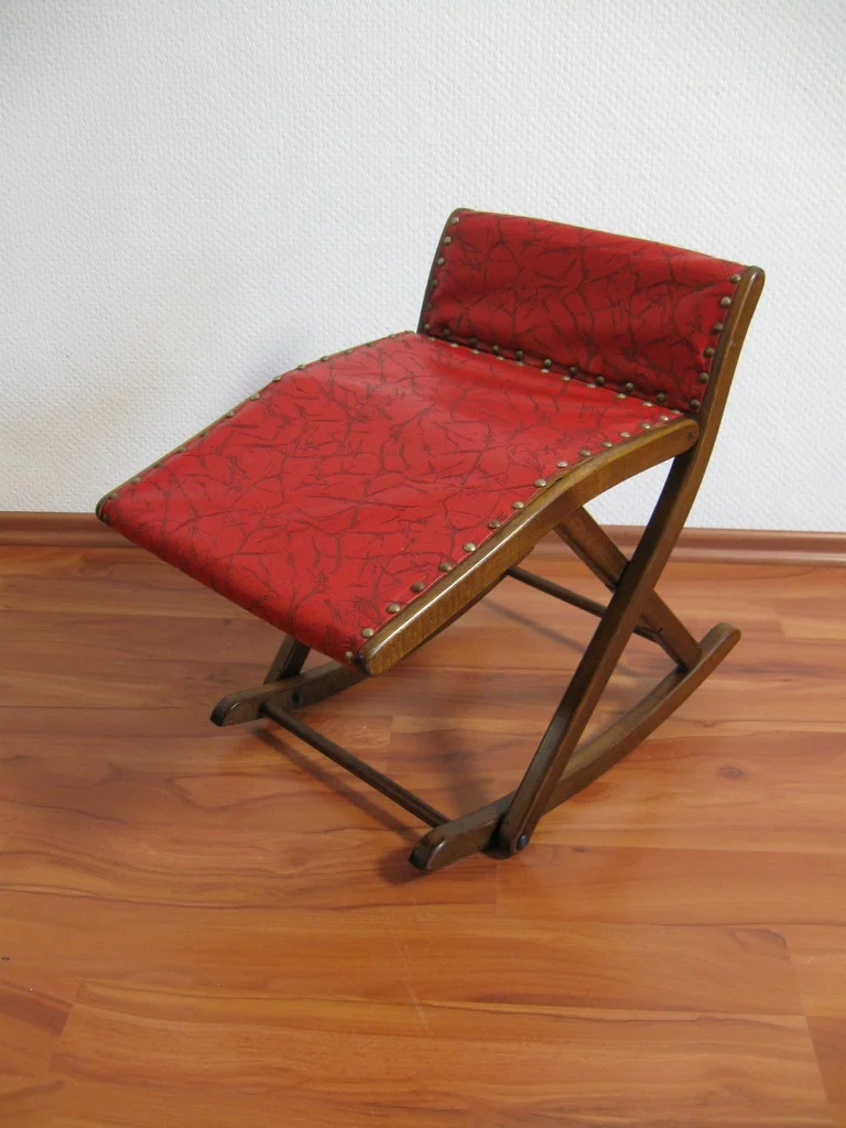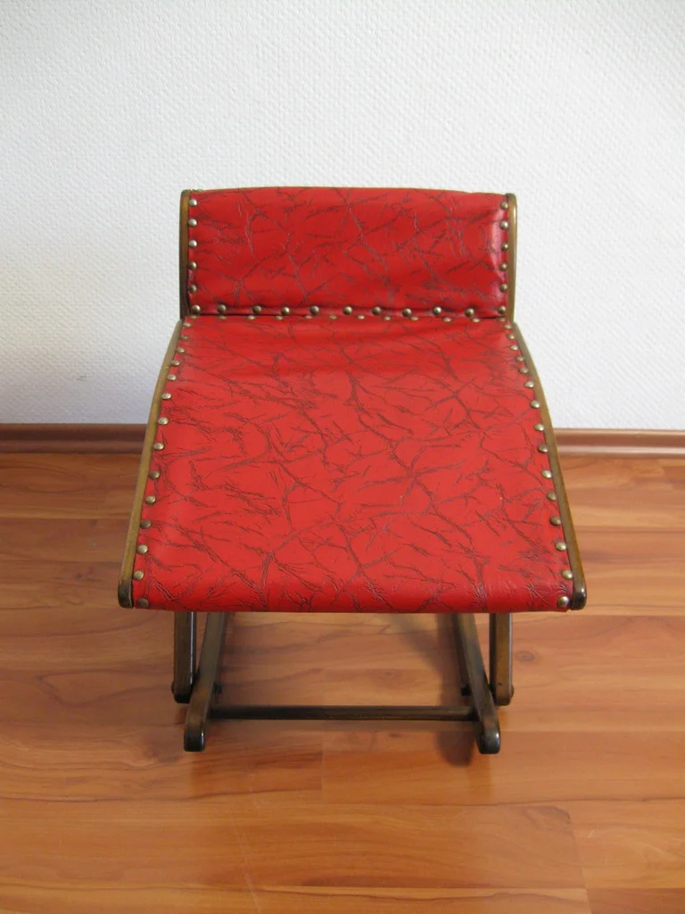 The stool is made of wood and covered with imitation leather. The height can be adjusted in three stages.