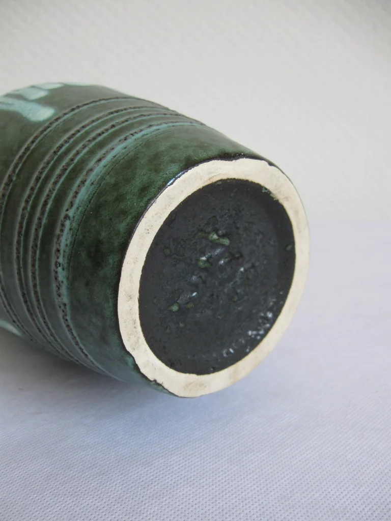 The vase is made of glazed ceramics and very well preserved for its age.