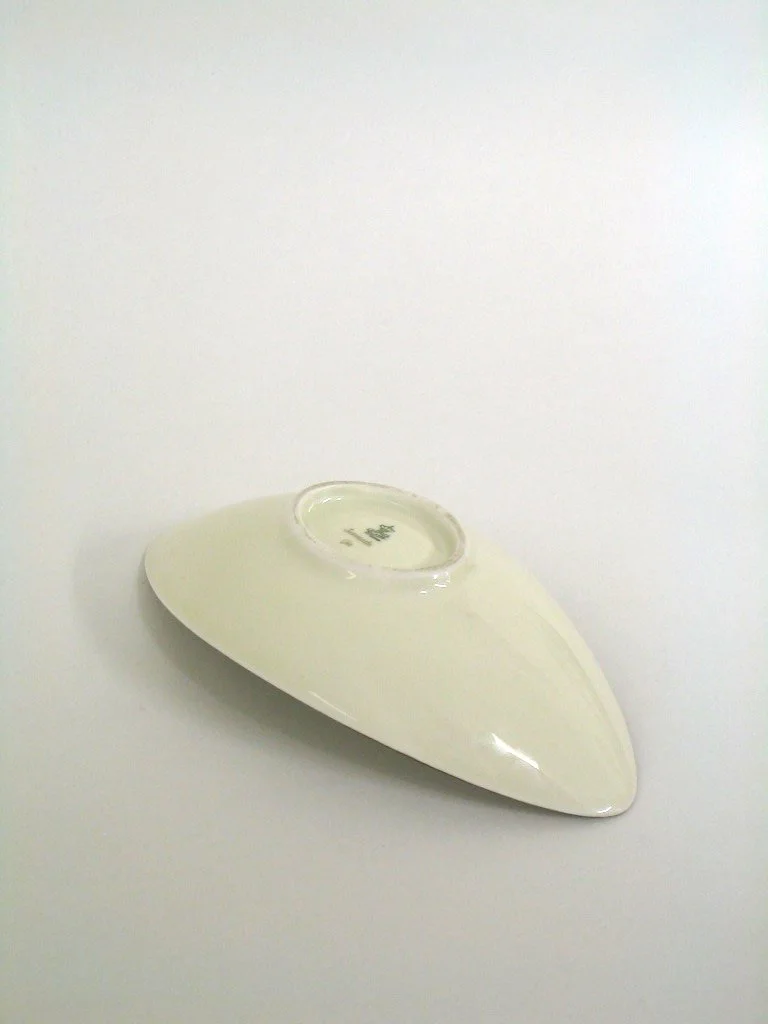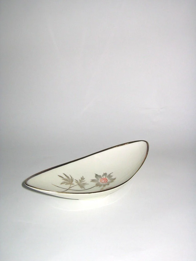 This 60's bowl with fine gold drawing fits beautifully into the era "kidney table".