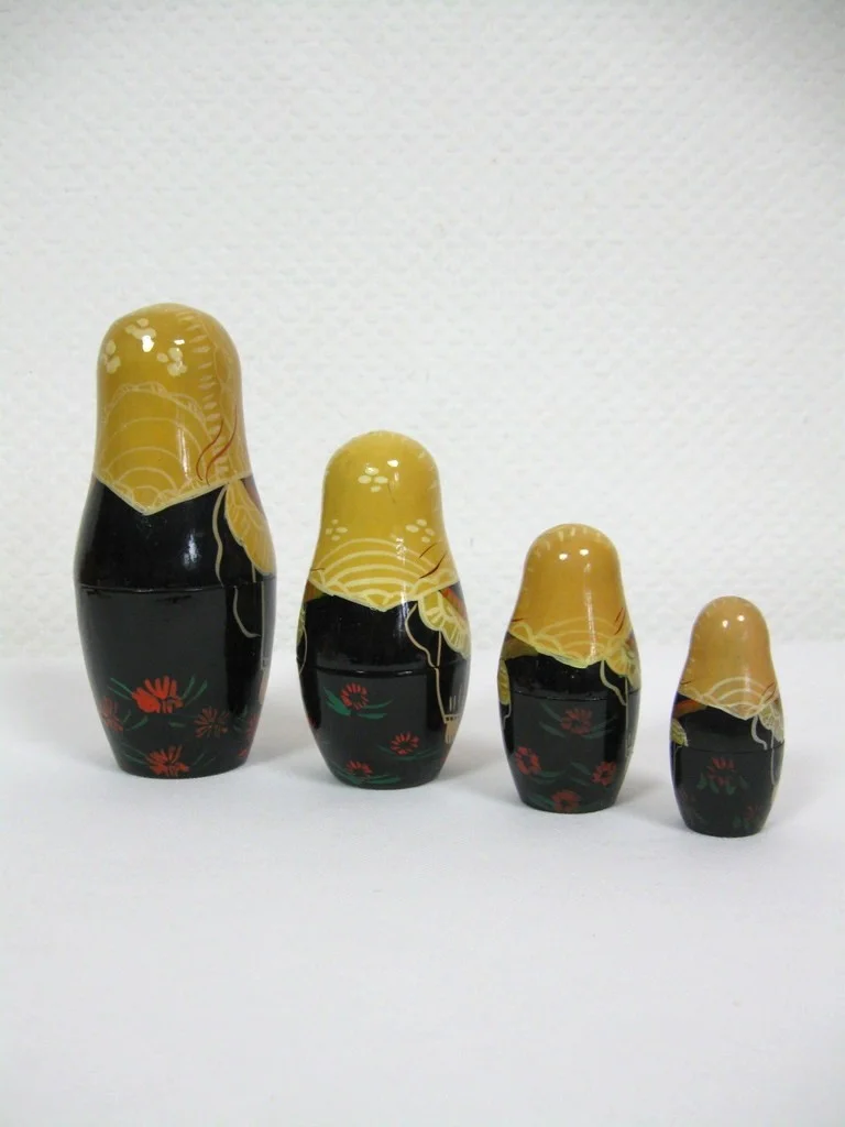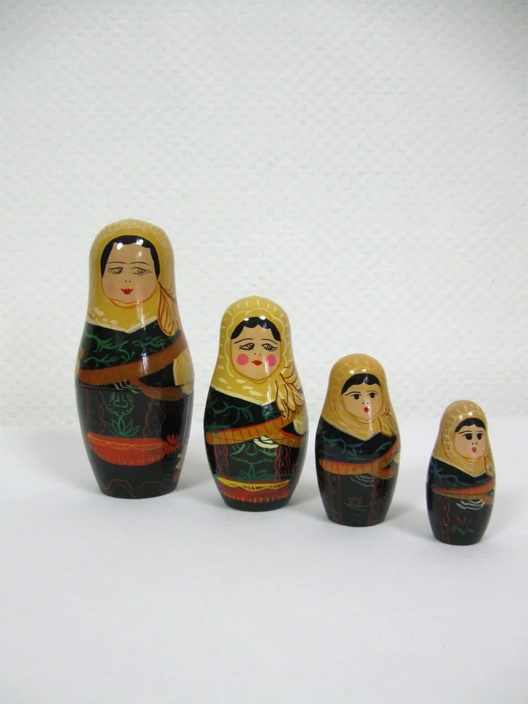 The nestable dolls are made of wood and beautifully painted. The set consists of four dolls.