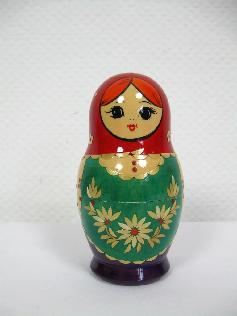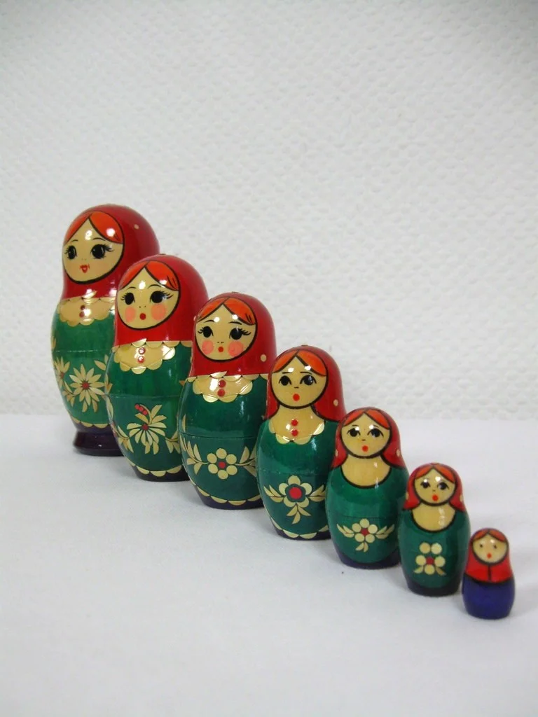 The nestable dolls are made of wood and beautifully painted. The set consists of seven dolls.