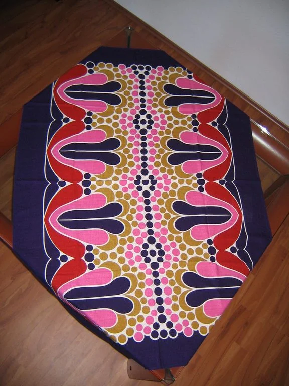 Diese original 70er Tischdecke ist in bester Qualität und wirkt wie neu. Der Stoff ist in feiner Leinenbindung gewebt.