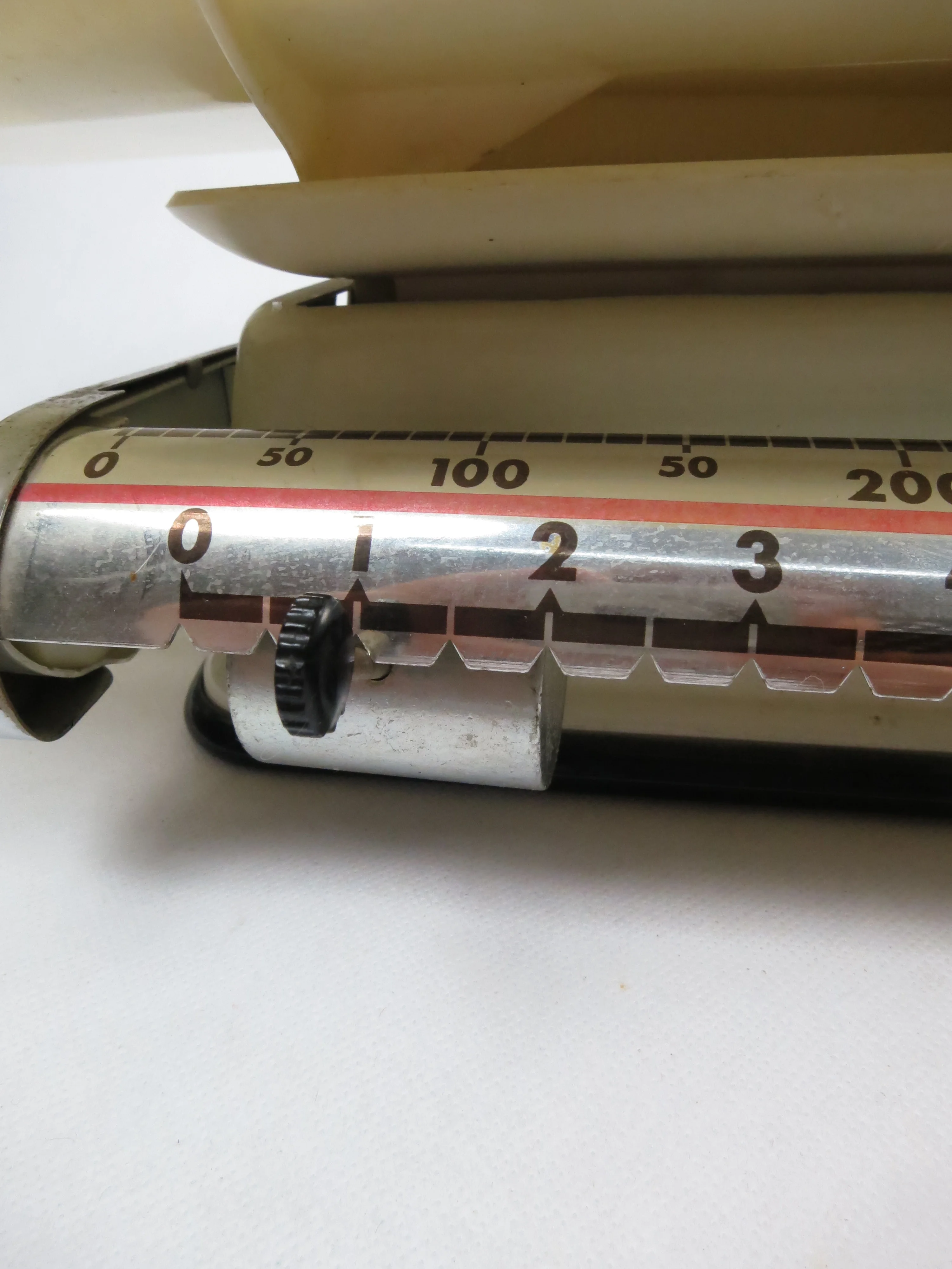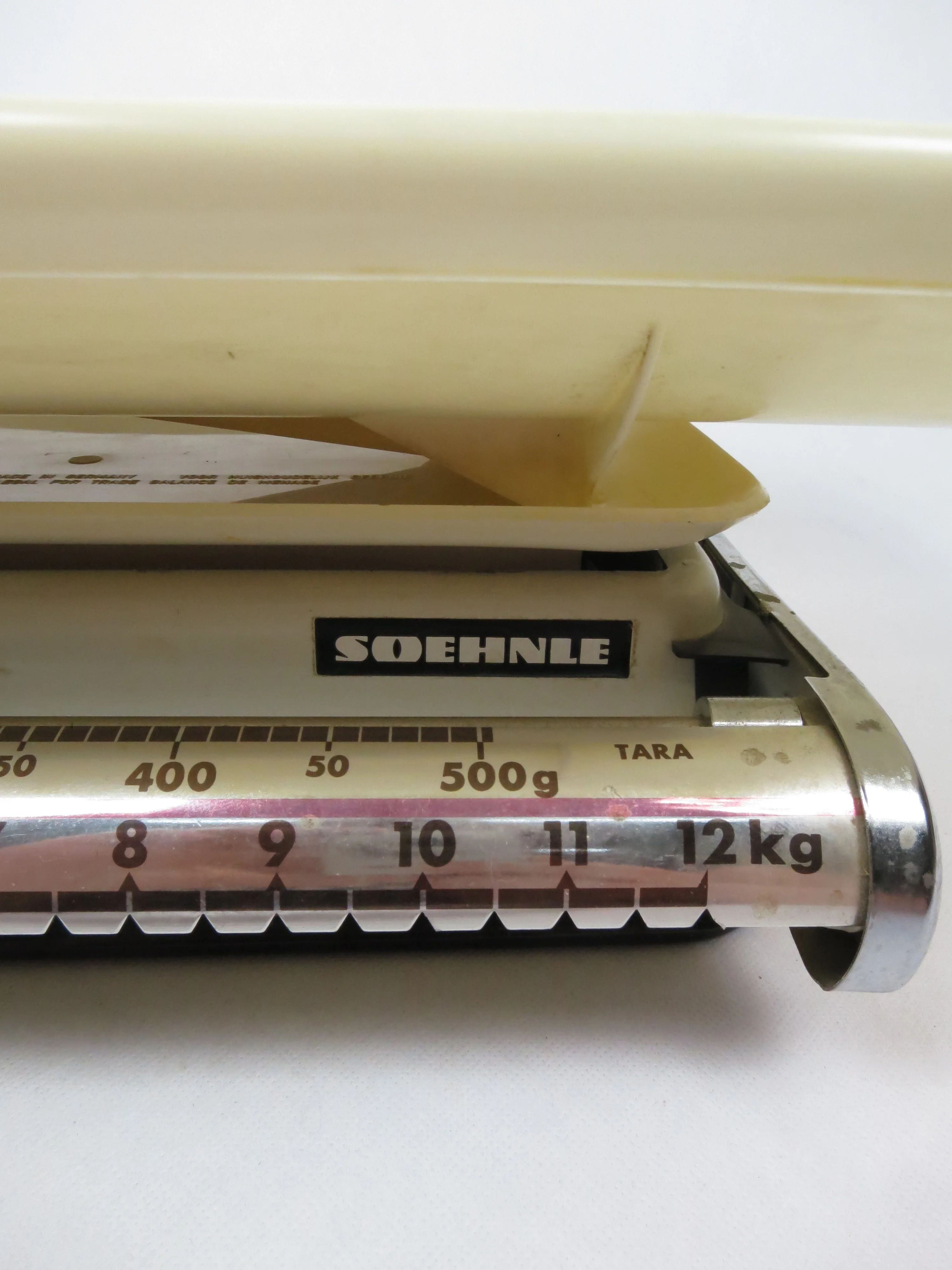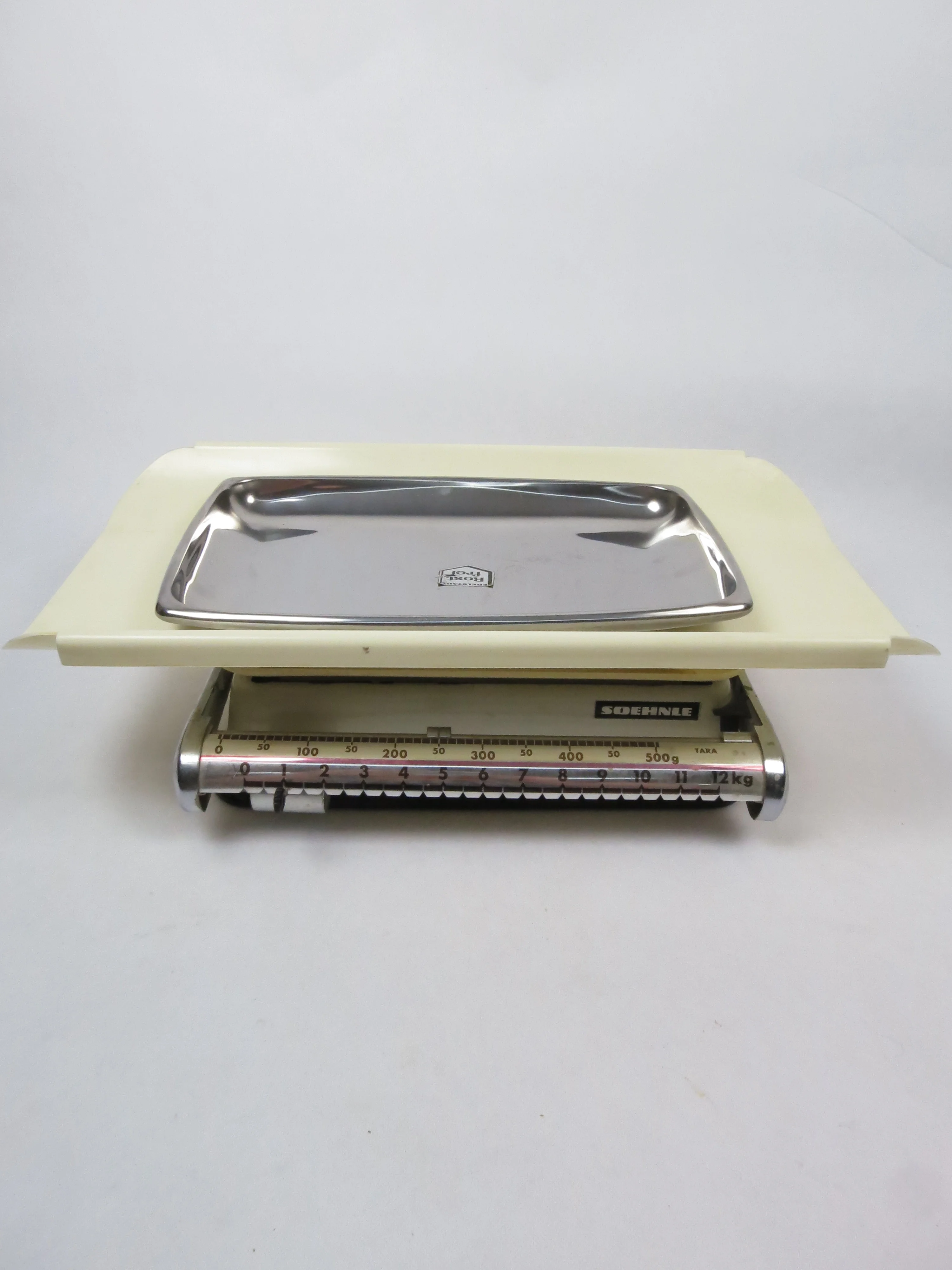 The scale is made of white painted metal with chromed elements. It can be scaled to the nearest 10 grams.