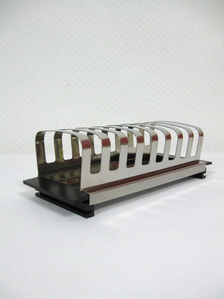 The bread holder is made of stainless steel and plastic and offers space for 8 slices