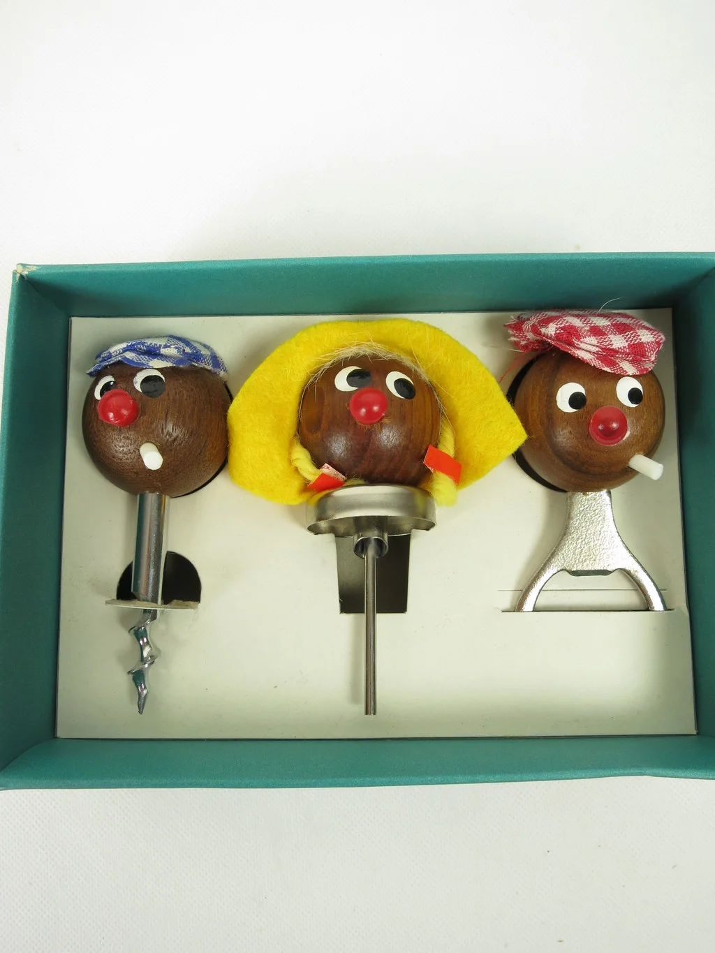 The set consists of a corkscrew, a bottle opener and a spout for schnapps bottles.